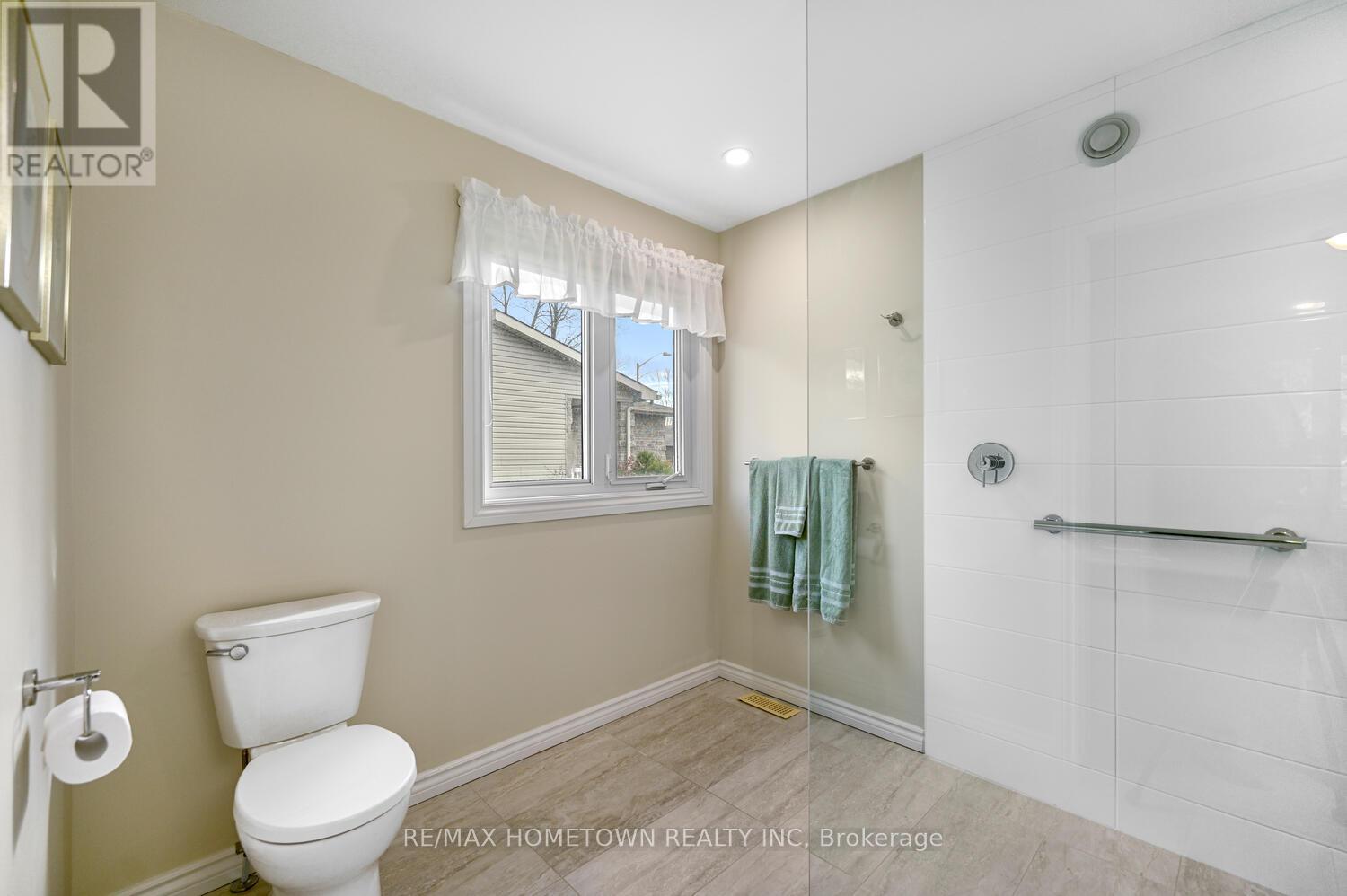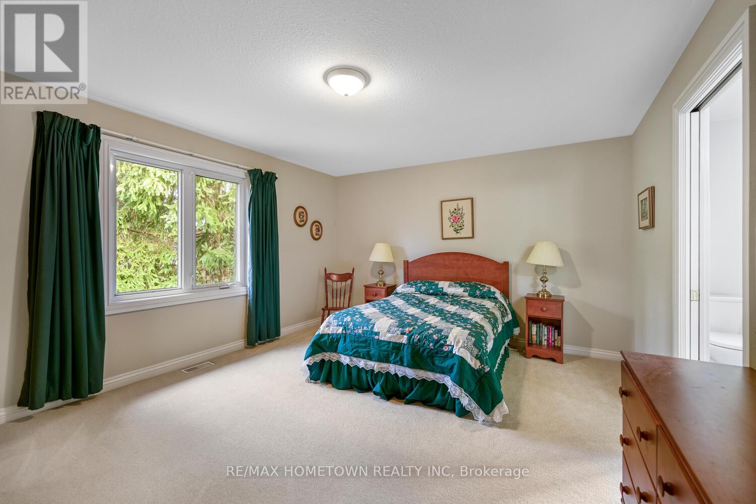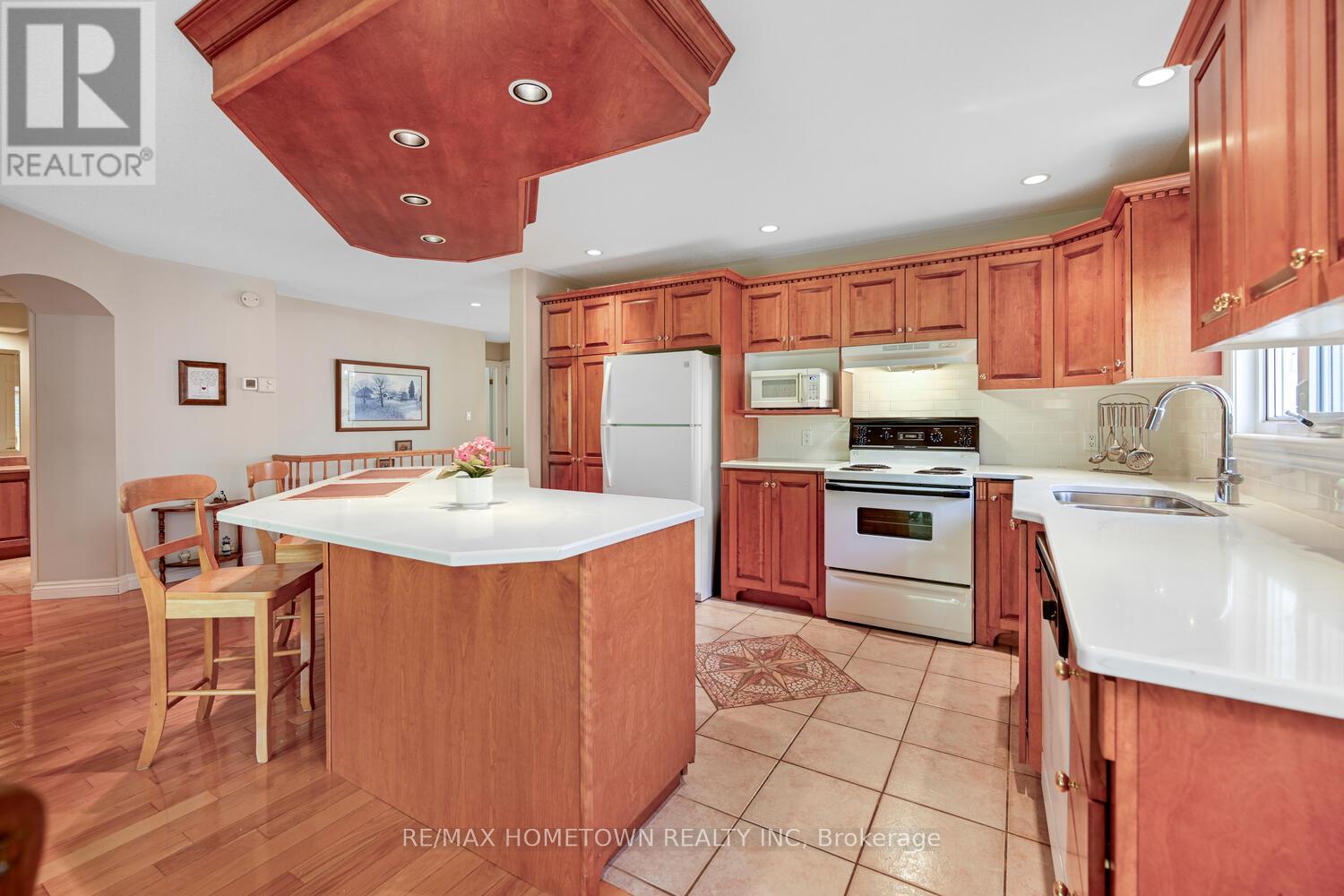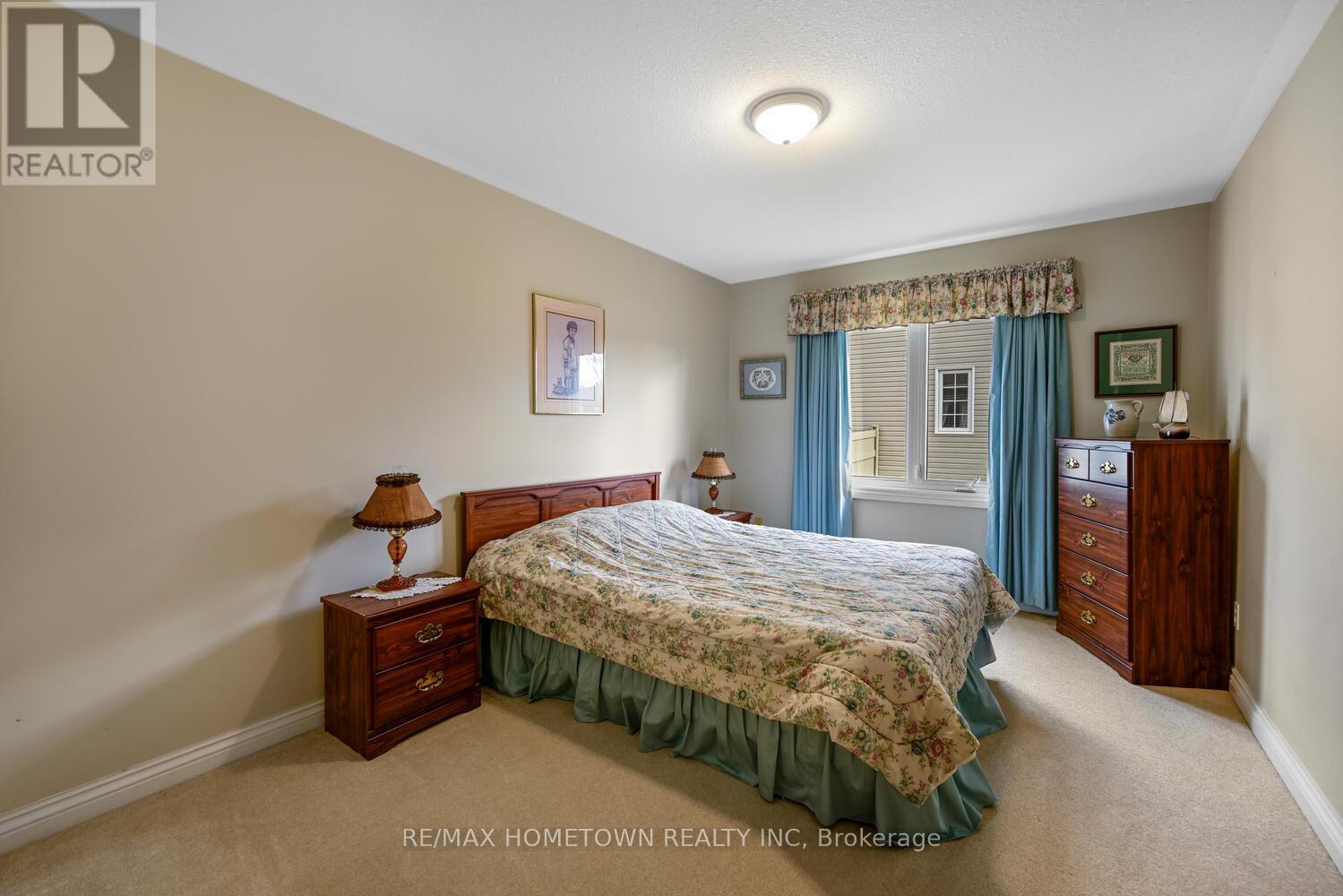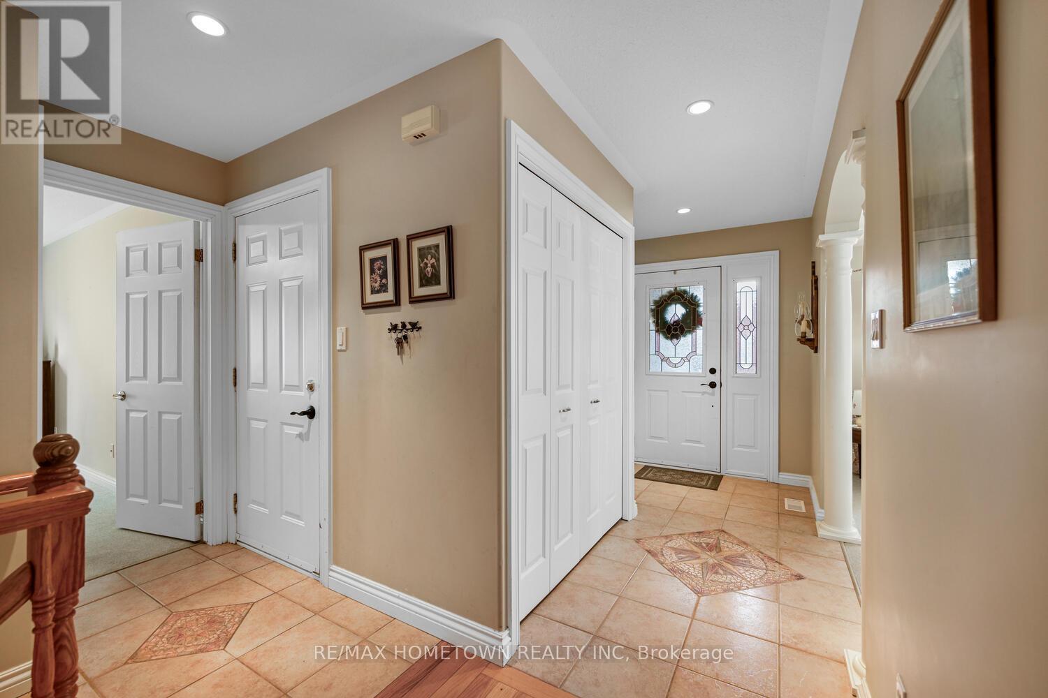 A rare and remarkable offering in the prestigious Bridlewood Subdivision, a community cherished since the early 1990s for its exceptional construction and enduring beauty under the stewardship of a family owned business, Bridlewood Homes Inc. This first-time-to-market bungalow showcases a thoughtfully modified Bridlewood floor plan and reflects a standard of care that feels almost untouched-truly a testament to pride of ownership. From the curb, the home sets an elegant tone with its full interlocking driveway, double garage, coordinated brick exterior, and interlocking walkway leading to the entrance. Inside, the generous foyer-with its double closet-opens gracefully into a pillared living and dining room crowned by a cathedral ceiling. An oversized casement window washes this space in natural light, creating an airy, inviting atmosphere that feels both classic and timeless. The beautifully updated kitchen offers abundant cabinetry and an eating island, opening seamlessly into a large family room anchored by a gas fireplace with oak mantle. A stunning triple patio door spans the rear wall, framing a truly extraordinary backyard-an expansive, private retreat lined with tall spruce trees that create the essence of country living within city limits. The primary suite offers a walk-in closet and a fully renovated, easily accessible ensuite. A second bedroom and a bright four-piece bath serve guests and family with equal comfort. The open, rail-detailed staircase leads to a bright 1,600 sq. ft. lower level, fully drywalled with electrical to code, oversized windows, and a three-piece rough-in-an exceptional canvas for future living space. With a newer roof, newer furnace, immaculate upkeep, and immediate availability, this home offers an elevated lifestyle suited to families, professionals, and retirees seeking refined living in Brockville's five-star, red-ribbon Bridlewood community. (id:64974)