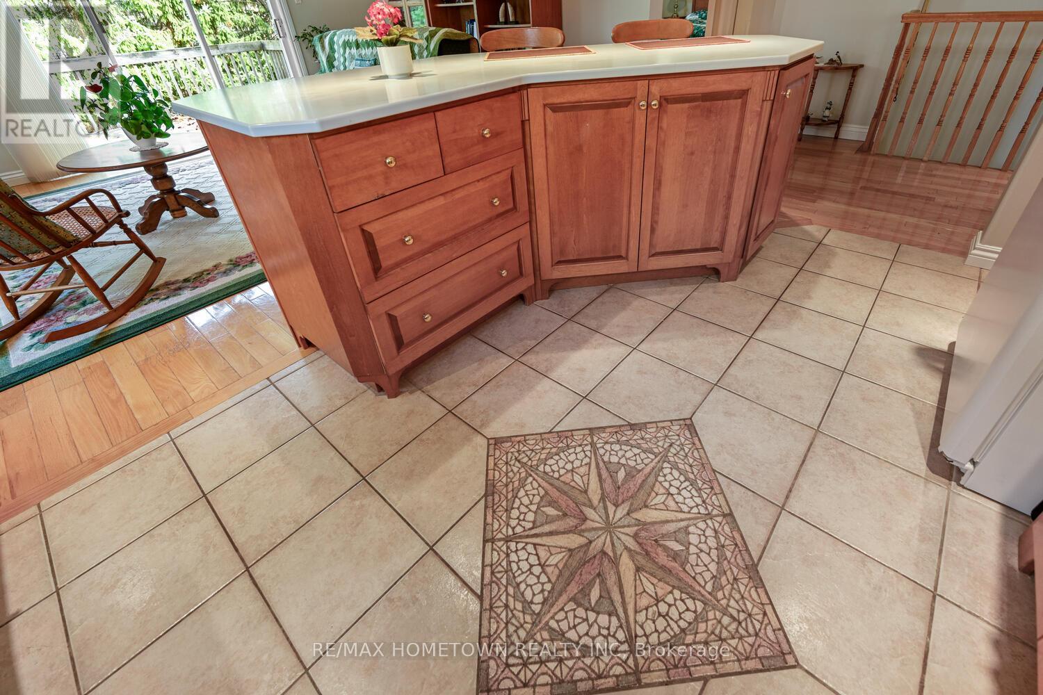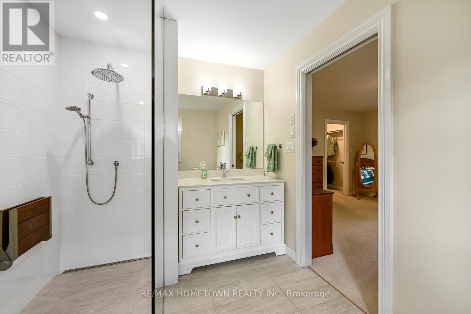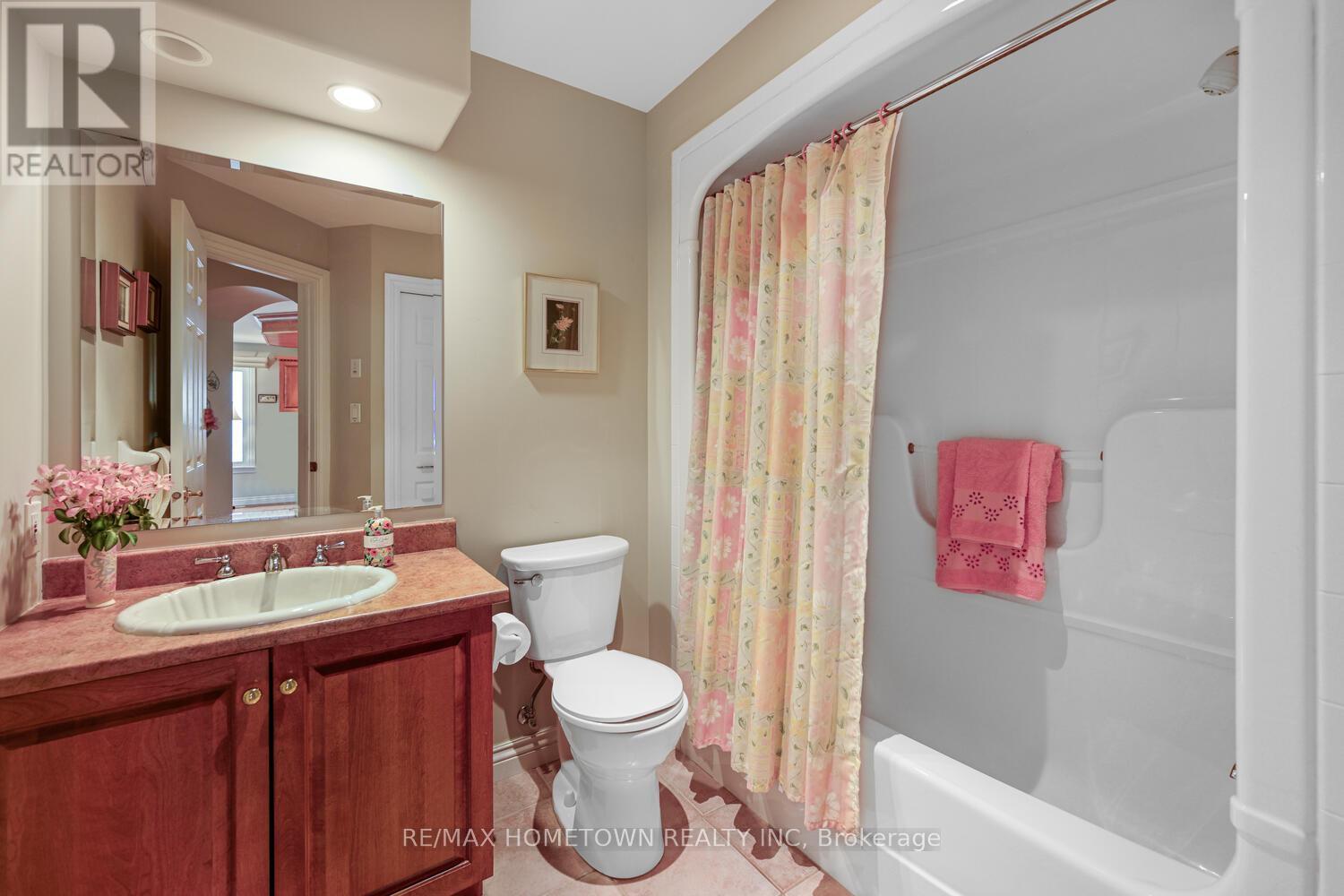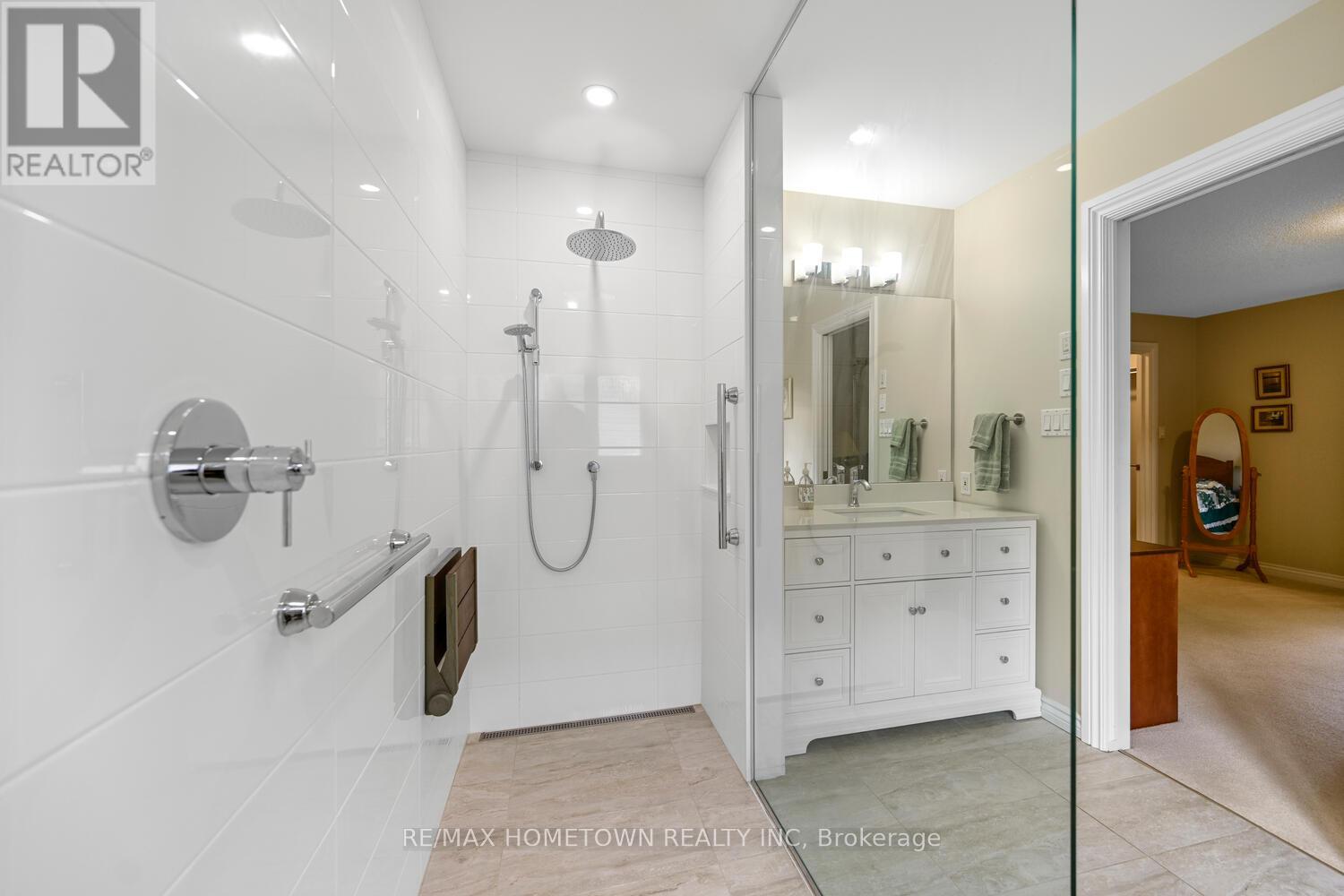 A rare and remarkable offering in the prestigious Bridlewood Subdivision, a community cherished since the early 1990s for its exceptional construction and enduring beauty under the stewardship of a family owned business, Bridlewood Homes Inc. This first-time-to-market bungalow showcases a thoughtfully modified Bridlewood floor plan and reflects a standard of care that feels almost untouched-truly a testament to pride of ownership. From the curb, the home sets an elegant tone with its full interlocking driveway, double garage, coordinated brick exterior, and interlocking walkway leading to the entrance. Inside, the generous foyer-with its double closet-opens gracefully into a pillared living and dining room crowned by a cathedral ceiling. An oversized casement window washes this space in natural light, creating an airy, inviting atmosphere that feels both classic and timeless. The beautifully updated kitchen offers abundant cabinetry and an eating island, opening seamlessly into a large family room anchored by a gas fireplace with oak mantle. A stunning triple patio door spans the rear wall, framing a truly extraordinary backyard-an expansive, private retreat lined with tall spruce trees that create the essence of country living within city limits. The primary suite offers a walk-in closet and a fully renovated, easily accessible ensuite. A second bedroom and a bright four-piece bath serve guests and family with equal comfort. The open, rail-detailed staircase leads to a bright 1,600 sq. ft. lower level, fully drywalled with electrical to code, oversized windows, and a three-piece rough-in-an exceptional canvas for future living space. With a newer roof, newer furnace, immaculate upkeep, and immediate availability, this home offers an elevated lifestyle suited to families, professionals, and retirees seeking refined living in Brockville's five-star, red-ribbon Bridlewood community. (id:64974)