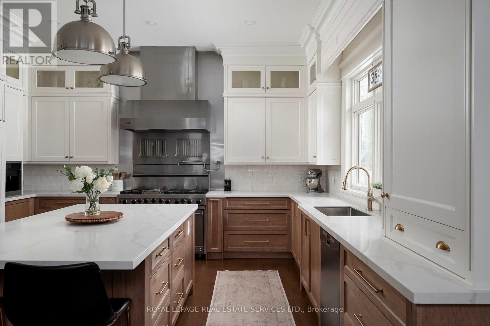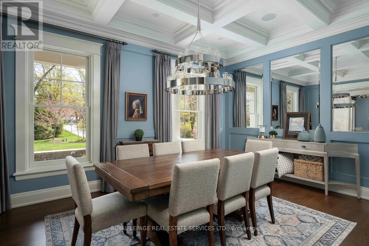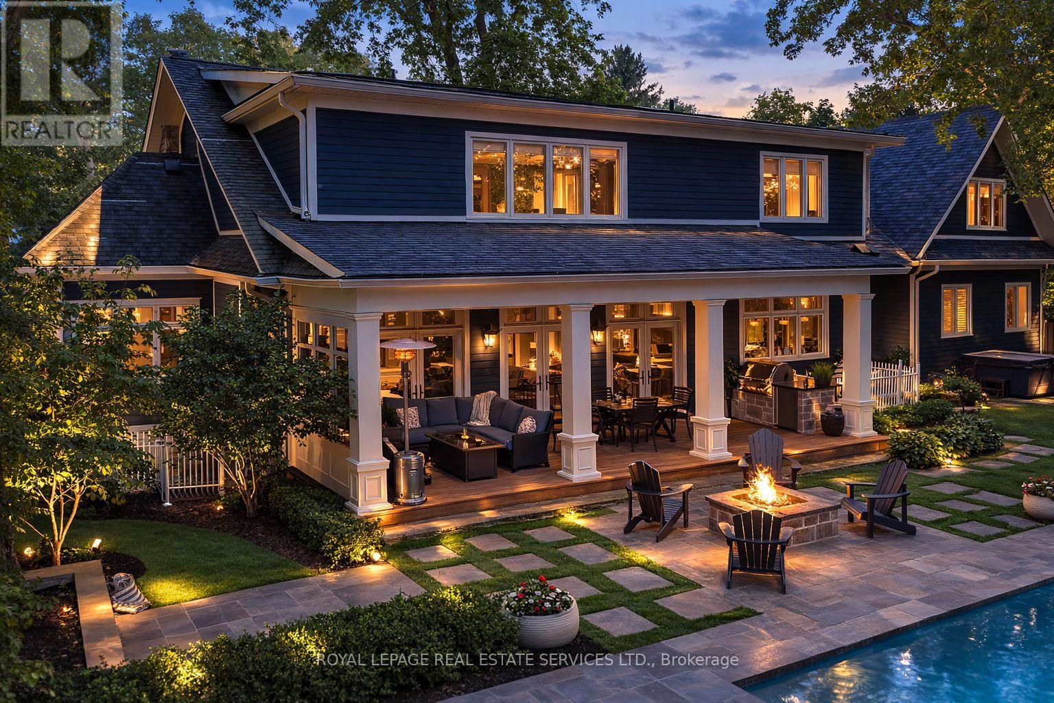 Timeless Cape Cod-inspired home set on a premium lot in prestigious South East Oakville, ideally located on a private dead-end street shared by just five distinguished homes. Built in 2008 and extensively renovated over the last 3 years, this home offers 4+1 bedrooms & 7 bathrooms with over 6,100 sq ft of beautifully finished living space. Elegant Carrara marble flooring, Calacatta marble and quartz surfaces,custom millwork and soaring ceilings, seamlessly blending classic architectural charm with refined modern luxury. Expansive French doors span the rear of the home, filling the principal rooms with natural light and providing seamless indoor-outdoor flow. The chef's kitchen is designed for both everyday living and elevated entertaining, featuring a 48" Viking range,professional hood fan,panelled Sub-Zero refrigerator,custom Top-Notch cabinetry and a generous island with Calacatta quartz counters. The adjoining family room is anchored by a striking Carrara marble fireplace, while a formal dining room offers an elegant setting for hosting. The main level also includes a private office, full bathroom with convenient backyard access,spacious laundry room,stylish powder room and a separate living room. The upper level is highlighted by a luxurious primary retreat with a coffered ceiling,custom built-ins an oversized walk-in dressing room and a spa-inspired ensuite overlooking the private backyard. Three additional spacious bedrooms each feature their own ensuite & walk-in closet. The fully finished lower level extends the living space with a large recreation room,guest bedroom with ensuite and a dedicated home gym. Professionally landscaped grounds create a resort-style backyard complete with an inground pool, hot tub, outdoor kitchenette,built-in fire pit,multiple lounge areas and low-maintenance turf lawn. Ideally located near parks and top-ranked schools, this exceptional turnkey home offers an outstanding lifestyle in one of Oakville's most coveted neighbourhoods (id:64974)