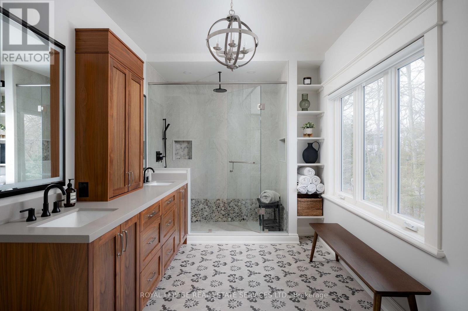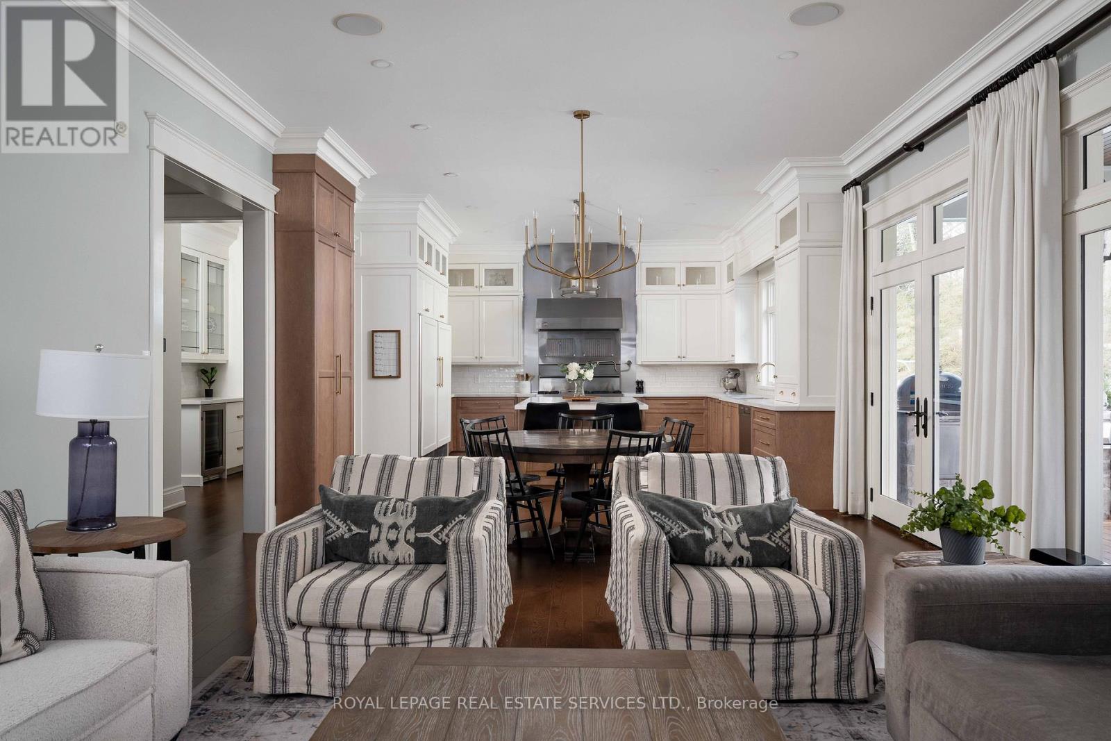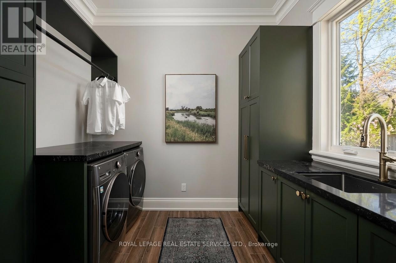 Timeless Cape Cod-inspired home set on a premium lot in prestigious South East Oakville, ideally located on a private dead-end street shared by just five distinguished homes. Built in 2008 and extensively renovated over the last 3 years, this home offers 4+1 bedrooms & 7 bathrooms with over 6,100 sq ft of beautifully finished living space. Elegant Carrara marble flooring, Calacatta marble and quartz surfaces,custom millwork and soaring ceilings, seamlessly blending classic architectural charm with refined modern luxury. Expansive French doors span the rear of the home, filling the principal rooms with natural light and providing seamless indoor-outdoor flow. The chef's kitchen is designed for both everyday living and elevated entertaining, featuring a 48" Viking range,professional hood fan,panelled Sub-Zero refrigerator,custom Top-Notch cabinetry and a generous island with Calacatta quartz counters. The adjoining family room is anchored by a striking Carrara marble fireplace, while a formal dining room offers an elegant setting for hosting. The main level also includes a private office, full bathroom with convenient backyard access,spacious laundry room,stylish powder room and a separate living room. The upper level is highlighted by a luxurious primary retreat with a coffered ceiling,custom built-ins an oversized walk-in dressing room and a spa-inspired ensuite overlooking the private backyard. Three additional spacious bedrooms each feature their own ensuite & walk-in closet. The fully finished lower level extends the living space with a large recreation room,guest bedroom with ensuite and a dedicated home gym. Professionally landscaped grounds create a resort-style backyard complete with an inground pool, hot tub, outdoor kitchenette,built-in fire pit,multiple lounge areas and low-maintenance turf lawn. Ideally located near parks and top-ranked schools, this exceptional turnkey home offers an outstanding lifestyle in one of Oakville's most coveted neighbourhoods (id:64974)