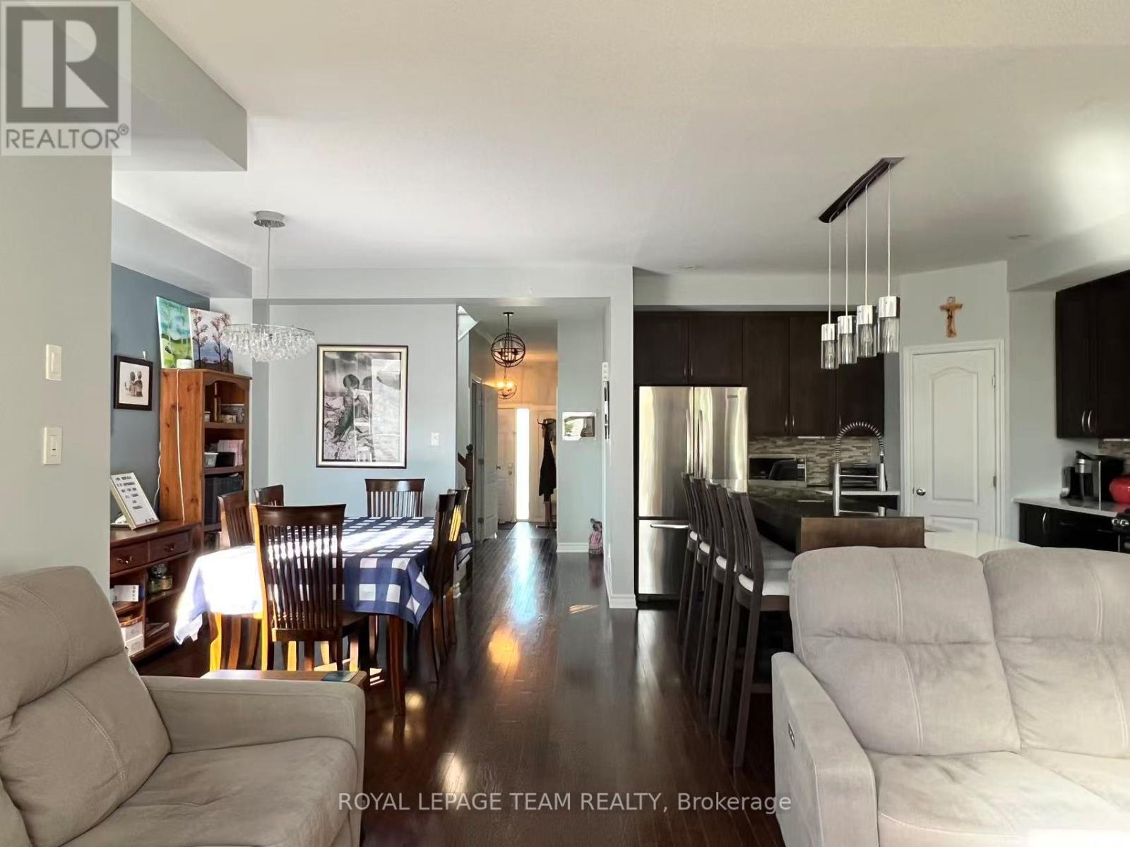 This beautiful 3-bedroom, 4-bathroom corner double townhome is now available for rent in the sought-after Kanata area.This modern, open-concept home features a chef's kitchen complete with stainless steel appliances, white quartz countertops, double basin sinks, tinted wood cabinetry, and an oversized island with a glass countertop and bar seating. The primary bedroom is bright and cozy, offering double windows, a walk-in closet, and a gorgeous ensuite with a soaker bathtub and shower. Two additional upstairs bedrooms are perfect for children, guests, or a home office.Additional features include:- Built-in gas fireplace- Attached 2-car garage- Fully finished basement with a full bathroom- Private backyard and patioThe home is located just minutes away from parks, shops, and trails. Please note that no smoking and no pets are preferred. Have Electric car charges installed. (id:64974)