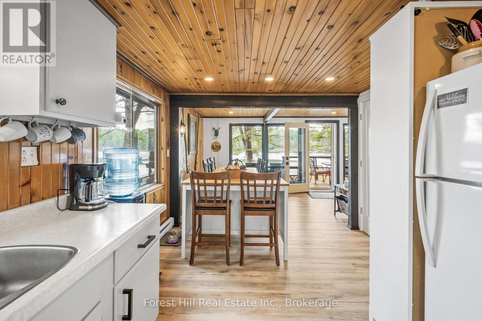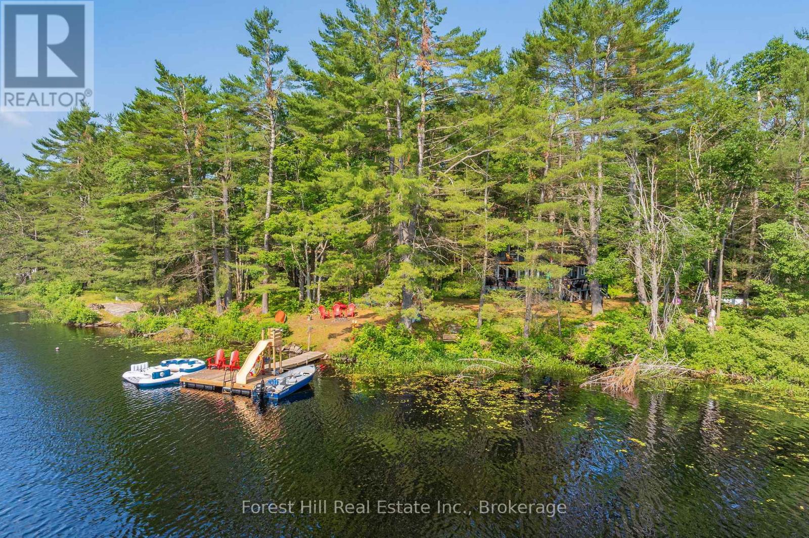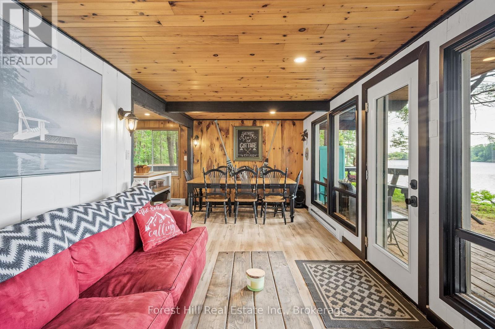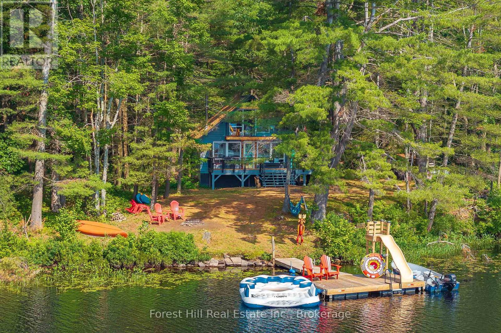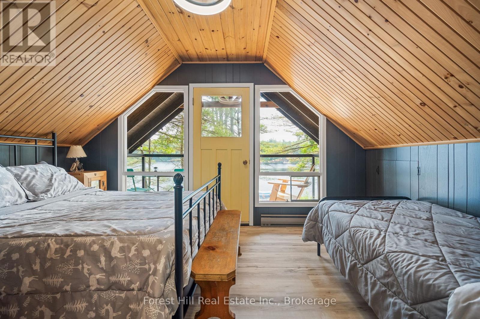 Welcome to Little Gull Lake, a rare and peaceful retreat surrounded by nature. This spring-fed lake is home to just 28 lots, with 3 being Crown Land, and is embraced by the Queen Elizabeth II Wildland Provincial Park. Known for excellent fishing, swimming, and motorized watersports, Little Gull is a hidden gem for those seeking privacy and natural beauty. Set on an acre lot with 166 feet of shoreline, this 3-bedroom, 1-bath cottage offers a perfect balance of comfort and seclusion. Since 2022, the current owners have thoughtfully updated the property with fresh interior and exterior paint, new flooring, stylish light fixtures, modern doors, and an upgraded balcony with sleek glass railing, all enhancing both style and function. Inside, the main floor features a cozy living area with a woodstove and a walkout to a spacious, partial wraparound deck where you'll spend countless hours enjoying serene lake views. A main floor bedroom with Murphy bed adds flexibility. Upstairs you'll find two generous bedrooms. The lakeside bedroom has access to the balcony overlooking the water; a picture-perfect morning coffee spot. The shoreline offers a mix of natural and deep water off the dock for diving in on hot summer days. The gently sloping driveway leads to a level lot, making access easy and convenient for family and guests alike. Located just 15 minutes from Minden or 15 minutes to Norland, this property combines the tranquility of cottage living with the convenience of nearby amenities.1099 Bracken Trail is more than a cottage, its a private escape where peace, privacy, and natural beauty come together. (id:64974)