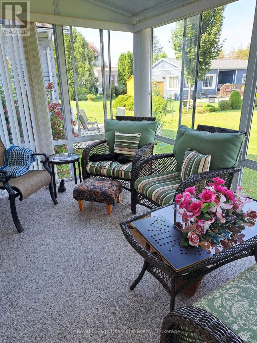 Wish you were here! Twin Elm Estates is a premiere Adult Lifestyle Community located in Strathroy - minutes to shopping, restaurants, hospital and golf! This is a beauty of home - semi detached with crawl space. Home is nicely landscaped! Open concept living space. Immaculate home - well kept. Move in condition. Spacious Kitchen features granite countertops and lots of cabinets. Separate dining room. Large laundry room with access to crawl space. Reverse Osmosis unit is owned. Main Bathroom features walk in tub. Master bedroom with walk in closet and Ensuite. 2nd bedroom is at the back of the home and opens to 3 season sunroom for private outdoor relaxation. Lower patio area from the sunroom. Newer roof - 2015 - 35 year shingles. On demand water heater is owned. Sandpoint well for outdoor watering. Fees for New Owners are Land Lease $800/month, Taxes $112.80/month (id:64974)
