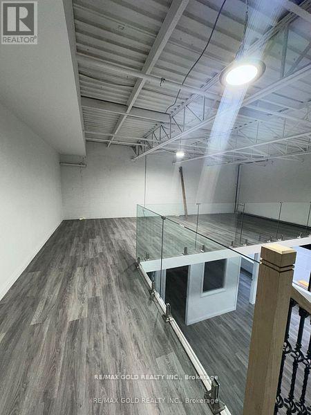 Unit allows auto repair/auto body shop use and features glass-front windows with excellent exposure. The space includes three private glass offices, a welcoming lobby area, kitchen, 2 washroom, and additional upper-level workstation space. Steel ramp installed for automotive use.Boasting 18 ft clear ceiling height and a column-free layout, the unit offers excellent functionality for a variety of uses, including warehousing, light manufacturing, kitchen cabinet manufacturing, and other permitted industrial/commercial uses. (id:64974)