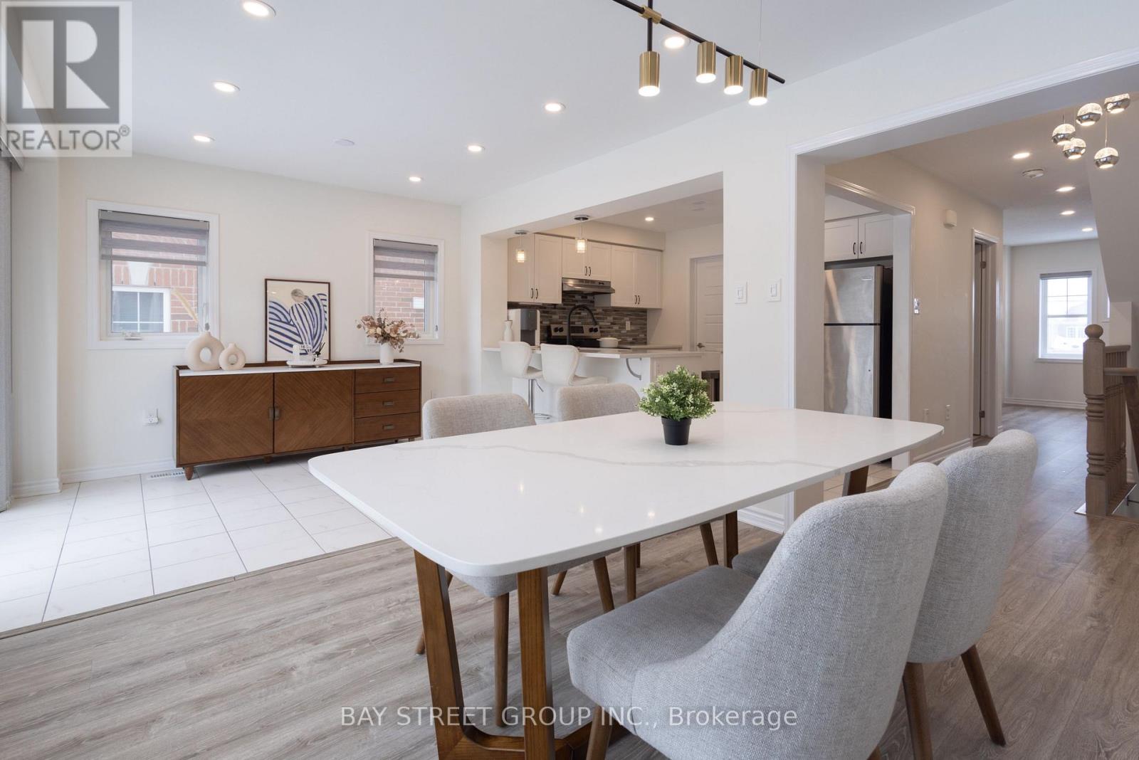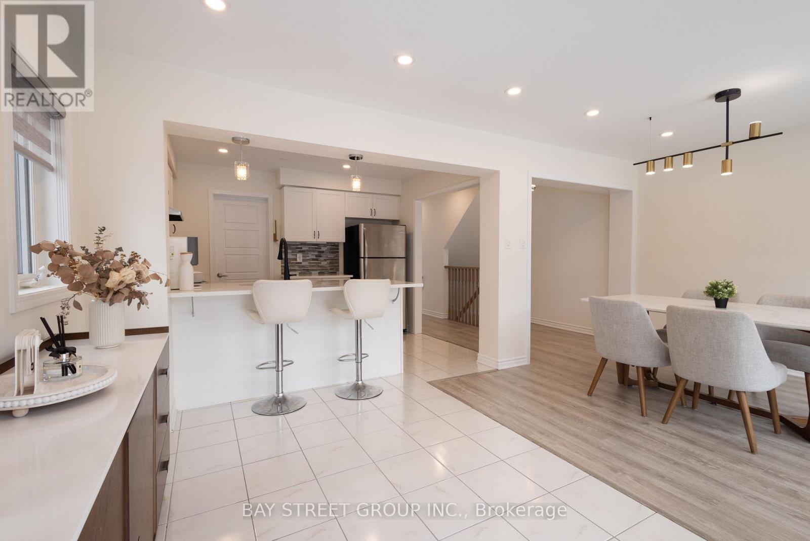 Welcome to this stunning end unit 3 storey Freehold Townhouse, perfectly positioned in a family-oriented community and overlooking beautiful green space. Enjoy peaceful terrace views and an abundance of natural light that enhances the home's bright and airy atmosphere. This spacious home features 3+1 bedrooms and 3 bathrooms, offering flexible living for growing families or professionals. The main floor boasts a generous living and dining area, a breakfast nook, and a gourmet kitchen complete with upgraded stainless steel appliances, breakfast bar, stylish backsplash, and a walk-in pantry - perfect for both everyday living and entertaining. An unfinished mechanical room on the ground level offers incredible potential to customize additional living space, a private office, gym, or storage - allowing you to add value and tailor the home to your lifestyle. Enjoy the convenience of easy access with minimal traffic congestion, while being close to the GO Station, major highways, shopping, Costco, parks, and more. A rare opportunity combining comfort, functionality, and location - this is one you won't want to miss. POTL Monthly Fee: 153.46 (id:64974)