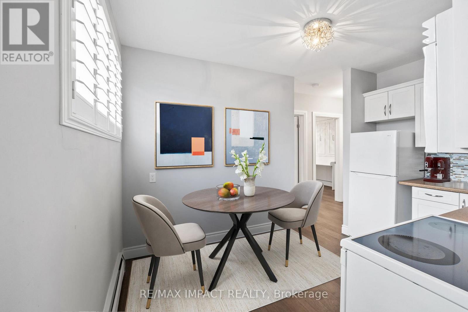 Bright and inviting 2 bedroom condo ideally located just steps from downtown shops, restaurants, the beach, and beautiful Victoria Park. This well-maintained unit features updated flooring, kitchen, and bathroom, offering a modern and move-in ready space. Enjoy the convenience of an exclusive parking space and a private storage locker. Unwind on your south-facing balcony while taking in stunning sunset views, or relax in the shared green space tucked just off the parking area. Additional highlights include an on-site shared laundry facility for added ease and comfort. An excellent opportunity for those seeking a vibrant lifestyle in a highly walkable location. (id:64974)