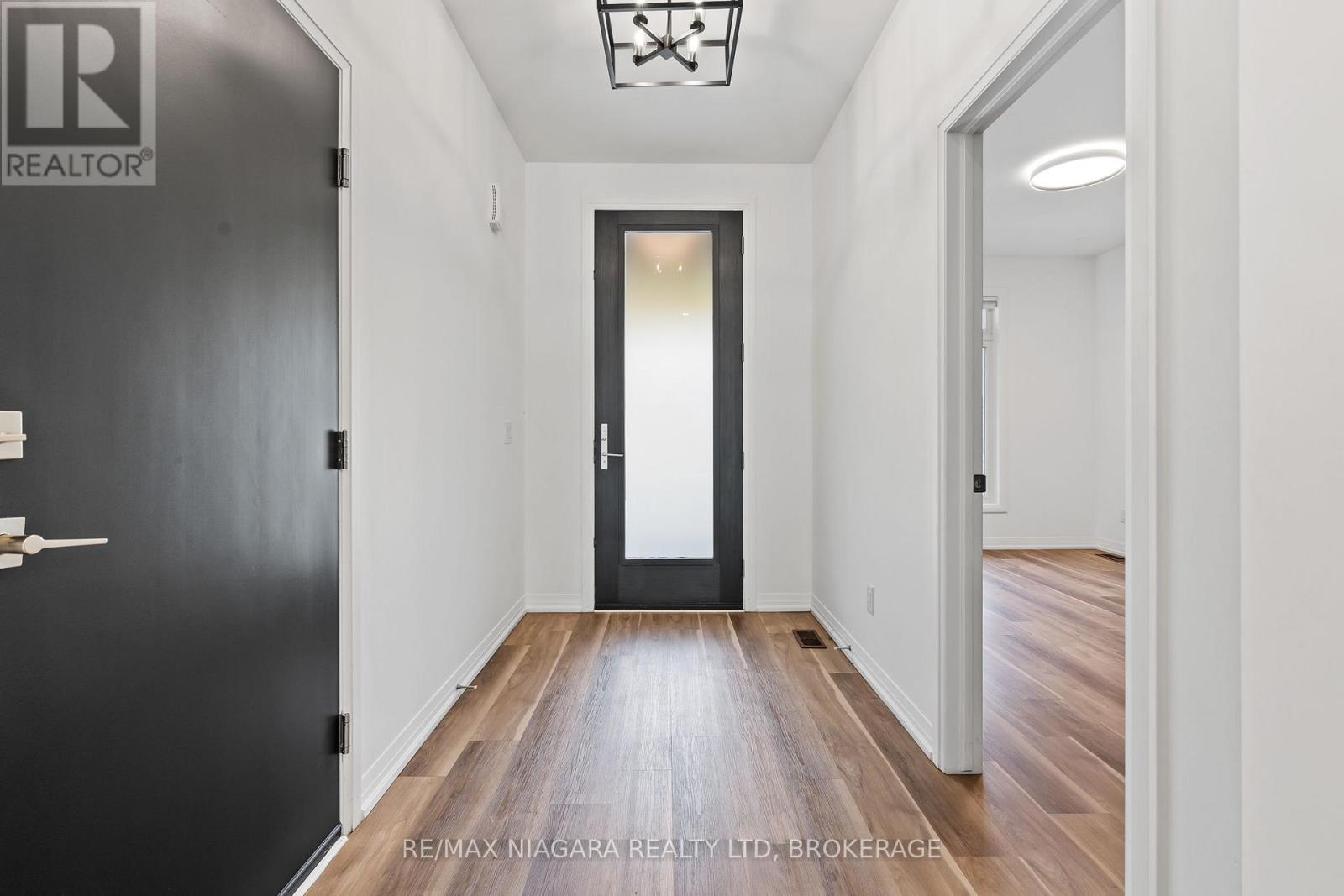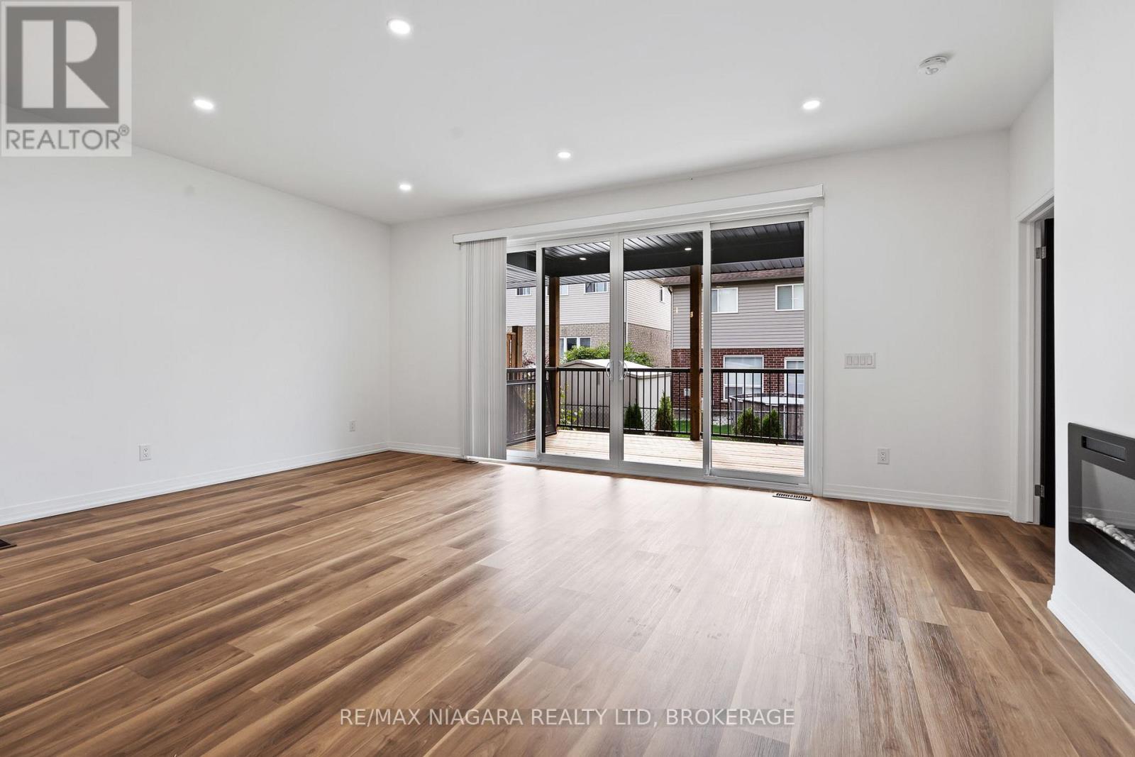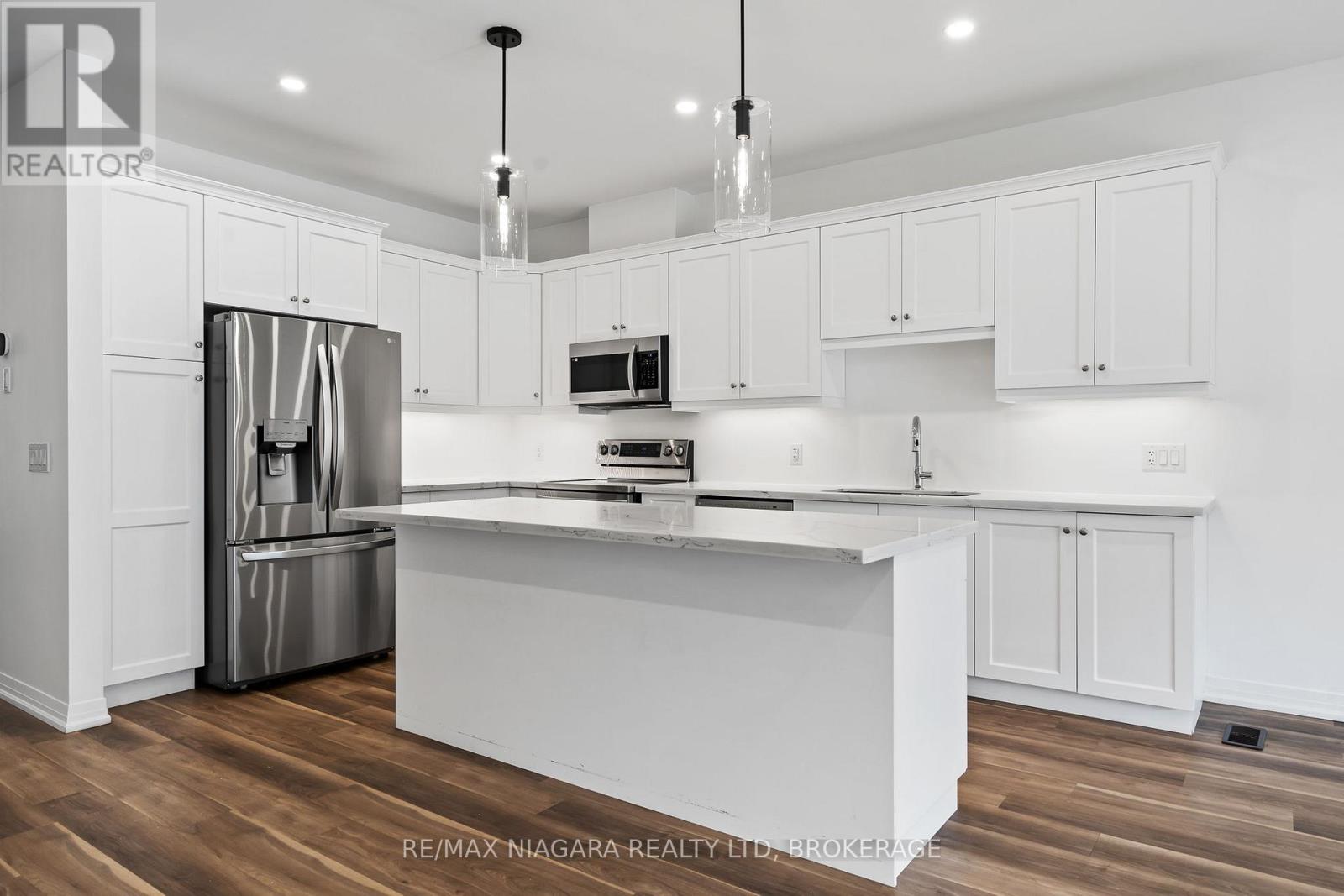 Discover over 2600 sq ft of beautifully finished living space in this bungalow townhome with its distinctive contemporary look and located in a wooded private setting on the edge of Thorold. Richmond Woods is your tranquil oasis. This thoughtfully designed home features 3+1 bedrooms, 2+1 bathrooms, a 1.5 car garage and main floor living for ultimate comfort and convenience with additional basement living space. Enjoy an open-concept layout filled with natural light, hardwood flooring, and a formal dining area ideal for entertaining. The upgraded kitchen offers a large island, quartz countertops, and seamless flow to your private deck, perfect for morning coffee or evening relaxation. Bathrooms feature quartz countertops and tiled glass showers, blending modern elegance with everyday functionality. The finished basement boasts large living room ideal for family or recreational space, with functional sink and space to add a dishwasher and fridge. Whether you're looking to downsize or enjoy a low-maintenance lifestyle in a serene, premium location, this home offers the perfect balance of space, style, and tranquility. (id:64974)