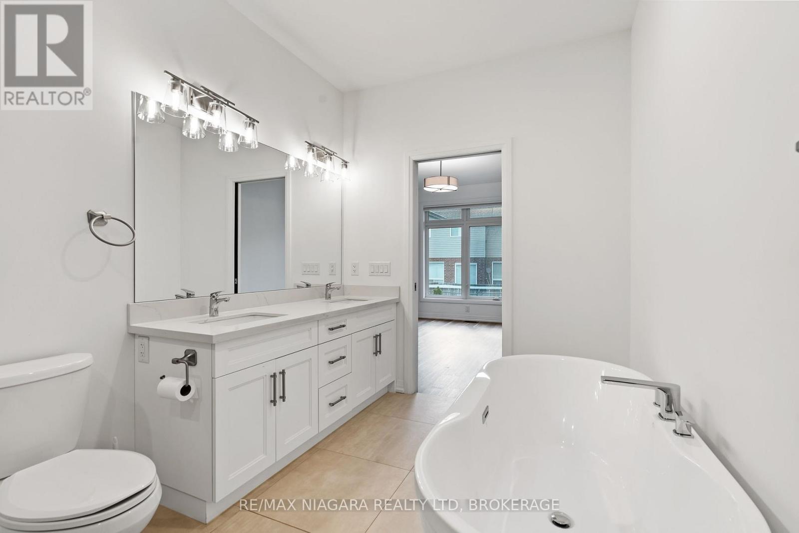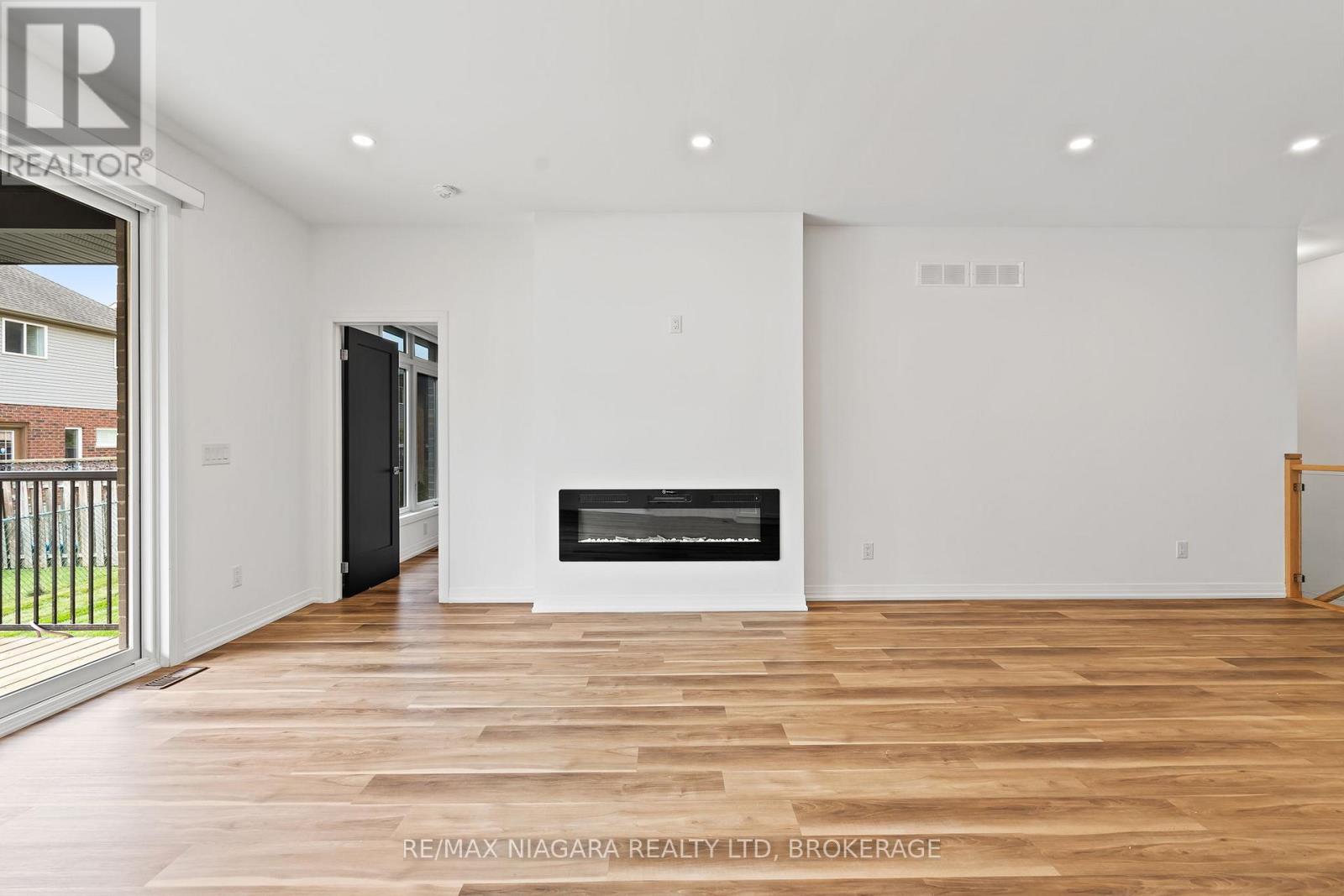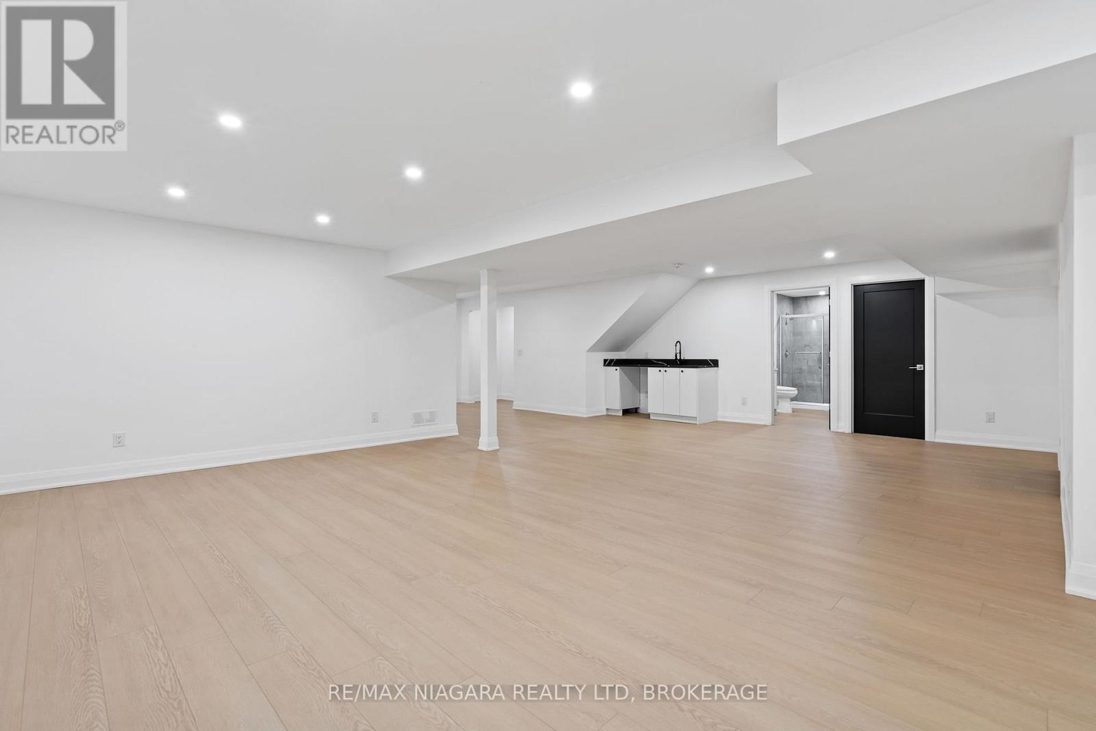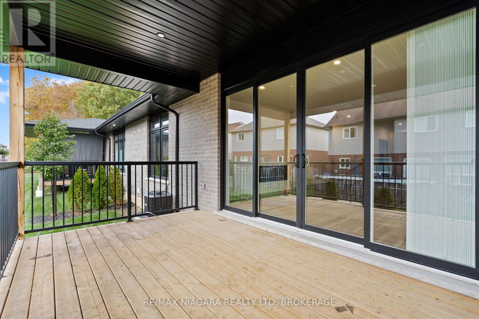 Discover over 2600 sq ft of beautifully finished living space in this bungalow townhome with its distinctive contemporary look and located in a wooded private setting on the edge of Thorold. Richmond Woods is your tranquil oasis. This thoughtfully designed home features 3+1 bedrooms, 2+1 bathrooms, a 1.5 car garage and main floor living for ultimate comfort and convenience with additional basement living space. Enjoy an open-concept layout filled with natural light, hardwood flooring, and a formal dining area ideal for entertaining. The upgraded kitchen offers a large island, quartz countertops, and seamless flow to your private deck, perfect for morning coffee or evening relaxation. Bathrooms feature quartz countertops and tiled glass showers, blending modern elegance with everyday functionality. The finished basement boasts large living room ideal for family or recreational space, with functional sink and space to add a dishwasher and fridge. Whether you're looking to downsize or enjoy a low-maintenance lifestyle in a serene, premium location, this home offers the perfect balance of space, style, and tranquility. (id:64974)