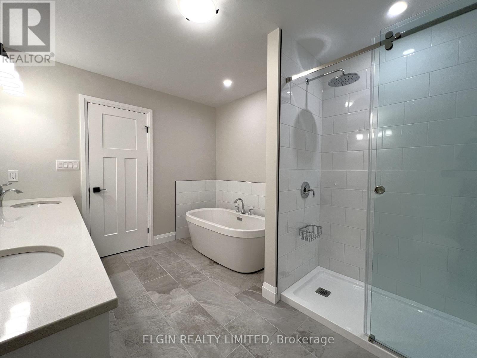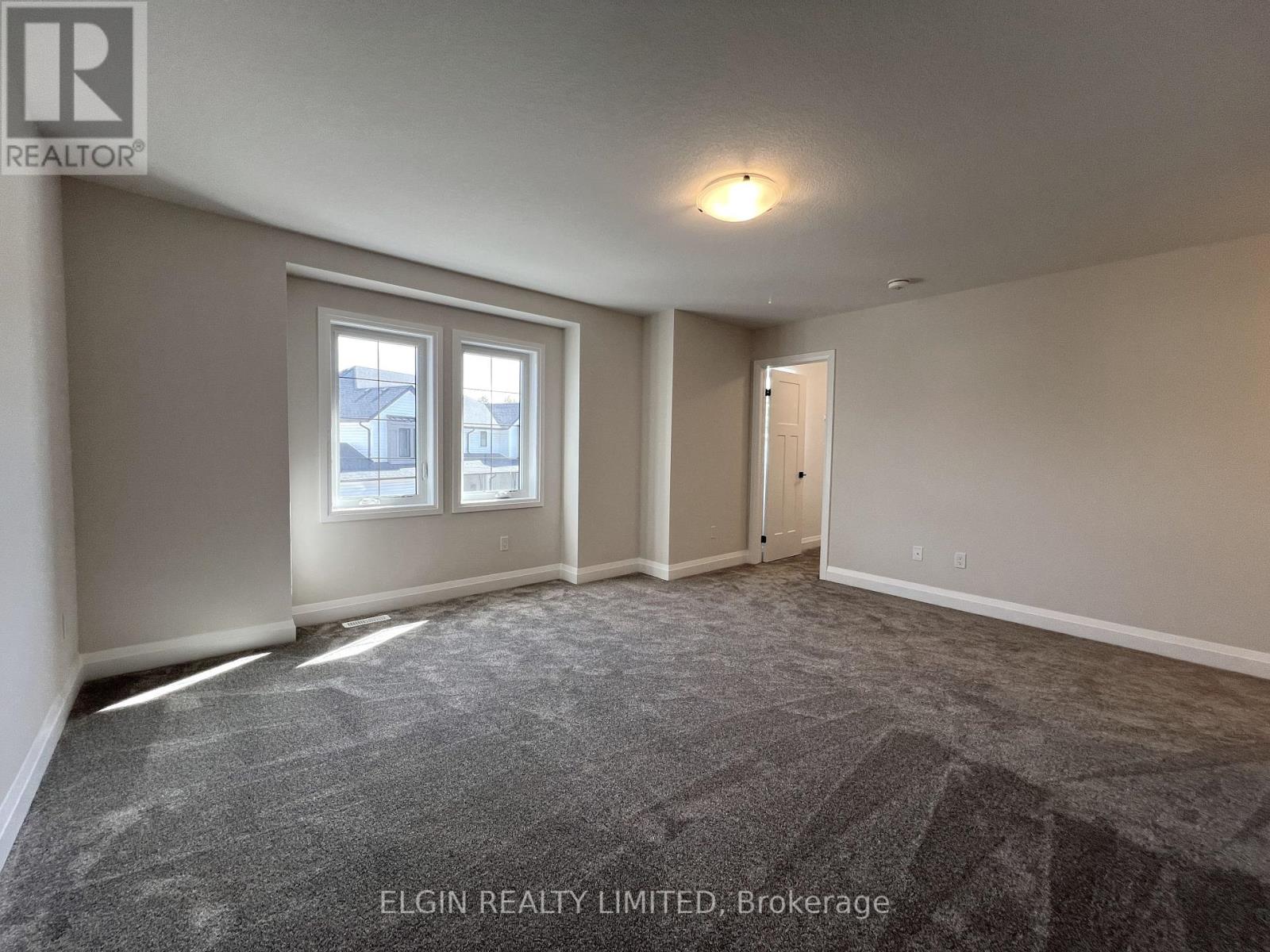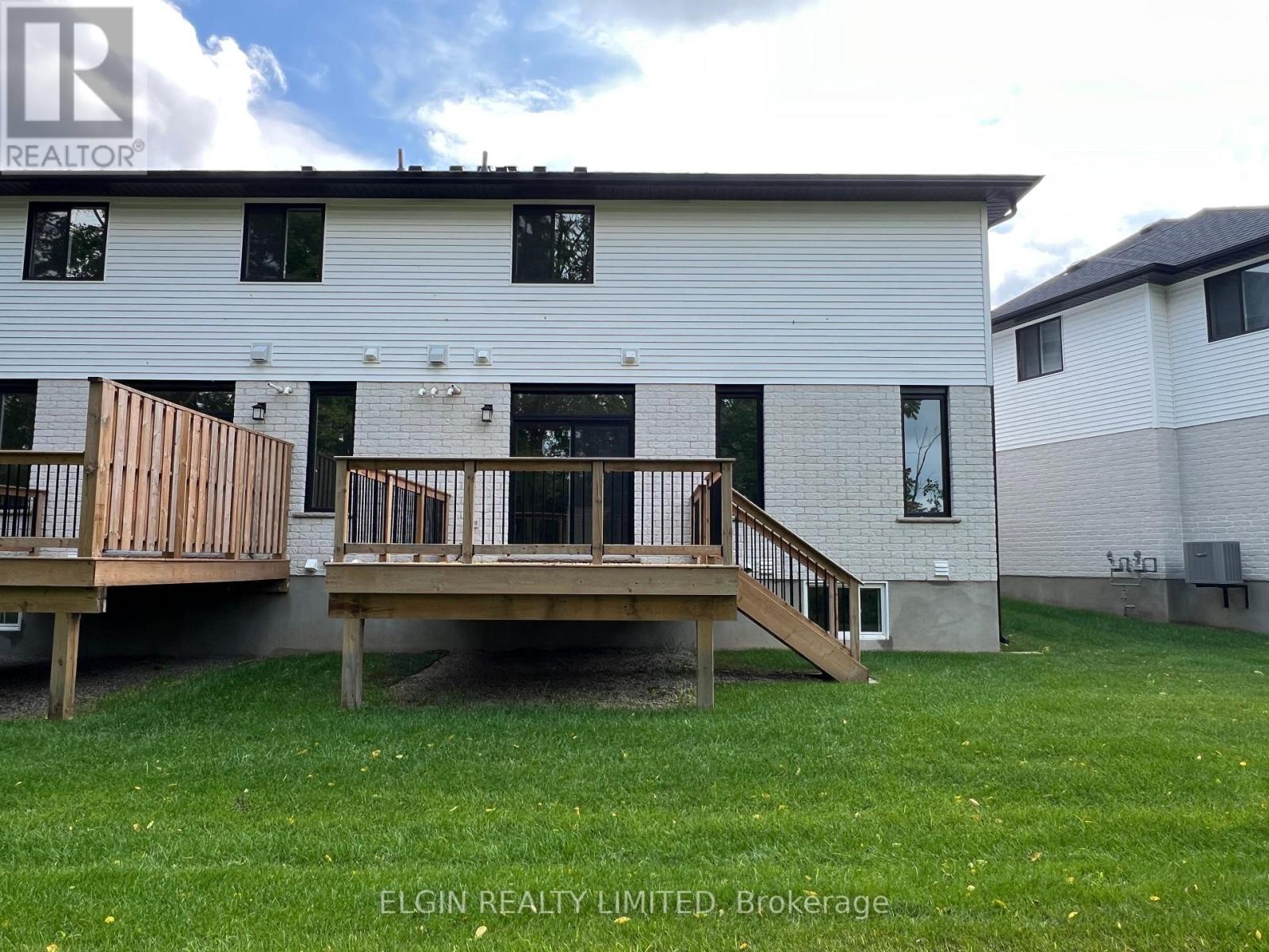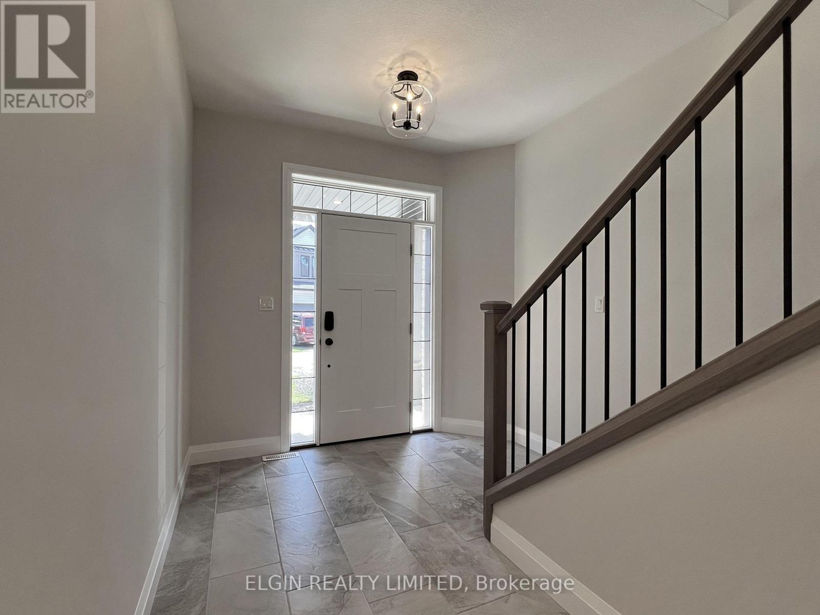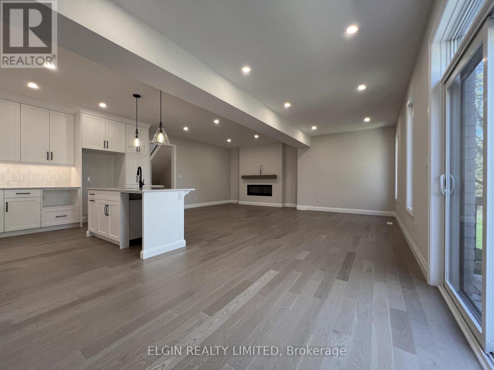 Welcome to 11-49 Royal Dornoch Drive beautifully crafted by Hayhoe Homes, this semi-detached two-storey perfectly blends luxury, space, and functionality across three finished levels. Offering 4 bedrooms, 2.5 bathrooms, plus a dedicated office, this home features an open-concept main floor with 9' ceilings, hardwood and ceramic tile flooring (as per plan), and a designer kitchen complete with hard-surface countertops, tile backsplash, island, and cabinet-style pantry. The kitchen flows seamlessly into the dining area and great room, highlighted by an electric fireplace and patio doors leading to a rear deck with views of trees and the valley beyond. Upstairs, the spacious primary suite includes a walk-in closet and a spa-inspired ensuite with a freestanding soaker tub, tiled shower, and double vanity with hard-surface counters. Three additional bedrooms, a 4-piece main bath, and convenient second-floor laundry complete the upper level. The finished lower level adds even more living space with a large family room and private office ideal for working from home. Additional features include 200 AMP electrical service, garage door opener, BBQ gas line, Tarion New Home Warranty, and numerous upgraded finishes throughout. Located in the desirable Shaw Valley community, close to parks, trails, schools, shopping, restaurants, and just a short drive to the beaches of Port Stanley. (id:64974)