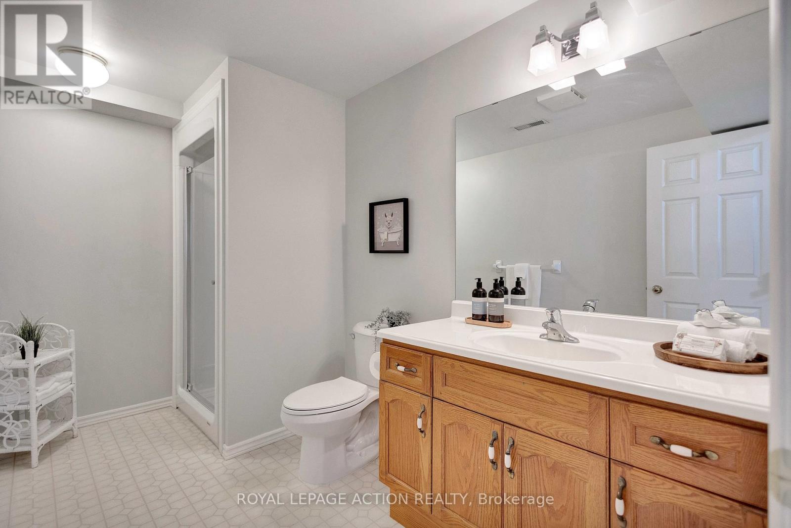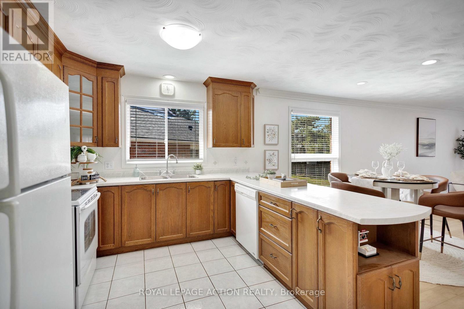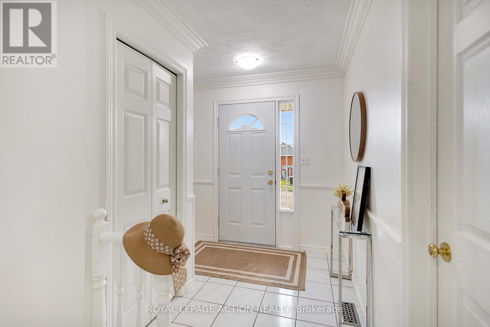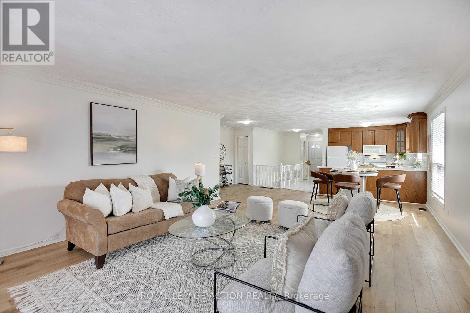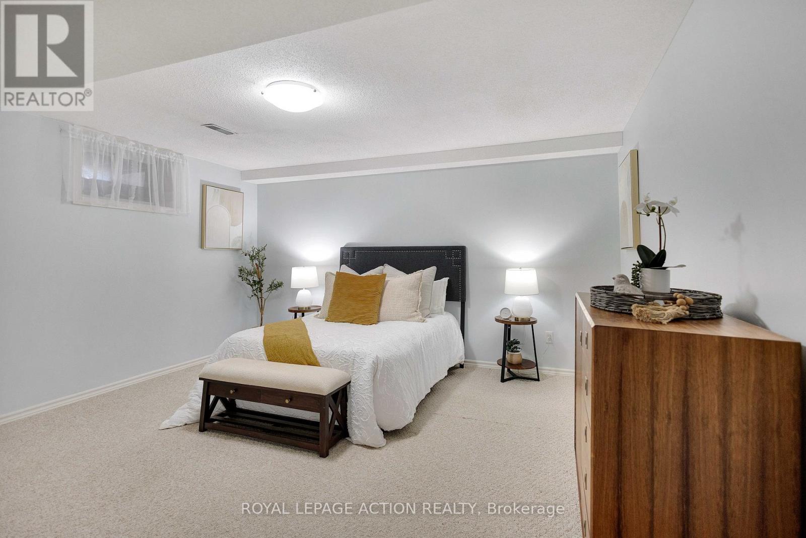 Welcome to this beautifully maintained end-unit townhouse condo offering comfort, convenience, and move in ready living! Featuring 2+1 bedrooms and 2 full bathrooms, this home is perfect for downsizers, first time buyers or anyone seeking low maintenance living without sacrificing space. This unit has a full garage and offers a second entrance direct to the home. The main floor doors are all 34 inches which meets accessibility requirements for walker/wheelchair, basement doors are standard 30 inches. Step inside to a bright, open concept layout which is enhanced by large windows that fill the home with natural light. The freshly painted interior provides a clean, modern feel throughout. Enjoy the ease of main floor laundry and a functional layout designed for everyday living. The spacious living and dining area flows seamlessly to a private deck through patio doors- perfect for morning coffee or relaxing evenings. The additional bedroom offers flexibility for guests, and the lower level includes a home office and a hobby space. Located in a highly desirable area close to shopping, transit, and all amenities, this home offers both lifestyle and convenience. A fantastic opportunity- just move in and enjoy! Front entrance pictures AI enhance to simulate a sunset. (id:64974)