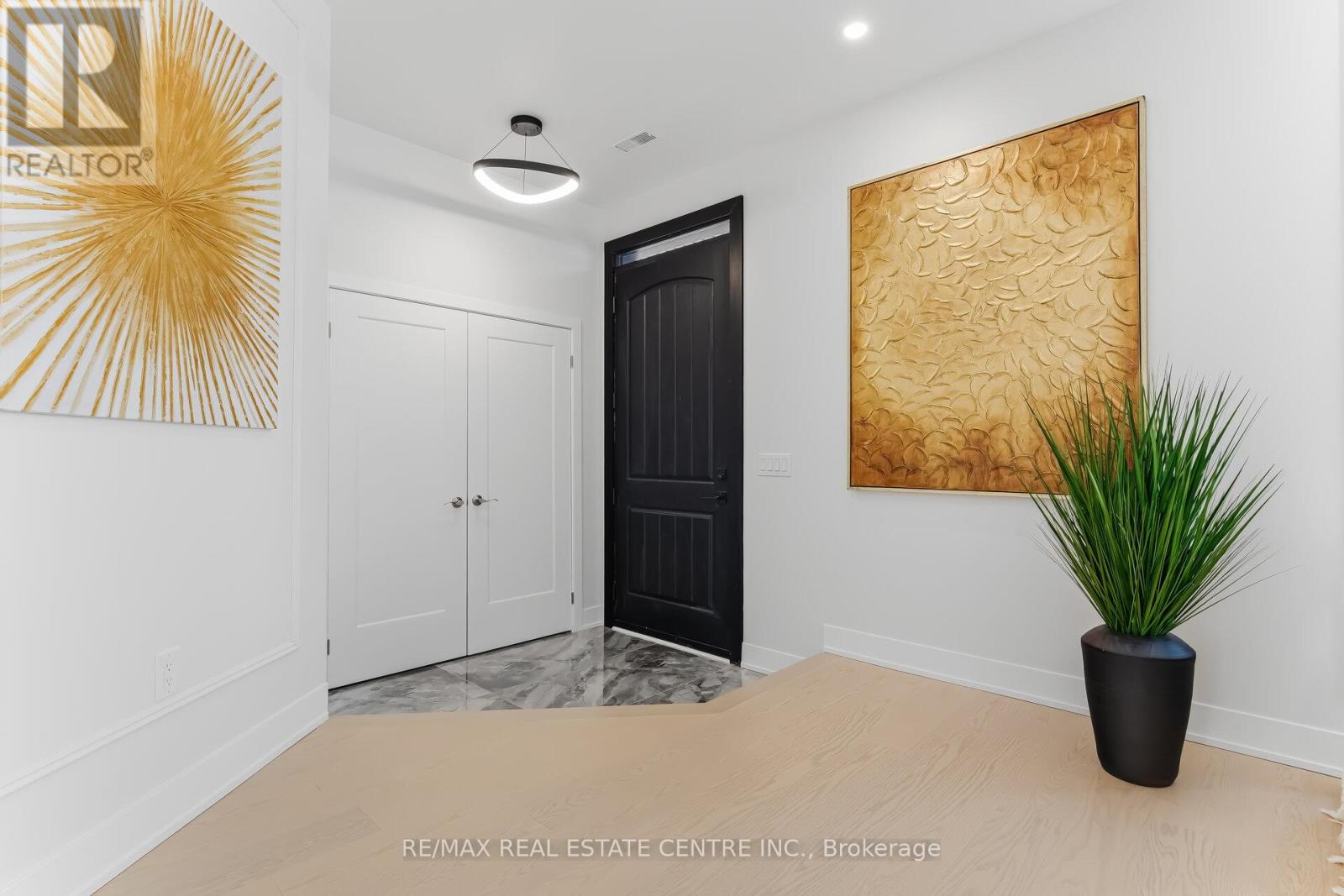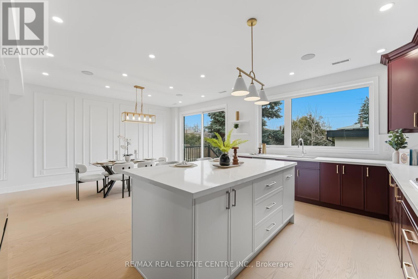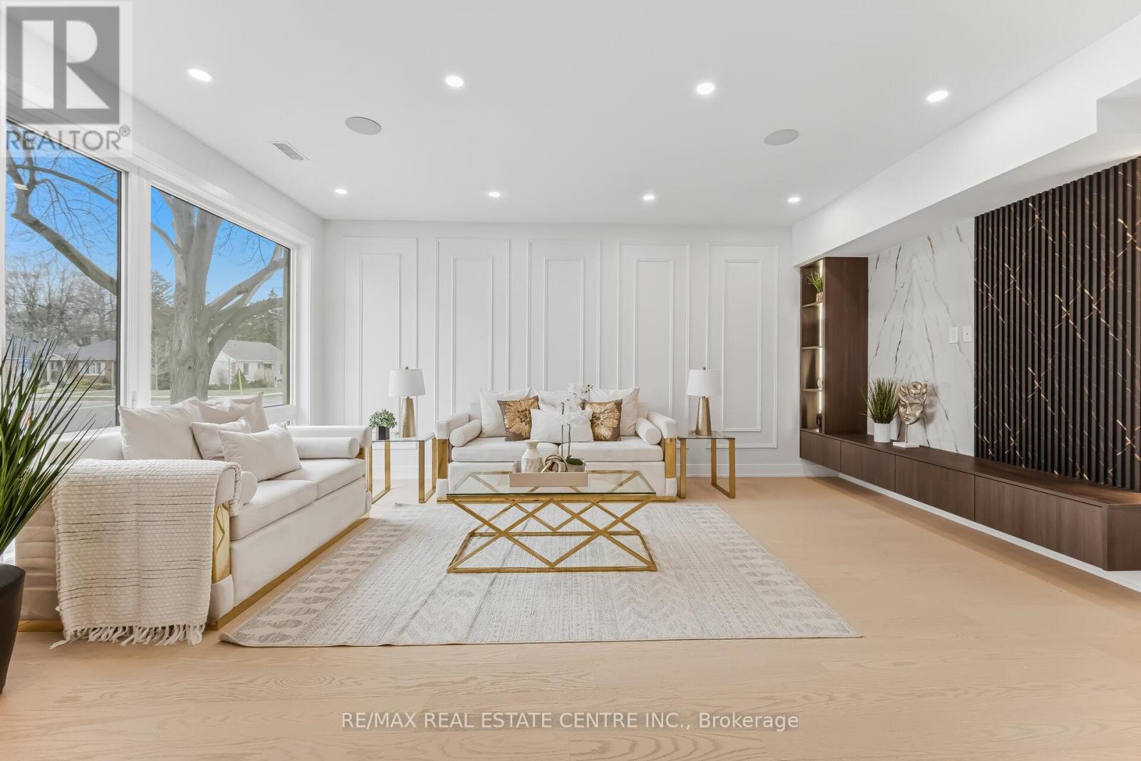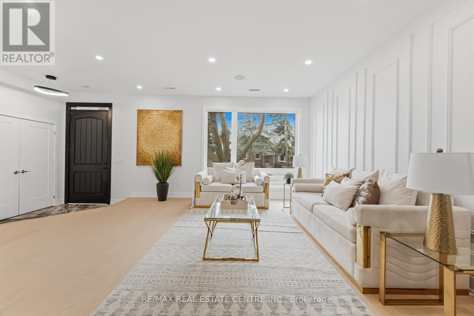 Rare Opportunity To Own A Newly Finished, Custom-Built Detached Masterpiece In Highly Coveted Stonegate-Queensway! This home defines luxury with superior finishes and a masterfully designed open-concept layout. The main floor features a private office with custom glass doors and a sprawling family room anchored by a sleek built-in multimedia cabinet. The chef's kitchen is a true showstopper, boasting premium built-in appliances, a massive center island, and a spacious dining area that flows seamlessly through oversized patio doors to a large wooden deck-perfect for entertaining.The second level is flooded with natural light from designer skylights in the hallway and primary closet. The primary retreat offers a spa-like sanctuary with heated floors, a deep soaker tub, a large glass shower, and two generous walk-in closets. Two additional bedrooms share a functional Jack-and-Jill bath, while the fourth bedroom enjoys its own private ensuite. Second-floor laundry adds ultimate convenience for modern living.The registered basement apartment provides incredible rental potential to supplement income or serves as an exclusive in-law suite, featuring 2 bedrooms, 2 bathrooms, a large great room, a full kitchen, and its own separate laundry room. Outside, you'll find a rare detached double garage and a large driveway providing parking for multiple vehicles.Exceptional location with top-rated schools nearby. You are just minutes from premium shopping, fine dining, and the Mimico GO Station. Commuting is effortless with quick QEW access and a short 15-minute drive to both Billy Bishop and Pearson International Airports. This home offers the perfect balance of great finishes, rental potential, and exclusive living in one of Etobicoke's most sought-after pockets. A true turnkey gem that is rarely offered! (id:64974)