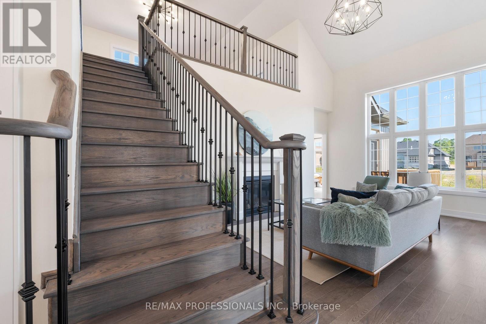 Stunning Brand New Never Lived In, 5 bed 4 bath Bungaloft. Modern & Sleek Kitchen with High End Black Stainless Steel Appliances, Oversized Quartz Kitchen Island & Breakfast Bar, Backsplash, & Pantry room. Open Concept to Eat-in Kitchen with walkout to 220 ft PREMIUM LOT. Must See Upper Level Loft Overlooking Great Room with 18 foot Vaulted Ceilings and Grand Portrait Windows and fireplace. Main level Primary room with 6 pc ensuite with all glass shower walk-in shower and standalone soaker tub, walk-in closet, double door walk out to yard. Main floor laundry and Mudroom. 10 parking spaces including 3 car garage. Home is under Tarion warranty. **EXTRAS** Largest Vineyard Floor Plan. 2700+ Square Feet. $$$$ Upgraded finishes. High End Appliances. Hardwood Floors and Hardwood Stairs. Builder to lay new grass, pave 7 car driveway + plant trees. (id:64974)