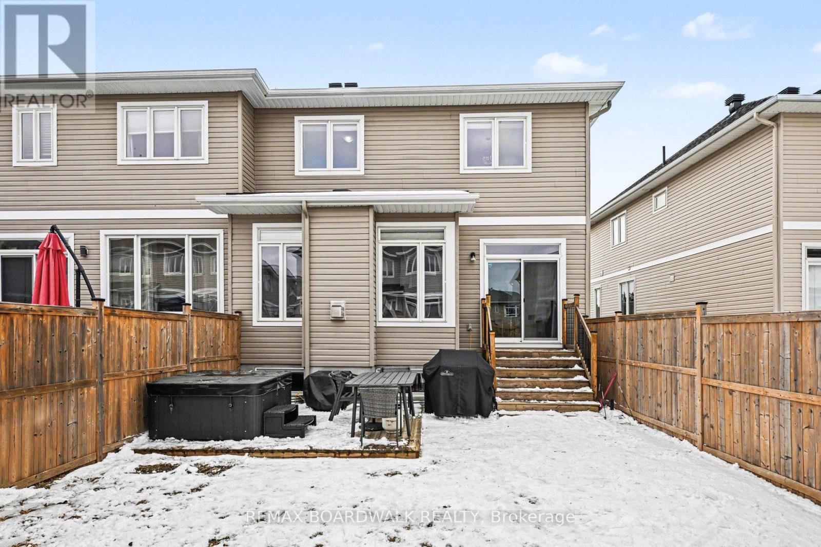 Welcome to a spacious two-storey semi-detached home in the growing community of Carleton Place, offering comfort, functionality, and convenience for families and first-time buyers. This popular Magnolia model offers over 2,200 sq ft of well-designed living space, providing room to grow while staying connected to everything the area has to offer. The main floor features a bright open-concept layout that brings together the kitchen, dining, and living areas in a welcoming and practical way. A central island anchors the kitchen with ample prep space and storage, while the adjoining spaces create an easy flow for daily living or entertaining. A cozy gas fireplace adds warmth and character to the space. Upstairs, you'll find four well-sized bedrooms, including a spacious primary suite with a walk-in closet and private ensuite. Second-floor laundry adds convenience, while additional full bathrooms provide space for the whole family. The finished lower level expands your living space with a comfortable family room, along with an additional bedroom and full bathroom, ideal for guests, teens, or extended family. This home features thoughtful updates, including granite countertops, custom window coverings, and exterior improvements such as a stone front patio, driveway detailing, fencing, and a backyard deck. The oversized garage provides excellent storage and everyday practicality. Set in a family-friendly neighbourhood, this property is within walking distance to schools, parks, a splash pad, and local favourites like the Heritage Gym and nearby cafés. Nearby pond and walking paths offer a peaceful outdoor setting, with quick access to Highway 7 for commuting. Shopping, groceries, and daily amenities are just minutes away, making everyday living simple and convenient. A well-rounded home in a sought-after area, offering space, comfort, and a lifestyle that's easy to settle into. (id:64974)