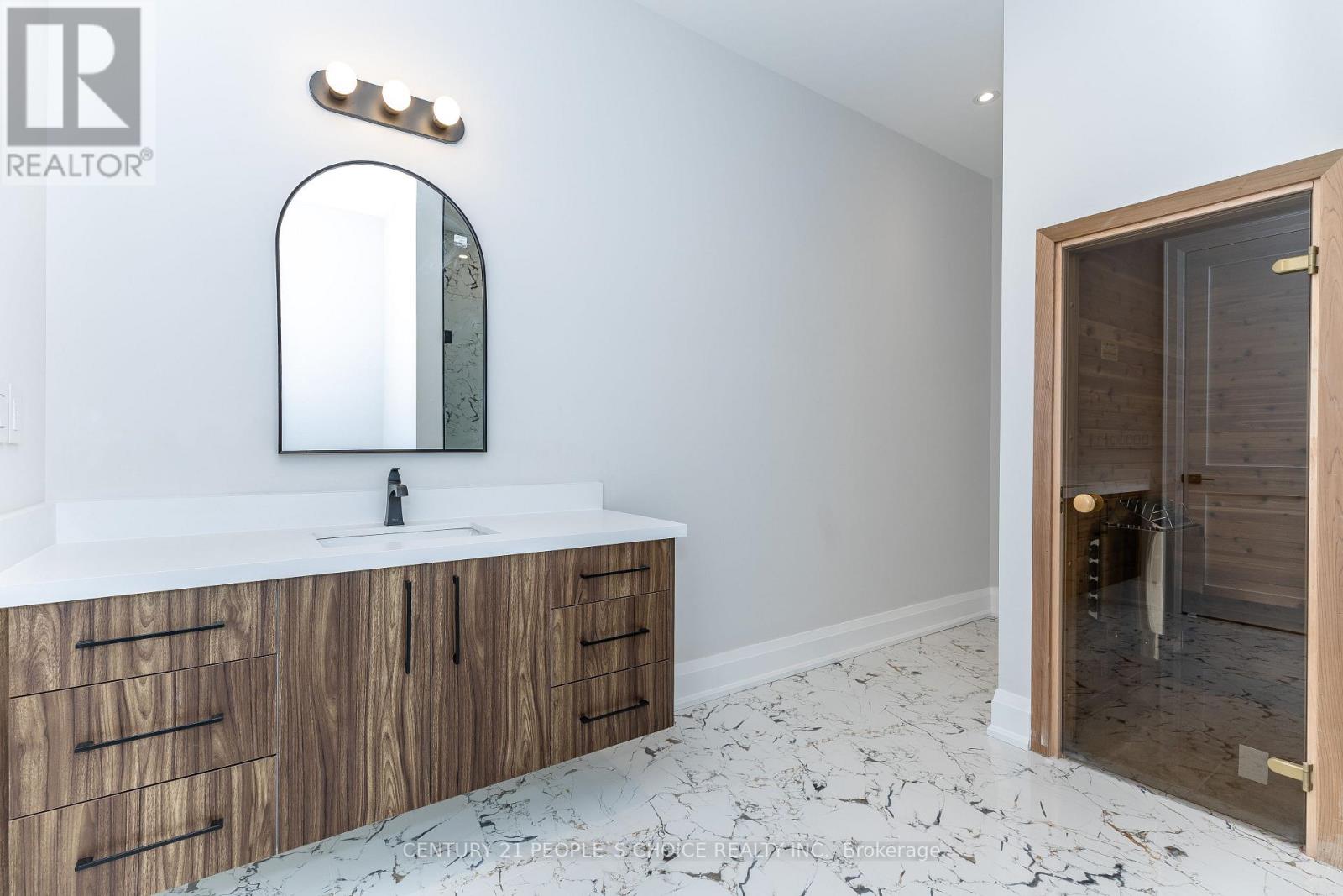 Brand new custom-built bungalow with 5,000 Sqft + living space offering elevated luxury, exceptional craftsmanship, and ultimate comfort on a sprawling 1.3-acre lot. This stunning home features 5 spacious bedrooms and 5 beautifully appointed bathrooms, designed with both elegance and functionality in mind. The open-concept layout is complemented by high-end finishes throughout, creating a seamless blend of sophistication and warmth. The fully finished basement is equipped with radiant in-floor heating throughout, ensuring year-round comfort. Enjoy premium lifestyle features including a private sauna, a dedicated theater room for cinematic experiences at home, and a quiet study perfect for remote work or reading. Car enthusiasts and families alike will appreciate the oversized 3-car garage, offering ample space for vehicles, storage, and more. Experience refined country living with modern luxury in this exceptional custom residence. (id:64974)