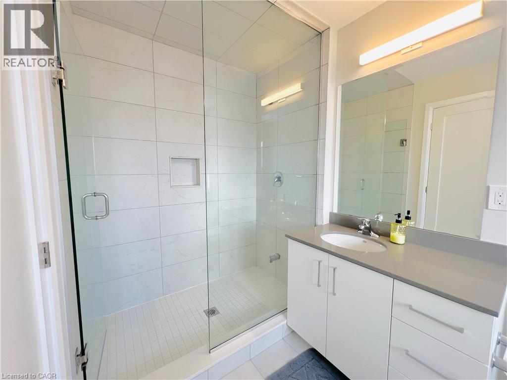 Welcome to this beautifully newly built one of the most spacious semi-detached 2-storey home by the reputable Spallaci Home Builders. Nestled in the highly sought-after, upscale, & family-friendly West Hamilton Mountain neighbourhood, this home offers the perfect combination of modern design, everyday comfort, & exceptional convenience. From the moment you arrive, the inviting brick & stone exterior & charming covered porch create a warm & welcoming first impression. Step inside to discover a bright, open living space enhanced by 9-foot ceilings & large windows that fill the main floor with natural light, creating an uplifting & spacious atmosphere. The heart of the home is the stunning kitchen, featuring quartz countertops, sleek overhead cabinets & drawers, & a seamless walk-out to the rear deck—ideal for outdoor dining, entertaining, or simply enjoying a quiet moment outside. The modern open-concept layout makes hosting & everyday living feel effortless, with a smooth flow from kitchen to dining to living areas. Upstairs, the home continues to impress with a well-designed second floor that offers comfort & privacy for the whole family. The main bedroom serves as a peaceful retreat, complete with a private ensuite bath & a walk-in closet. Two additional bedrooms provide flexibility for children, guests, or office space—one of which includes its own walk-in closet for added convenience. The separate second-floor laundry room is a thoughtful & practical touch that simplifies daily routines. The partially finished basement, complete with a 3-piece bath, offers excellent potential for additional living space—whether you envision a cozy family room, home gym, hobby area, or guest suite. Perfectly located minutes from the Garth & Upper James shopping areas, & a short distance to nearby parks & schools, this home delivers style, comfort, & convenience in one exceptional package. A wonderful opportunity to enjoy modern living in a fantastic neighbourhood—welcome home! (id:64974)