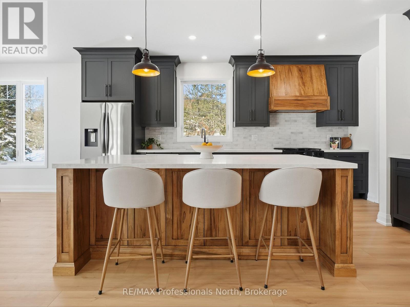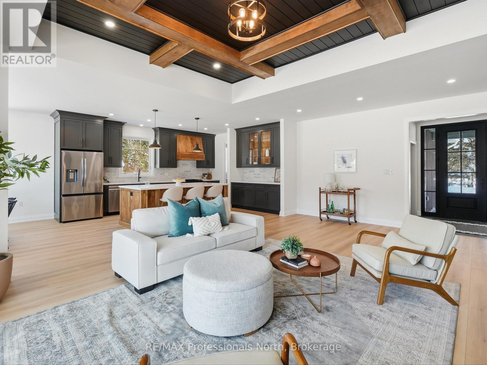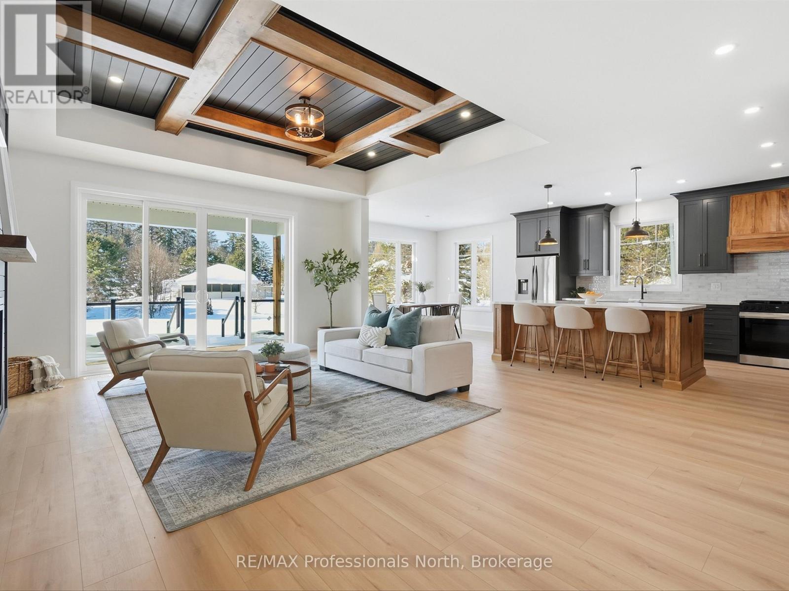 Set among neighbouring homes yet offering a strong sense of privacy, this property's prime location puts you minutes from lakes, beaches, golfing, hiking trails and many of Huntsville and Bracebridge attractions. V.K. Greer Memorial Public School is a 4 minute drive. Situated near the Utterson Community Hall including a playground, baseball diamond, soccer field, and tennis/basketball courts. Featuring 3 spacious bedrooms and 2 beautifully appointed bathrooms, this home showcases thoughtful design throughout-highlighted by elegant coffered ceiling details, a cozy gas fireplace, and a striking wood-detailed island and custom range hood that anchor the open-concept living space. Large windows flood the home with natural light, creating a warm and inviting atmosphere ideal for both everyday living and entertaining. The functional layout includes a mudroom off a 2-car garage, convenient main-level laundry, and a butler's pantry that offers flexible use as additional storage or a stylish coffee bar. The private primary suite is a true retreat, complete with a generous walk-in closet and a spa-inspired ensuite featuring beautiful finishes, a separate shower, and a relaxing tub. Two additional bedrooms are equally bright and welcoming, each filled with natural light. Downstairs, the large unfinished basement offers endless potential, enhanced by oversized windows that bring in exceptional light-perfect for future living space, gym, or recreation area. A thoughtfully designed home where comfort, style, and location come together seamlessly. Bright, open living, and refined craftsmanship! You are invited to come have a look! (id:64974)