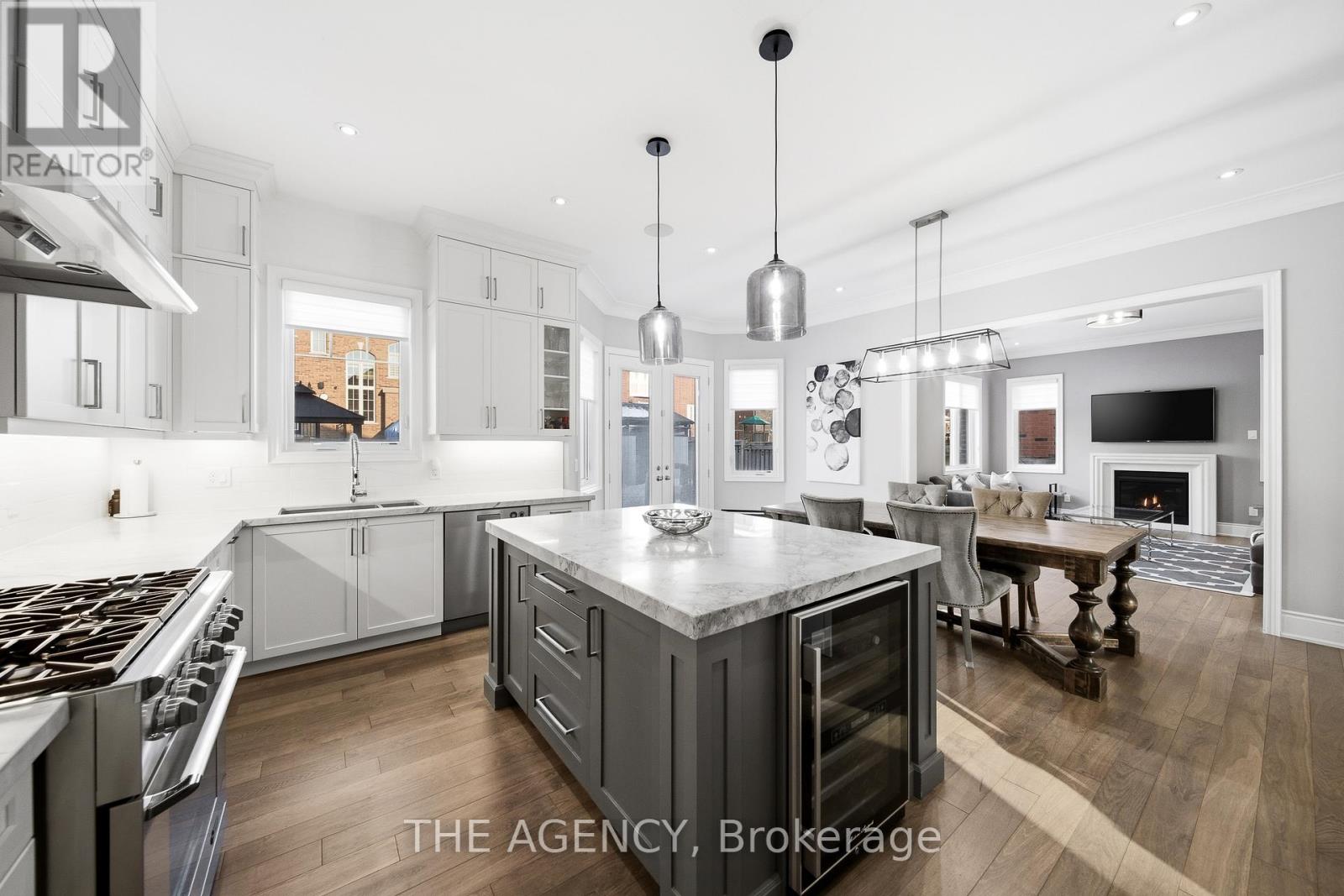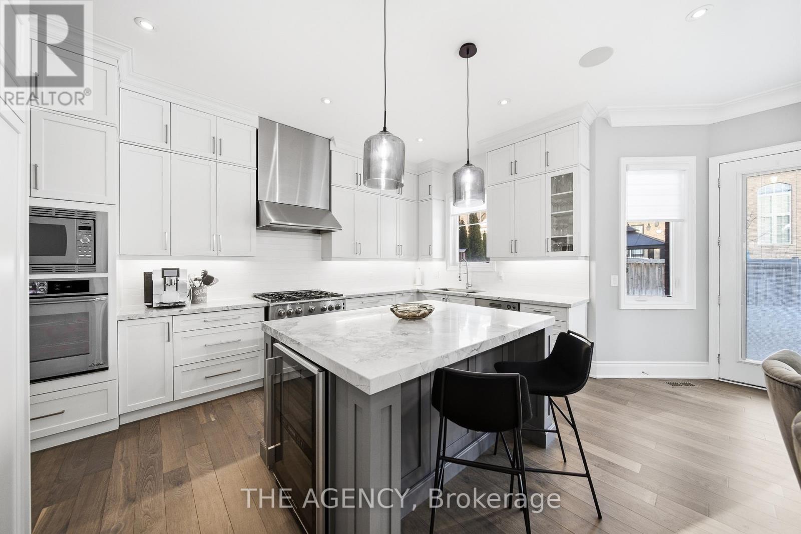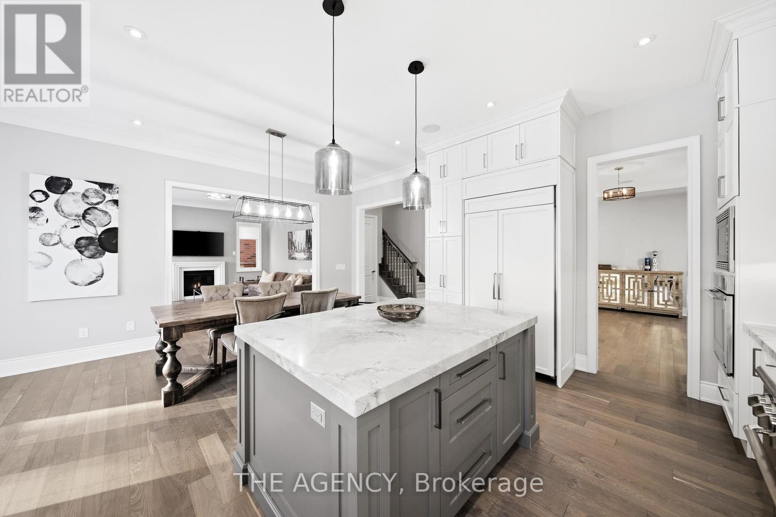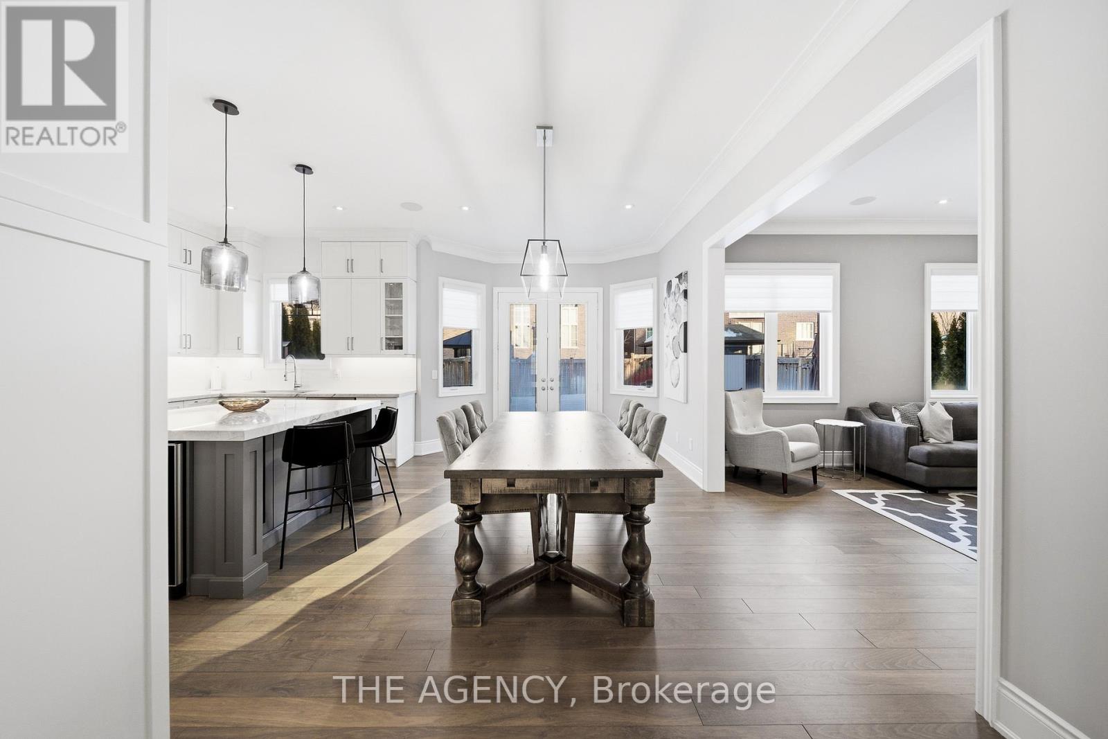 Exquisite Aspen Ridge residence featuring 3300 Sq Ft above grade with a custom-designed interior layout, situated on a quiet family-friendly street with no sidewalk. Showing refined curb appeal, this elegant home offers a bright concept design with soaring 10ft ceilings on the main level and 9ft ceilings on the upper floor. Appointed with vintage hardwood flooring, crown moulding, pot lights, and an integrated ceiling speaker system throughout. The gourmet chef's kitchen is beautifully finished with quartz countertops, high end custom cabinetry, premium built-in appliances, and a grand centre island overlooking the inviting family room with fireplace and sun-filled breakfast area. Spacious 4 bedrooms highlighted by an expansive custom primary suite complete with a massive walk-in closet and a beautifully appointed ensuite with upscale finishes. Enjoy a private landscaped backyard ideal for entertaining. Perfectly located just minutes to Nobleton Public School, St. Mary Catholic Elementary School, parks, and all major highways. This one is a must see! (id:64974)