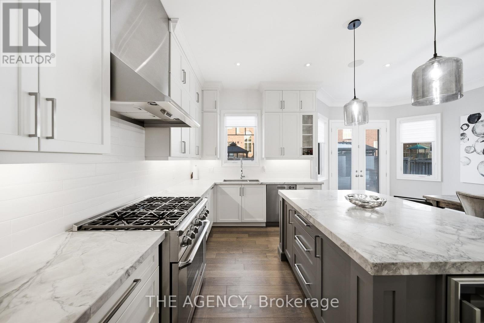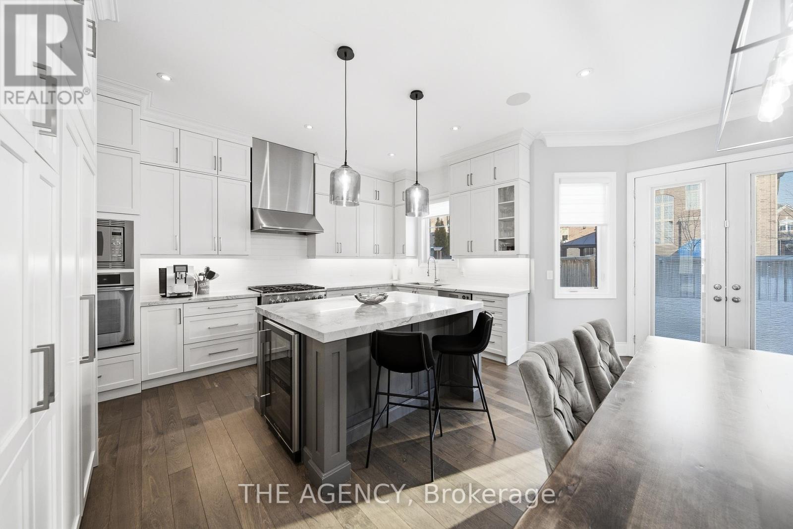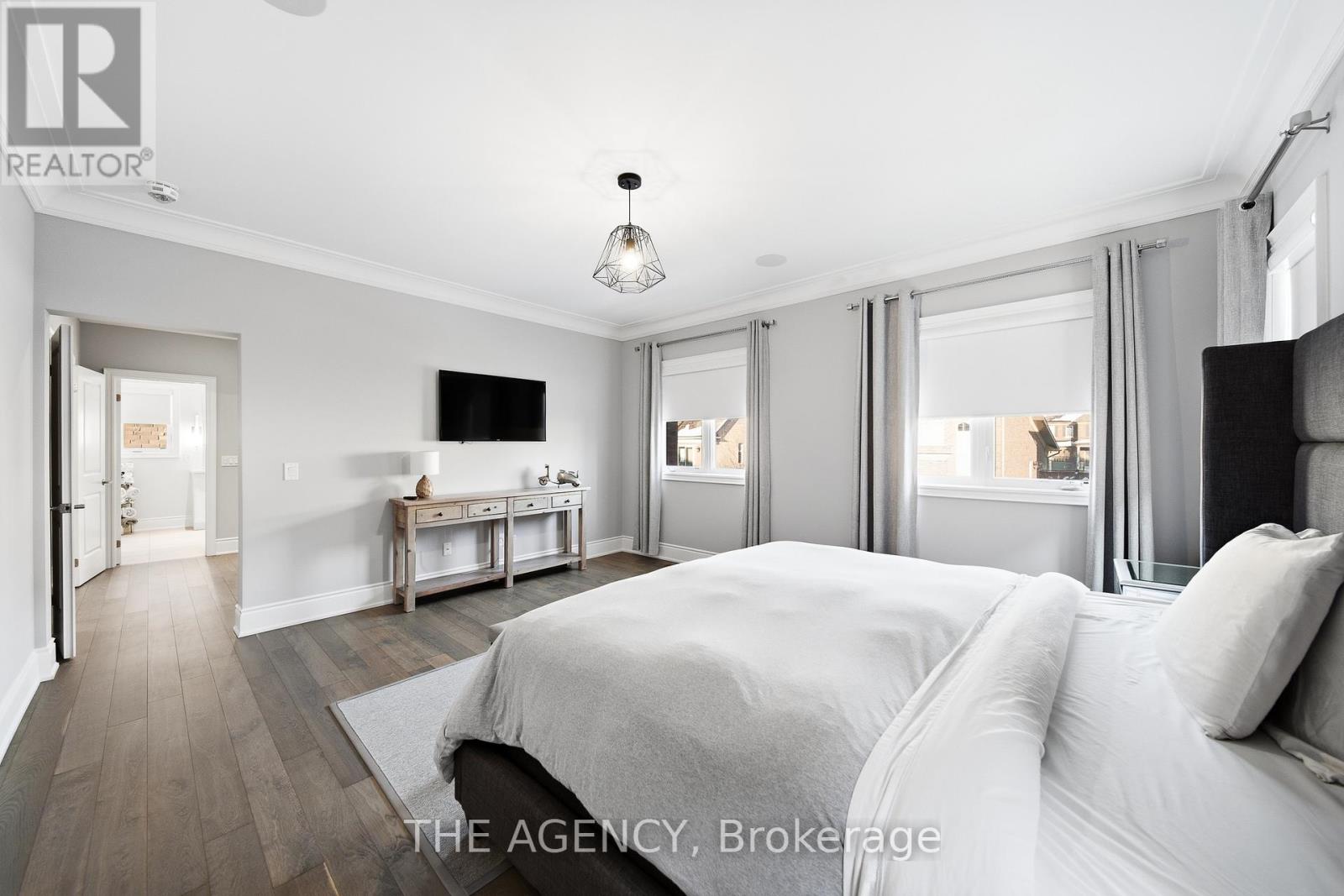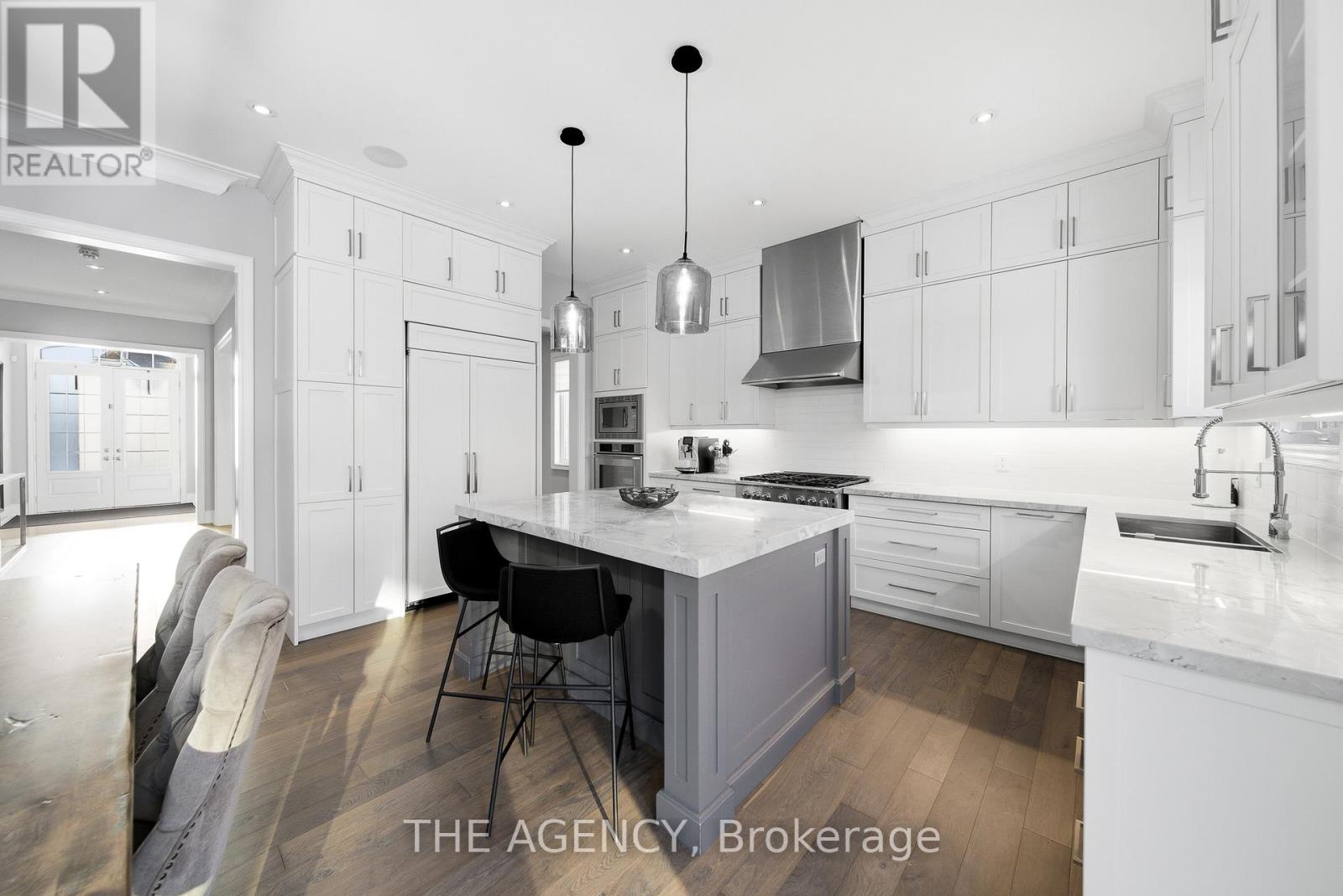 Exquisite Aspen Ridge residence featuring 3300 Sq Ft above grade with a custom-designed interior layout, situated on a quiet family-friendly street with no sidewalk. Showing refined curb appeal, this elegant home offers a bright concept design with soaring 10ft ceilings on the main level and 9ft ceilings on the upper floor. Appointed with vintage hardwood flooring, crown moulding, pot lights, and an integrated ceiling speaker system throughout. The gourmet chef's kitchen is beautifully finished with quartz countertops, high end custom cabinetry, premium built-in appliances, and a grand centre island overlooking the inviting family room with fireplace and sun-filled breakfast area. Spacious 4 bedrooms highlighted by an expansive custom primary suite complete with a massive walk-in closet and a beautifully appointed ensuite with upscale finishes. Enjoy a private landscaped backyard ideal for entertaining. Perfectly located just minutes to Nobleton Public School, St. Mary Catholic Elementary School, parks, and all major highways. This one is a must see! (id:64974)