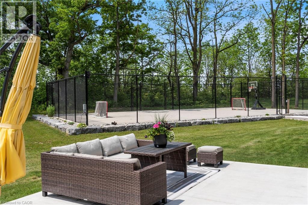 Your dream countryside retreat is here! Just minutes from every convenience, this custom-built modern farmhouse bungalow offers the perfect blend of luxury, comfort, and nature. Perched on nearly 6 private acres with breathtaking panoramic views of the Grand River and direct access to the Grand Valley Trail System, this 2023 masterpiece was designed for multi-generational living, income potential, and pure enjoyment. With over 6,000 sqft of finished living space, you’ll find 7 bedrooms, 6.5 baths, 3 kitchens, and 3 laundry rooms—a true haven for large families, blended households, or savvy investors. The main floor offers two separate living quarters with a total of 4 bedrooms, 4.5 baths, 2 kitchens, and2 laundry rooms, making it an entertainer’s dream and a family’s paradise. Step into the soaring 16' vaulted Great Room, paired with 10' ceilings in the dining area and 9' ceilings in the bedrooms, creating an open and airy feel. The chef’s kitchen boasts a 10' island, walk-in pantry, and custom cabinetry—perfect for hosting gatherings and making memories. Each of the 3 main bedrooms features a walk-in closet and private ensuite, including a tranquil primary retreat with spa-like finishes, direct deck access, and peaceful views. The main floor in-law suite is fully self-contained, offering its own kitchen, living room, spacious bedroom, and 4-piece bath—ideal for guests or family members wanting privacy. The lower level is just as impressive, with a separate entrance to a bright 1-bedroom + den suite (complete with bath, laundry, and kitchen), plus additional bedrooms, a rec space with wet bar, and storage galore. Outside, your private 490' driveway leads to pure bliss—an expansive tiered covered porch with Douglas Fir beams, a fully fenced LED-lit sports court, and a heated 3-car 800sqft garage! This isn’t just a house—it’s a lifestyle. Peaceful, private living with nature at your doorstep, yet only minutes from the shops, schools, and amenities you love. (id:64974)