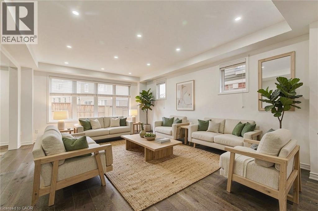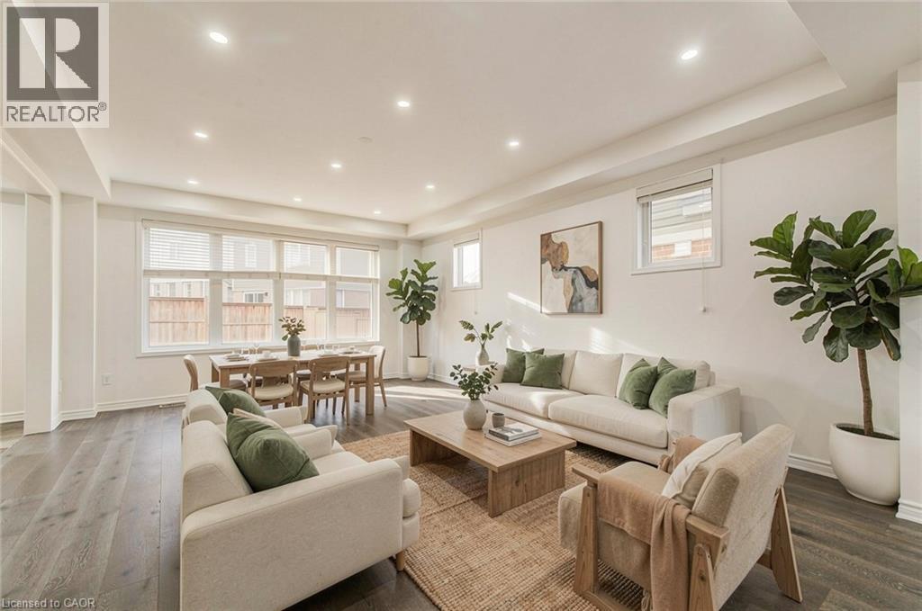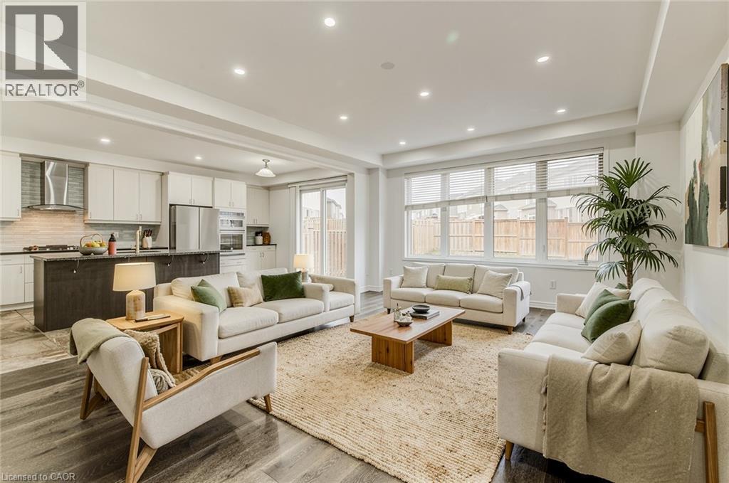 Welcome to 11 Compass Trail, a beautifully upgraded detached home offering exceptional interior finishes and a thoughtfully designed layout for modern living. The bright open-concept main floor features spacious living and dining areas, 9-foot ceilings, hardwood flooring, interior and exterior pot lights, and a convenient 2 piece bathroom. The upgraded chef’s kitchen is complemented by a walk-in pantry, ideal for everyday living and entertaining. Elegant wood stairs with iron railings lead to the second level, where you’ll find four generously sized bedrooms and two well-appointed bathrooms with cultured marble counters. The primary bedroom retreat boasts a luxurious ensuite and multiple walk-in closets. Situated on a premium 36 x 108 ft lot, this home features a fully fenced backyard, double car garage, and parking for four vehicles. Enjoy a rare setting fronting onto protected green space with a flowing river stream, scenic views, nearby pond, nature trails, and parks, all while being ideally located in a prime Cambridge neighborhood close to major amenities and highways. A perfect blend of luxury, nature, and convenience. The home is freshly painted and ready to move in, book your showing today! (id:64974)