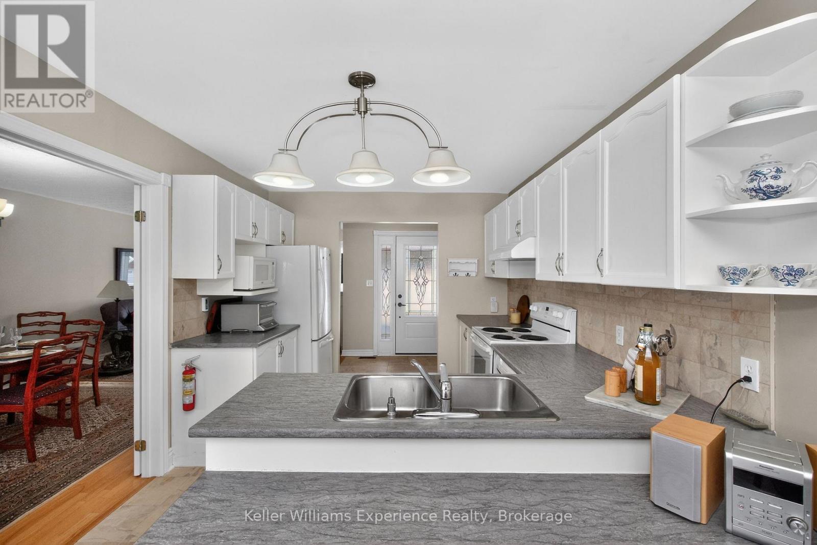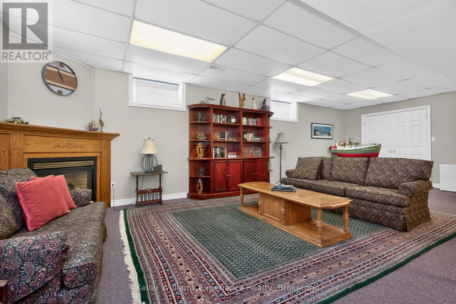 Welcome to this beautifully maintained bungalow in a highly desirable Penetanguishene neighbourhood. This inviting home features three spacious bedrooms on the main level, including a bright primary retreat complete with a walk-in closet and private 3-piece ensuite. Elegant hardwood flooring flows seamlessly through the living room, dining area and bedrooms, creating a warm and cohesive feel throughout the main floor. Year round comfort is provided by efficient gas heating and central air conditioning. The fully finished lower level offers excellent additional living space, featuring a large recreation room with a cozy gas fireplace, a generously sized laundry room, a fourth bedroom plus a den, and a full 4-piece bathroom, ideal for family living or accommodating guests. Step outside through the sliding glass doors to a covered deck overlooking a fully fenced backyard. Thoughtfully landscaped and meticulously maintained, this private outdoor space is perfect for relaxing, entertaining, or enjoying peaceful surroundings. Completing this exceptional package is a two car garage with ample storage, along with outstanding curb appeal highlighted by beautifully tended gardens that reflect true pride of ownership. Ideally located within a short walk to downtown shops, local parks, schools, and Georgian Village, this home offers the perfect blend of convenience, comfort, and charm. (id:64974)