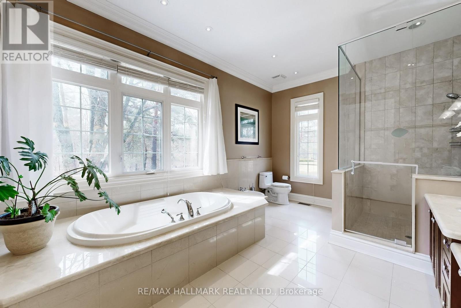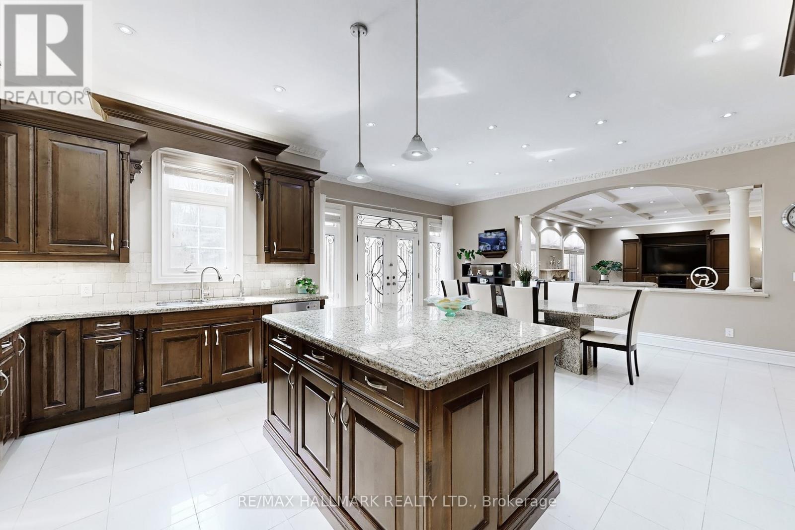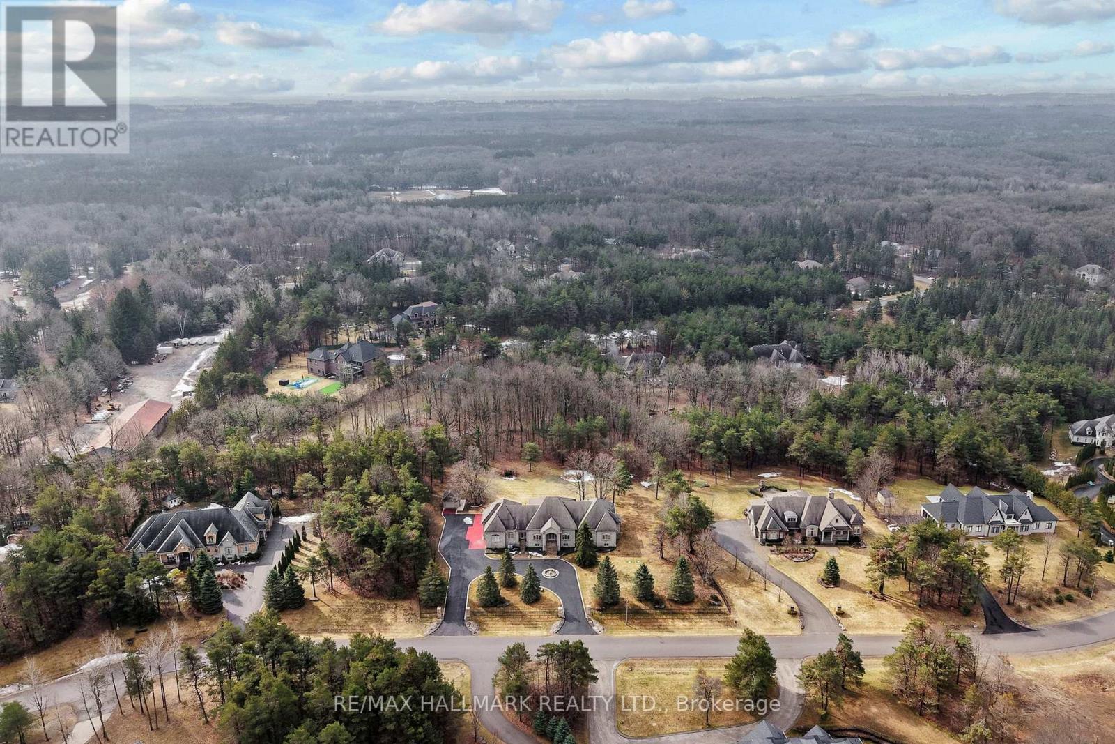 A Rare Custom Built Bungalow Offering Over 8,000 Sqft of Finished Living Space On An Exceptional 1.8 Acre Court Lot With 241 Ft of Frontage!Privately set behind mature evergreens, this impressive home showcases timeless architecture enhanced by extensive granite landscaping, dualdriveway entrances, a circular motor court, and parking for 20+ vehicles, creating a grand and memorable arrival. The striking stone exteriorextends to the garage and is complemented by nature stone finishes at all entry points. Crafted with superior Italian-inspired design, the homefeatures 10ft ceilings, rich Brazilian hardwood flooring, solid wood roof beams, tray and coffered ceilings, custom window detailing, andexquisite millwork throughout. The gourmet chef's kitchen is both functional and refined, offering granite countertops, a large centre island,premium built-in appliances, and a seamless walkout to a covered loggia overlooking beautifully landscaped grounds. A matching granitebreakfast table completes the space with cohesive design. The main level offers generously sized bedrooms, each with walk-in closets,anchored by a luxurious primary retreat featuring double door entry and a spa-inspired 6pc ensuite. The fully finished lower level expands theliving space with above-grade windows, a dramatic floor-to-ceiling fireplace with custom carved surround, built-in media centre, second kitchen,steam shower bath, and a versatile bedroom/office. With 2 separate staircases and complete lower-level living, this home is ideal formultigenerational living. Extensively equipped with 2 furnaces, 2 A/C units, 2 HRV systems, 200 amp service, 22kW Generac generator and sprinkler system.Additional upgrades include: metal front fence, updated windows, regularly sealed stonework, and new LED pot lights throughout. Just minutesto golf, amenities, and scenic forest trails. Don't miss out on this truly rare offering defined by scale, quality, and exceptional attention to detail! (id:64974)