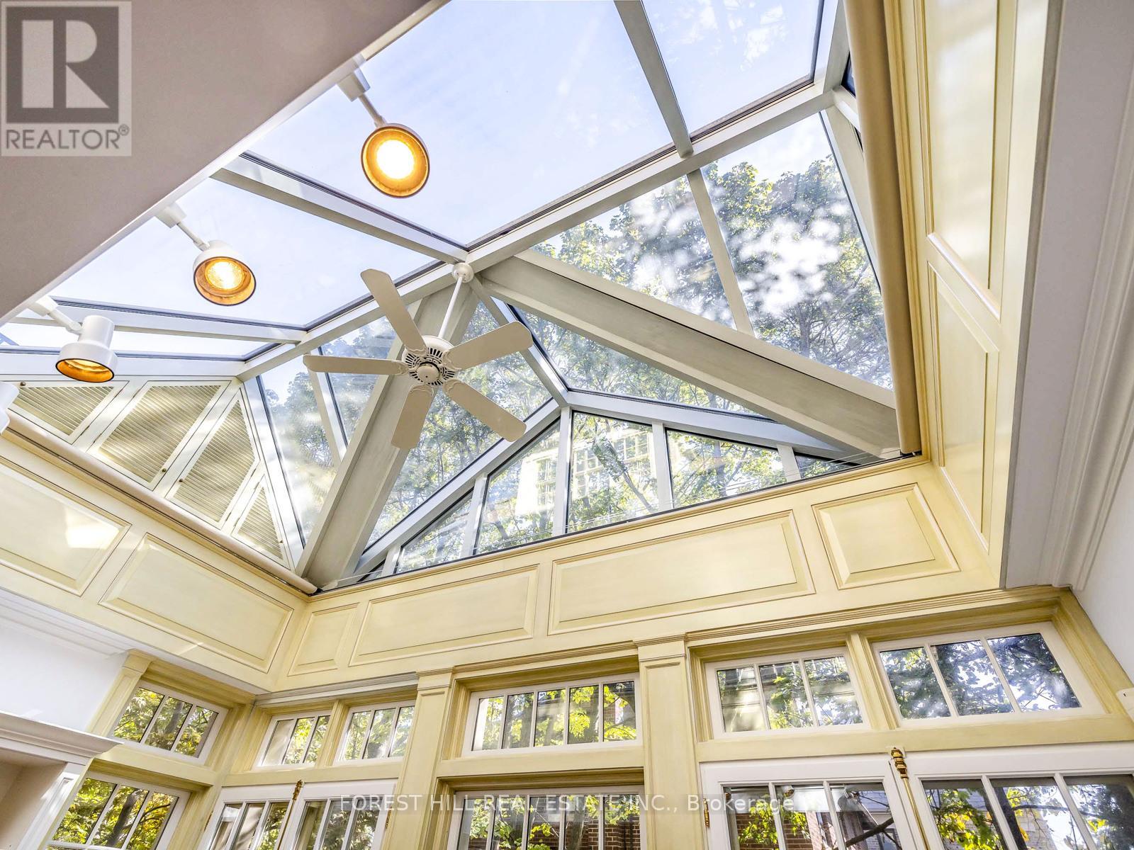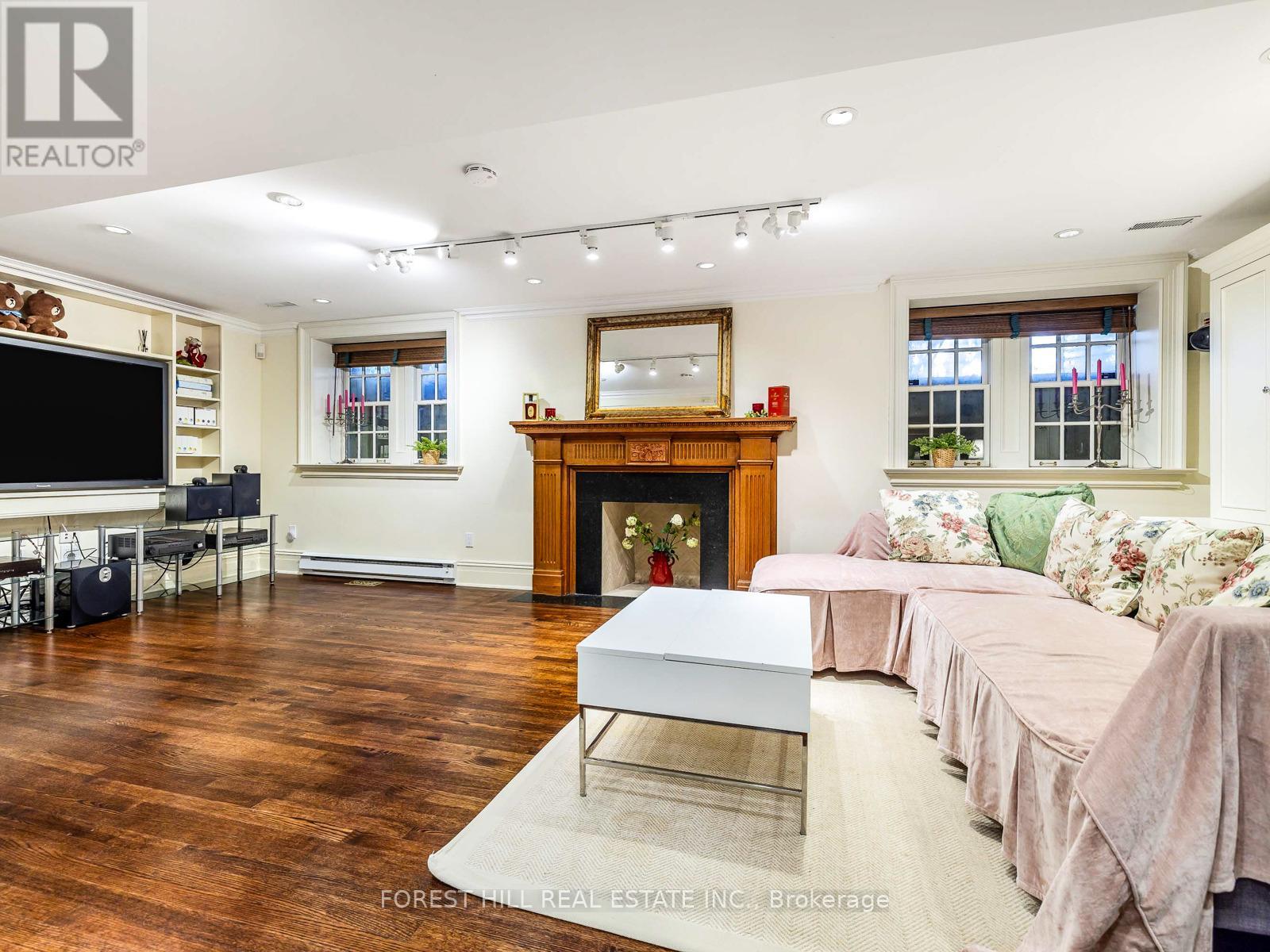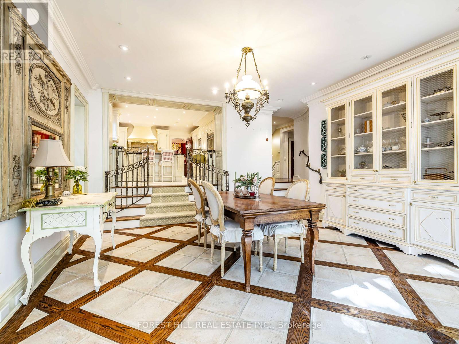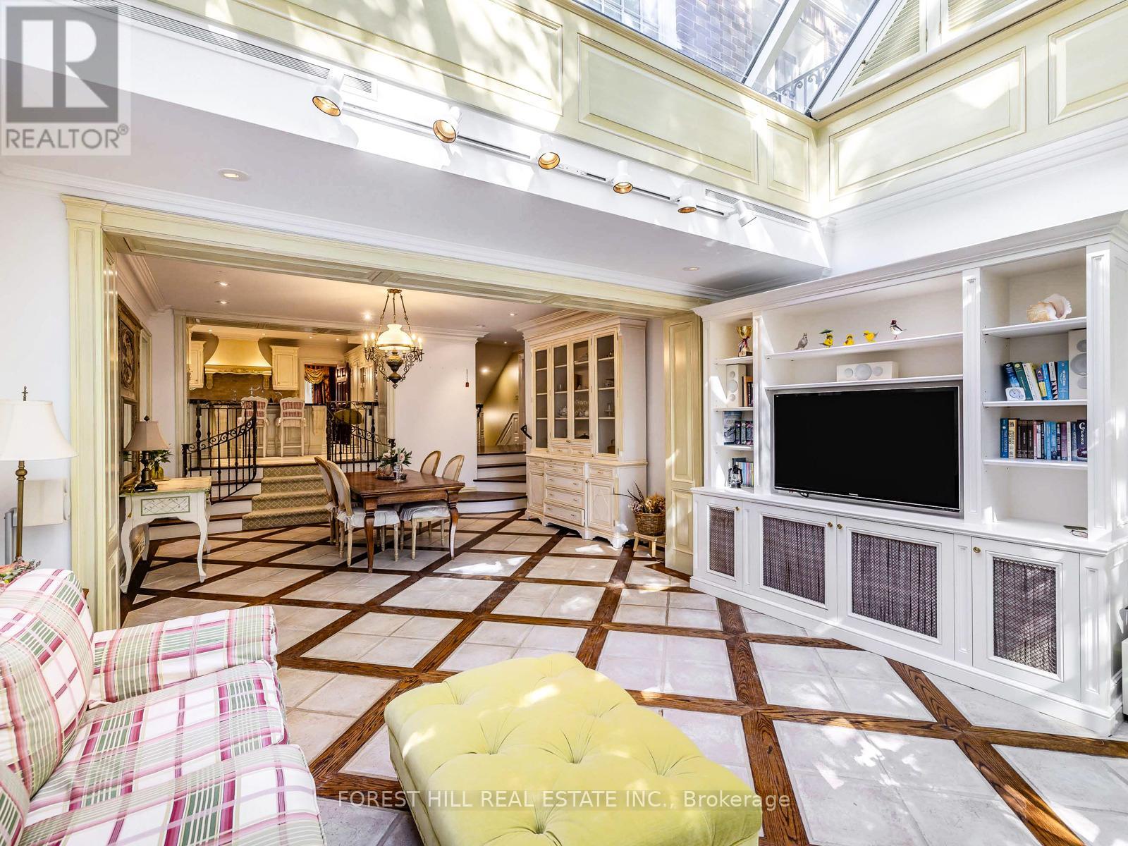 **Captivating residence/exquisite estate--Classic Elegance--This magical home has been meticulously cared for, remodeled/upgraded, and maintained by its owners--Classic/charm centre hall design offers spaces of refined and elegant comfort--5,511 sq.ft (3 storey) + 1,007 sq.ft (basement)---total 6,518 sq.ft of luxurious--where every impeccable detail has been carefully crafted and preserved. The grand principal rooms are designed for both elegance and comfort, a formal dining room and a living room with marble mantle fireplace. The functional gourmet kitchen is equipped with built-in appliances (Sub-Zero/Wolf brand), custom cabinetry & granite countertops. The adjoining family/sun room features a HEATED LIMESTONE floor and 16 ft high glass ceilings, allowing natural sunlight and French doors walkout to south exposure private garden. Upstairs, the hand-carved antique pine paneled library elaborates a story of this home, perfect for versatile use such as 2nd family room and adjoining a mahogany paneled office for a private space. The primary bedroom offers a dressing room, 6 pcs ensuite. The family gym on 2nd floor offers a 18 ft high ceiling with skylights for convenience and comfort. On 3rd floor, the additional all 3 bedrooms provide their own private ensuites, closets, and feature a 3rd furnace and 2nd laundry area. The lower level offers an entertainment room, music and studio room, wine cellar with climate control. Outside, the landscaped lush garden features cheerful trees for privacy and relaxation, and a heated driveway for 5 vehicles, and 2 cars in garage. Surrounded by top ranking private and public schools-UCC/BSS/Havergal College/Forest Hill Junior & Senior PS & Forest Hill CI. A short walk brings you to Forest Hill Village with shops, restaurants & cafes, minutes to sunway station, hwys & more! (id:64974)
