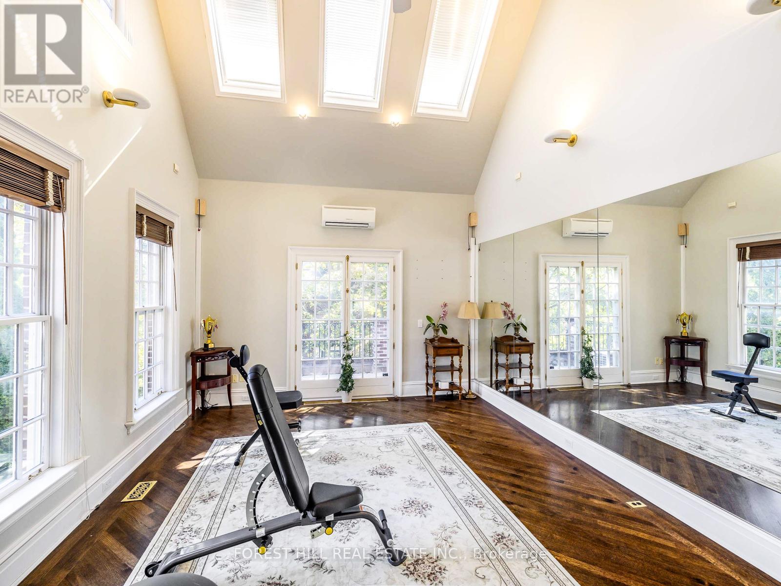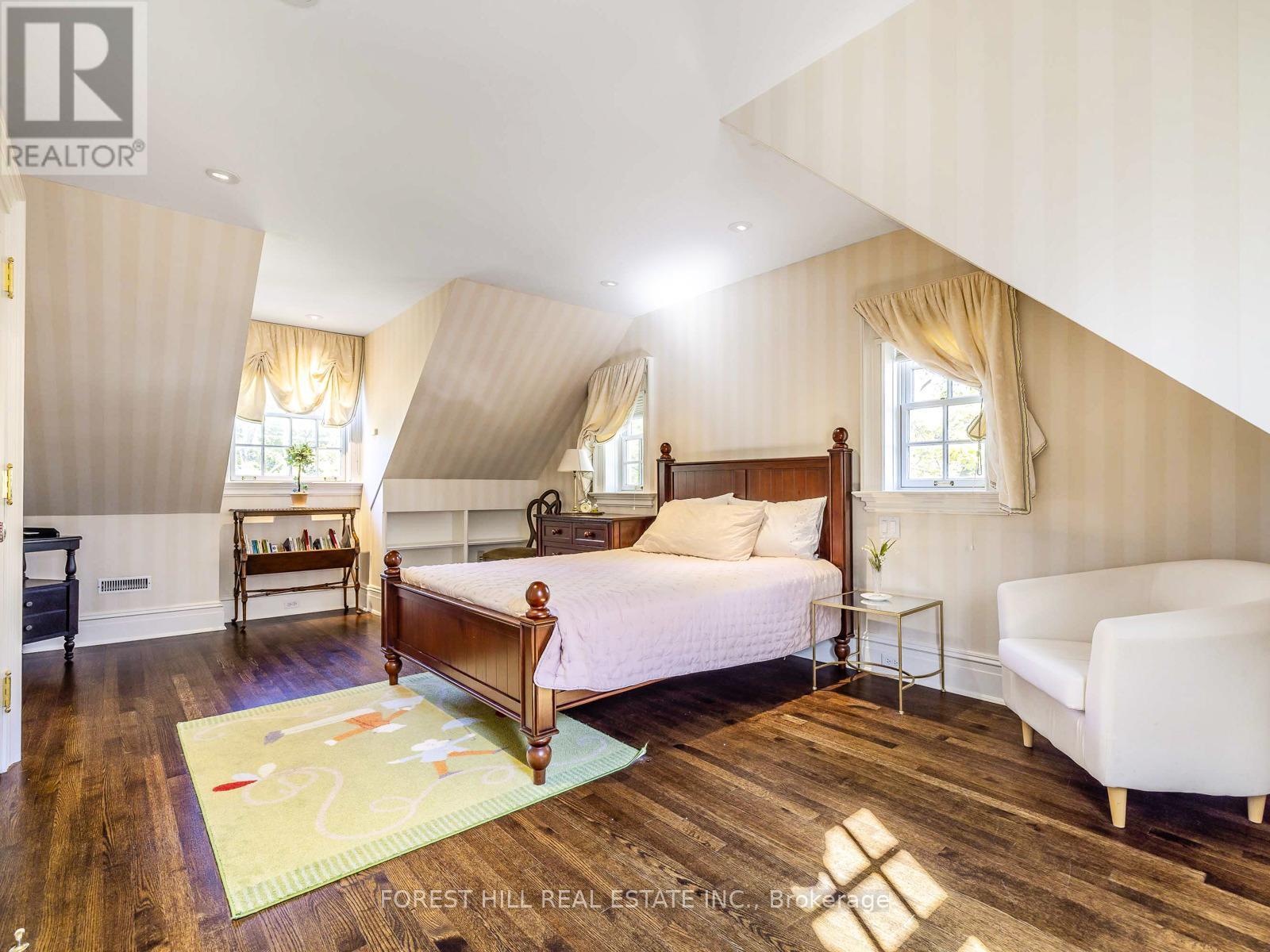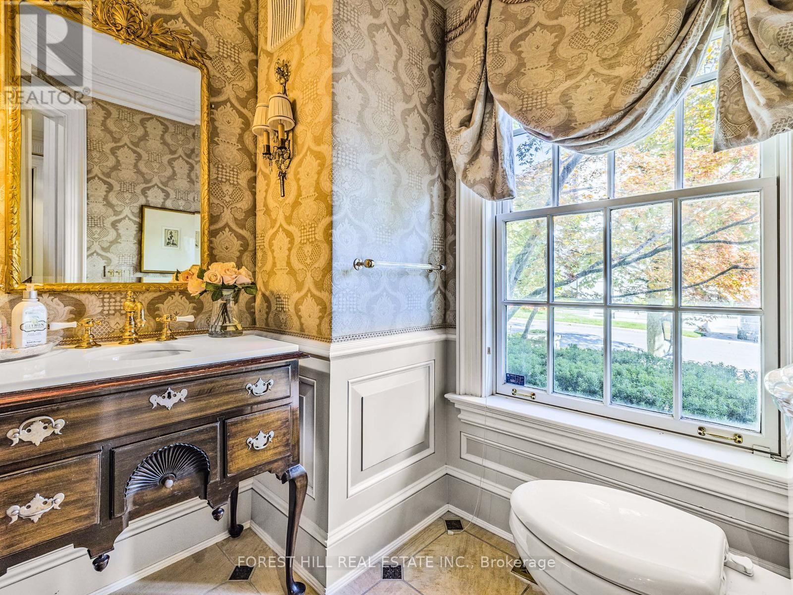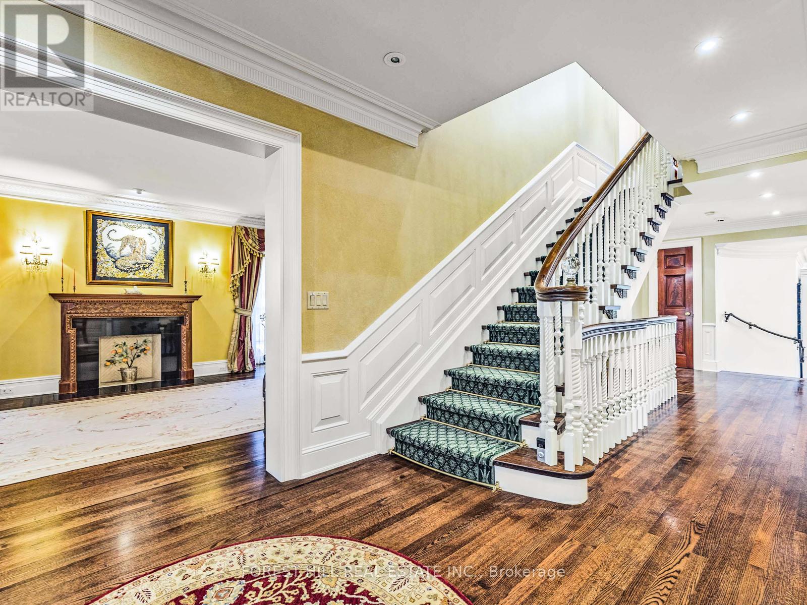 **Captivating residence/exquisite estate--Classic Elegance--This magical home has been meticulously cared for, remodeled/upgraded, and maintained by its owners--Classic/charm centre hall design offers spaces of refined and elegant comfort--5,511 sq.ft (3 storey) + 1,007 sq.ft (basement)---total 6,518 sq.ft of luxurious--where every impeccable detail has been carefully crafted and preserved. The grand principal rooms are designed for both elegance and comfort, a formal dining room and a living room with marble mantle fireplace. The functional gourmet kitchen is equipped with built-in appliances (Sub-Zero/Wolf brand), custom cabinetry & granite countertops. The adjoining family/sun room features a HEATED LIMESTONE floor and 16 ft high glass ceilings, allowing natural sunlight and French doors walkout to south exposure private garden. Upstairs, the hand-carved antique pine paneled library elaborates a story of this home, perfect for versatile use such as 2nd family room and adjoining a mahogany paneled office for a private space. The primary bedroom offers a dressing room, 6 pcs ensuite. The family gym on 2nd floor offers a 18 ft high ceiling with skylights for convenience and comfort. On 3rd floor, the additional all 3 bedrooms provide their own private ensuites, closets, and feature a 3rd furnace and 2nd laundry area. The lower level offers an entertainment room, music and studio room, wine cellar with climate control. Outside, the landscaped lush garden features cheerful trees for privacy and relaxation, and a heated driveway for 5 vehicles, and 2 cars in garage. Surrounded by top ranking private and public schools-UCC/BSS/Havergal College/Forest Hill Junior & Senior PS & Forest Hill CI. A short walk brings you to Forest Hill Village with shops, restaurants & cafes, minutes to sunway station, hwys & more! (id:64974)
