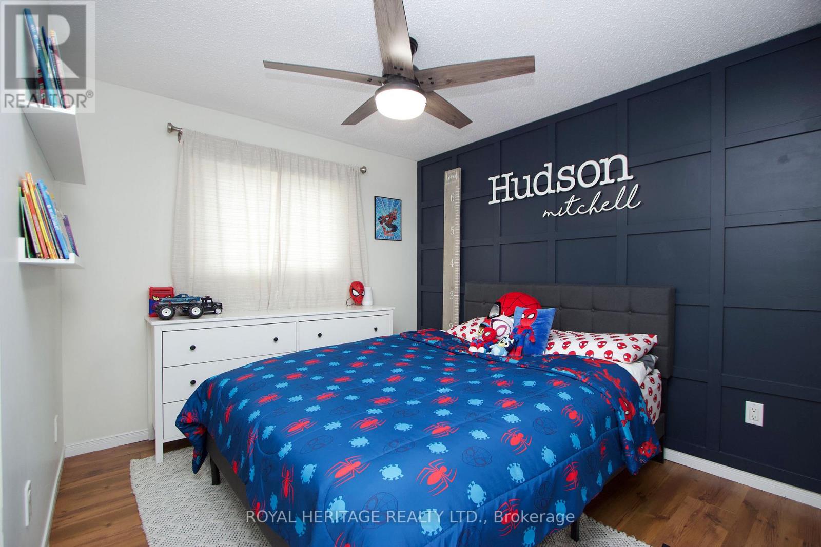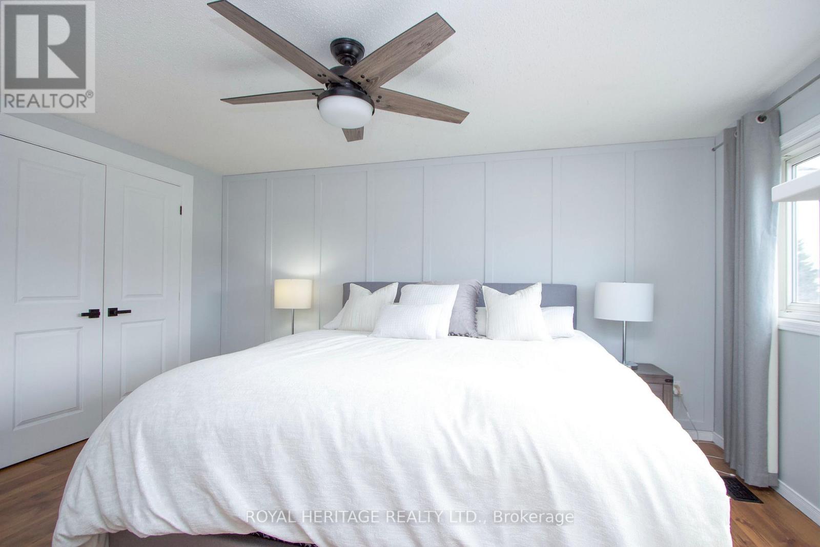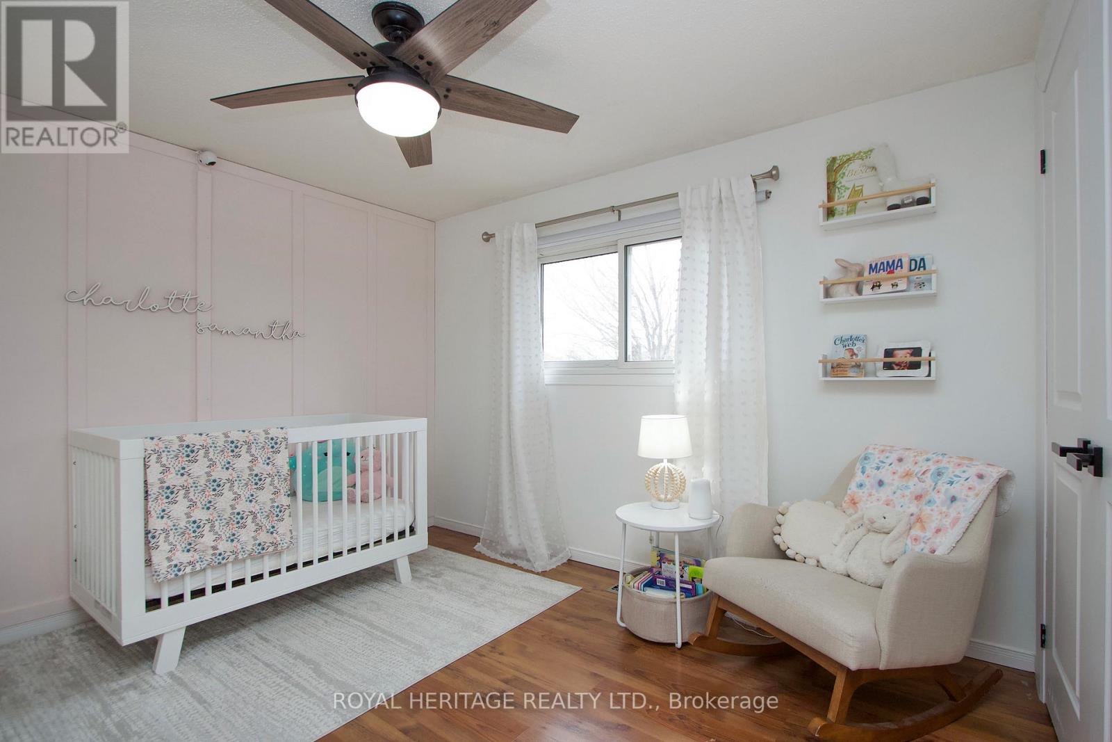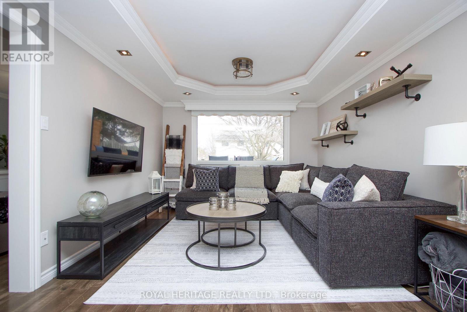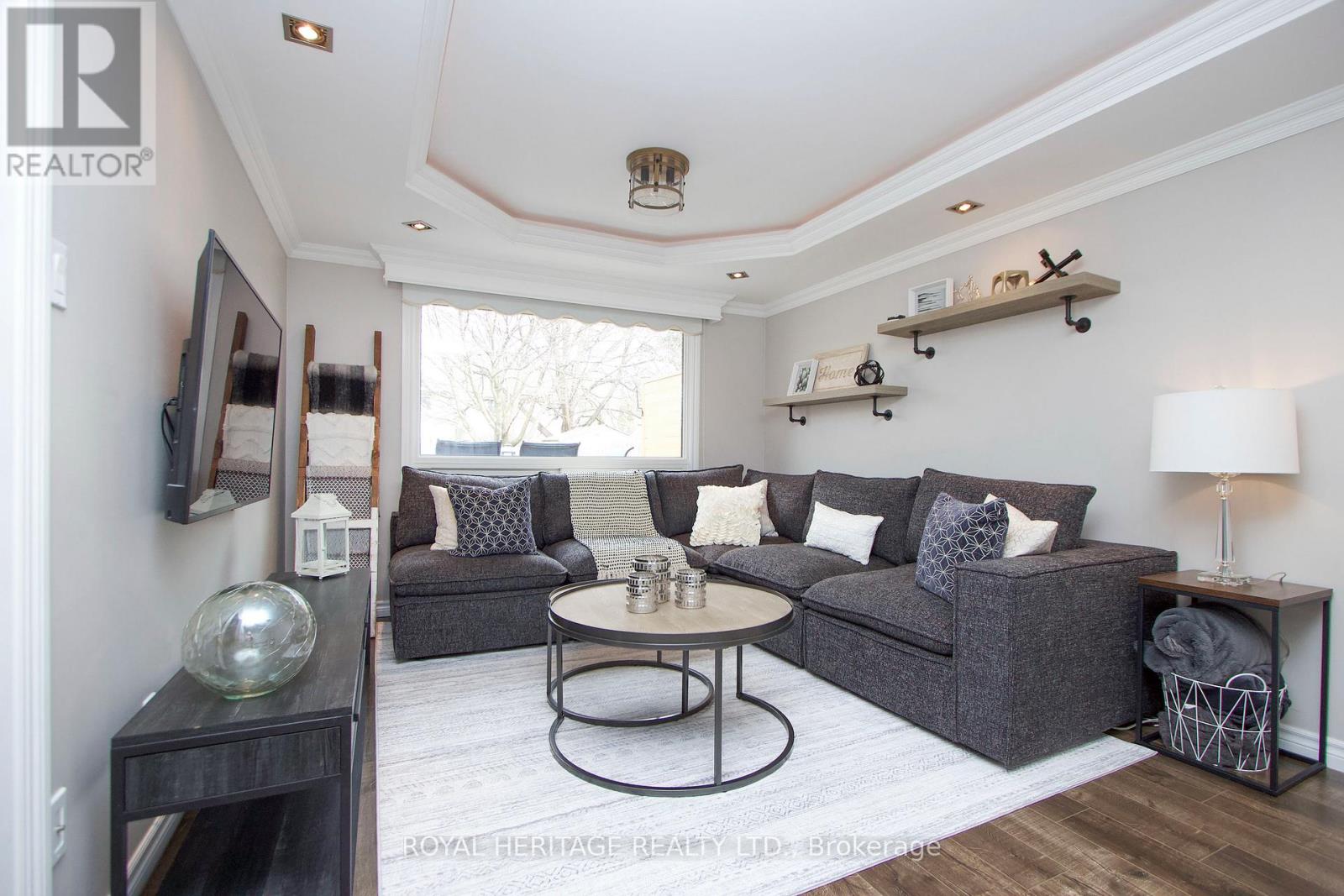 Welcome to this Beautiful, Move-in-ready, Renovated Home in a Family-focused Bowmanville Neighbourhood walking distance to Downtown Bowmanville, Schools, Parks and Amenities. This 3-bed, 3-bath property features many upgrades. An Updated Kitchen (2020) with new cabinets, quartz counters, and ceramic backsplash and newer SS Appliances with laminate flooring throughout the main level. Livingroom/Diningroom has been upgraded with Crown Moulding and Pot Lights. Bathrooms have been Renovated with Clean, Modern Finishes. Newer Carpet on the Stairs to Upper and Lower Level. A finished basement with Pot Lights adds extra living space with a 2PC Powder Room. Newer Sliding doors open to a deep fenced backyard with a new large Deck (2023) and garden shed, perfect for easy outdoor living. With Newer Gas Furnace,Central Air Conditioner and Roof, and Brand New Garage Door Opener, there is nothing to do but Move In! It's a Gem not to be Missed! (id:64974)