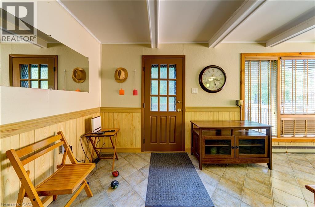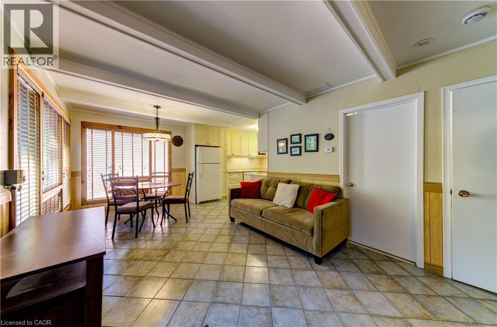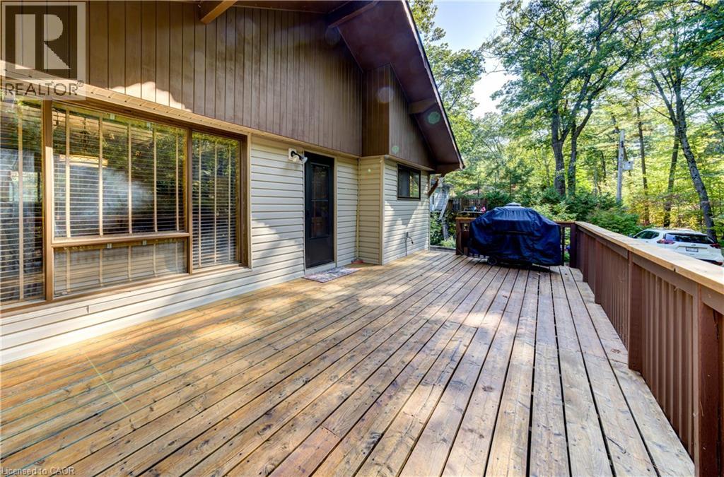 Location Plus! Highly sought after location at private Deanlea Beach, steps away to a pristine sandy beach on Georgian Bay. Well maintained, three bedrooms, four season cottage/home. Main floor kitchen with dishwasher overlooking dining room and living room, walkout to a large deck 12' x 24' with hook up for gas BBQ, two good size utility sheds. Full basement with a large rec-room, laundry room, shower and enclosed walkout to stone patio. Paved driveway with lots of parking for 5 cars. New Roof, new stairs and patio renewed 2024, Septic tank and weeping tile bed 2012, septic riser 2022, drilled well 1999, gas furnace, air conditioner and water heater 2012, electrical panel 2011. Close to shopping, golfing, ski hills, bike trails, snowmobile trails, cross country trails, hiking, and all other amenities. Under a 4 minute walk to a private beach. Deanlea beach residents annual dues approximately $75.00 annually. (id:64974)