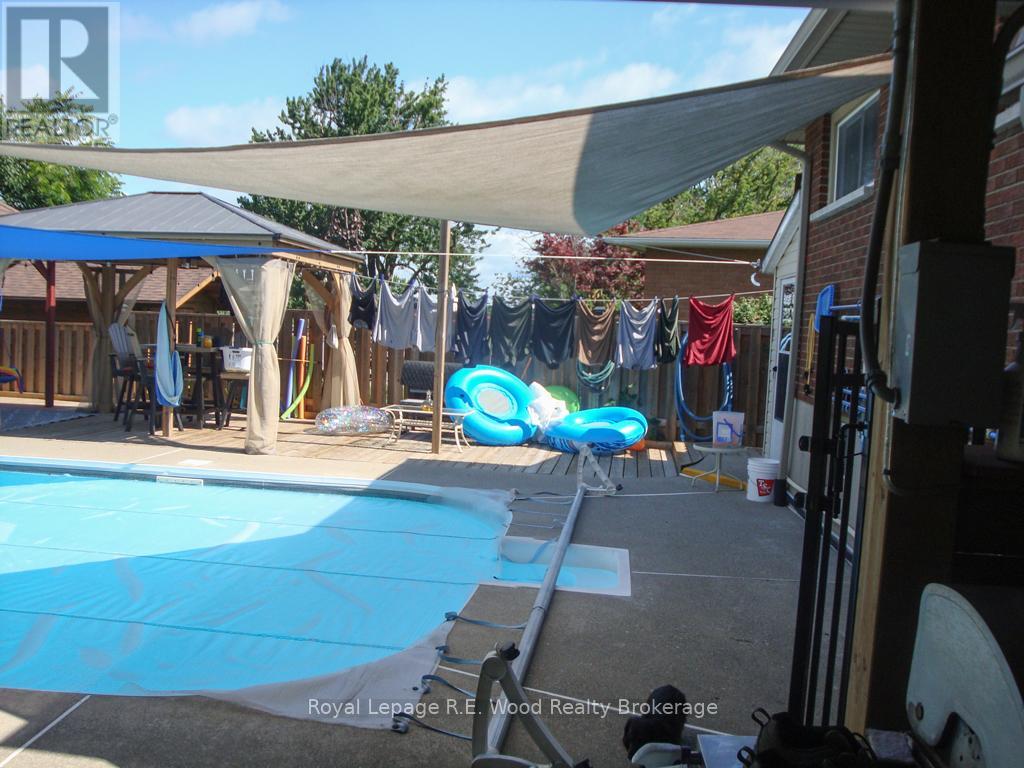 Rare beauty on secluded and quiet Glenwood Road! This impeccably maintained 1,400 sq. ft. finished home is set on an oversized, nearly -acre pie-shaped lot - beautifully landscaped, exceptionally private, and designed for luxury living inside and out. The backyard is a true showpiece and entertainer's paradise. Enjoy a 32' x 16' inground pool (8' depth) with heater and pump house, new pool liner (2022), 5-person hot tub under covered area, 16' x 10' covered stamped concrete deck, and a 16' x 8' cabana with change room. Wrought iron security fencing (2022), natural gas BBQ hookup, stone firepit with sitting area, veggie garden, and 10' x 10' shed/barn complete this incredible outdoor retreat - offering resort-style enjoyment right at home.Inside, a professional main floor renovation (2016 - $45,000) delivers timeless quality and thoughtful design. Welcoming entry with built-in wardrobe/bench, rich hardwood floors, crown molding, quality doors and windows, and a stunning kitchen featuring built-in hutch/pantry, butcher block island, granite countertops, and ceramic backsplash. Additional highlights include barn door detail, 6 appliances, cozy fireplace, oak hardwood upper floors, and a beautifully updated upstairs bathroom (2024) with stand-alone soaker tub and walk-in glass shower. Major updates provide peace of mind: attic insulation (2018), furnace (2020), pool liner (2022), fencing (2022), concrete impression driveway, walk-up to garage, and epoxy garage floors.Move-in ready and meticulously upgraded, this is a rare opportunity to own a private lifestyle property offering exceptional indoor comfort and unforgettable outdoor living. Don't miss out on this great home! (id:64974)
