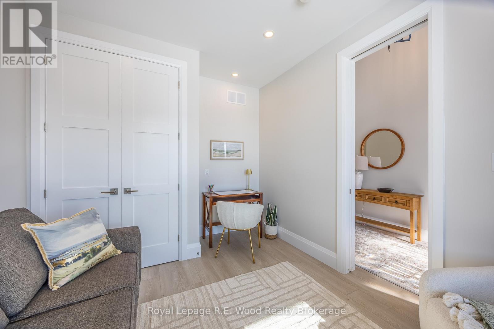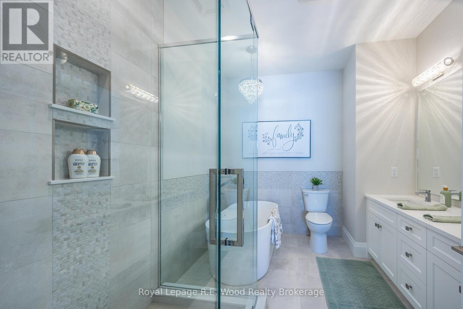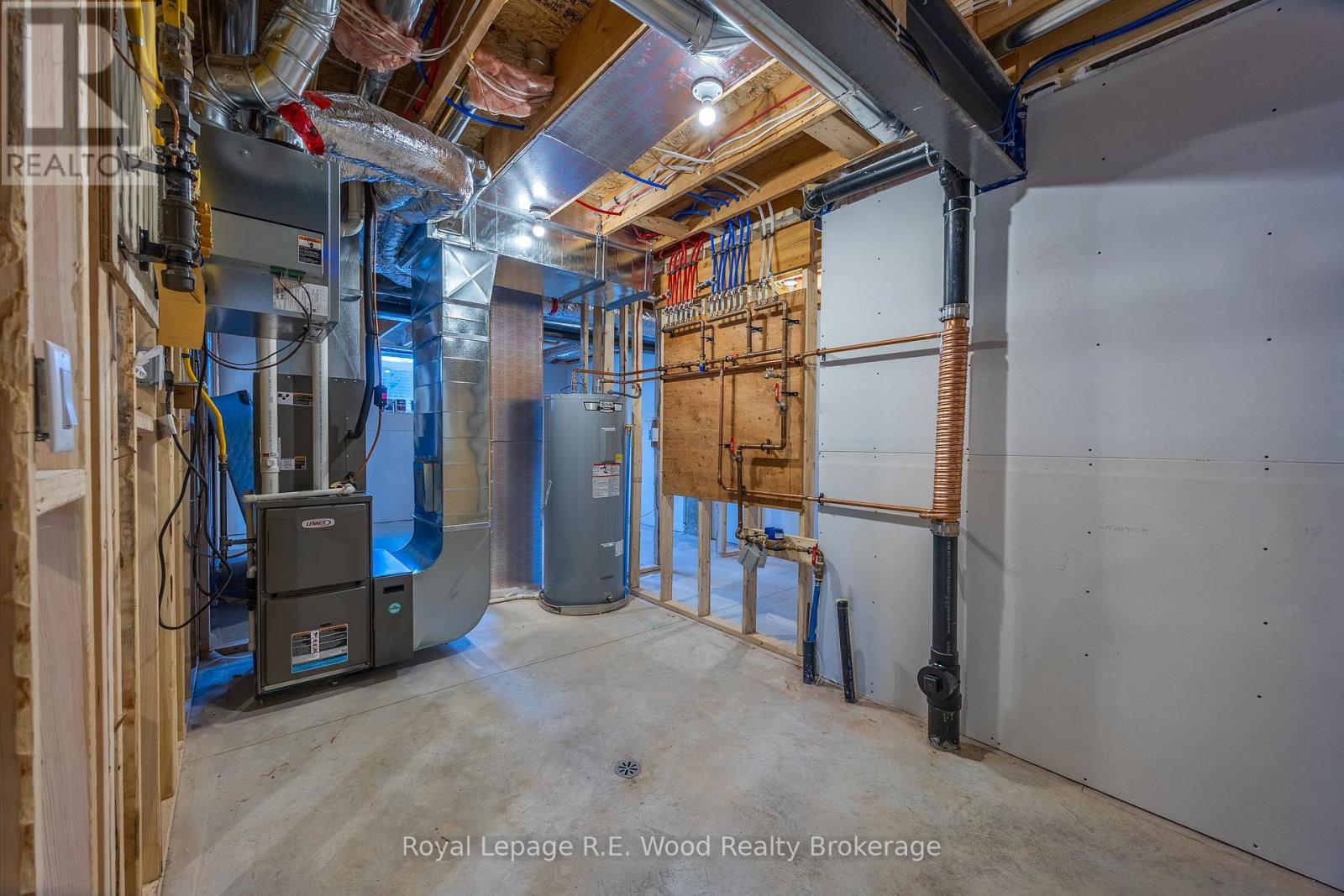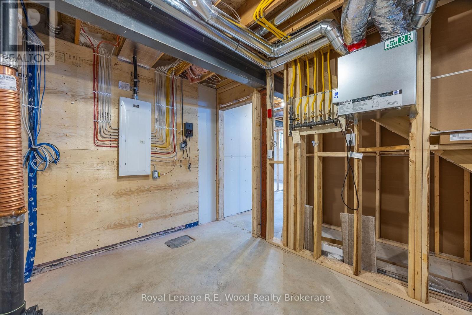 Welcome to The Bridges Estates at the Bridges Golf Course, Tillsonburg's premier new development by TDI New Homes, where modern craftsmanship meets timeless elegance in this stunning new construction freehold middle unit townhome. Entering this over 2000 sq. ft. home, a grand two-storey foyer welcomes you into a flexible den/bedroom/office, perfectly suited for today's evolving lifestyles. The open-concept kitchen, dining, and living area is ideal for entertaining, highlighted by vaulted ceilings, a striking stacked-stone fireplace with warm wood accents, and solid-surface countertops throughout. The main-floor primary suite is a private retreat, featuring a walk-in closet, freestanding tub, and tiled glass-door shower. Everyday convenience is enhanced by a mudroom/laundry with direct garage access, while the bright, spacious unfinished basement offers endless potential for future living space. Outside, the modern Craftsman exterior showcases neutral stone and rich wood finishes. A large covered deck with post-and-beam construction creates the perfect outdoor escape. Complete with a true two-car garage, this home seamlessly blends luxury, comfort, and practicality in an unbeatable location. ***Note pictures are of 15 Greenhill Drive but are representative of the unit*** (id:64974)