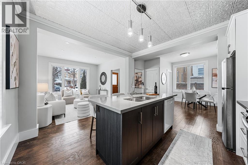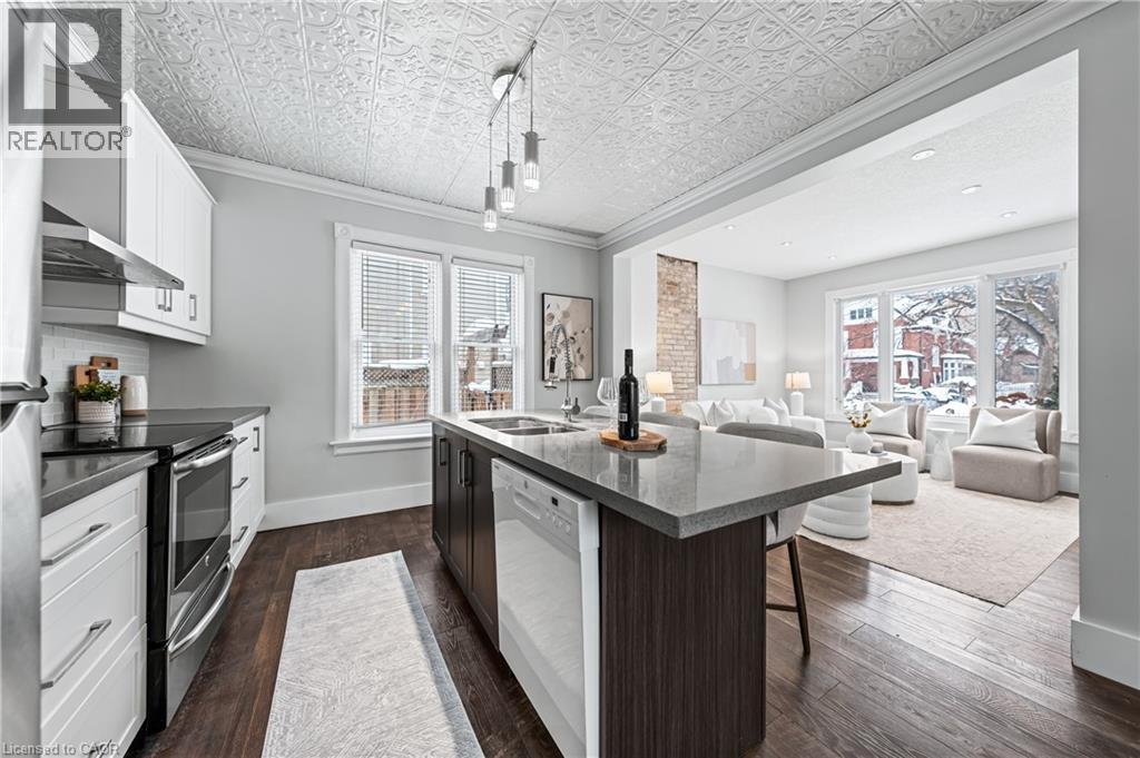 A rare opportunity in Kitchener’s historic Victoria Park neighbourhood-this beautifully restored century home has been fully updated from top to bottom while preserving the charm and character the area is known for. Located in the heart of the Innovation District, this home offers modern finishes, thoughtful design, and an exceptional walkable lifestyle. The open-concept main floor features 9-foot ceilings, laminate flooring throughout, and a bright living room highlighted by an exposed brick feature wall. The updated eat-in kitchen offers quartz countertops, a large centre island, stainless steel appliances, tile backsplash, and a spacious integrated dining area, making it ideal for both everyday living and entertaining. A convenient 2-piece powder room completes the main level. The upper level includes a versatile media nook or home office area, two spacious bedrooms, and a spa-like 4-piece bathroom with a separate soaking tub, tiled glass shower enclosure, and rain shower fixture. The primary bedroom features dual closets, including a walk-in with custom built-ins and a sliding barn door. Outside, the fully fenced backyard offers a large deck and shed, providing functional outdoor space. Additional highlights include 2 parking spaces and SGA-1 zoning, offering added flexibility for future use. Unbeatable location-minutes to the Victoria Park ION LRT Station and Downtown Kitchener. Walk to Victoria Park, Google, The Tannery, University of Waterloo Health Sciences Campus, School of Pharmacy, D2L, Deloitte, restaurants, cafés, shopping, and transit. Close to Grand River Hospital, St. Mary’s Hospital, and the Kitchener GO Station, with easy access to festivals, cultural events, and everything Downtown Kitchener has to offer. A rare blend of historic charm and modern living in one of Kitchener’s most sought-after neighbourhoods. An excellent opportunity to live-in or invest-perfect for owner-occupiers/those seeking a well-located property in the Innovation District. (id:64974)