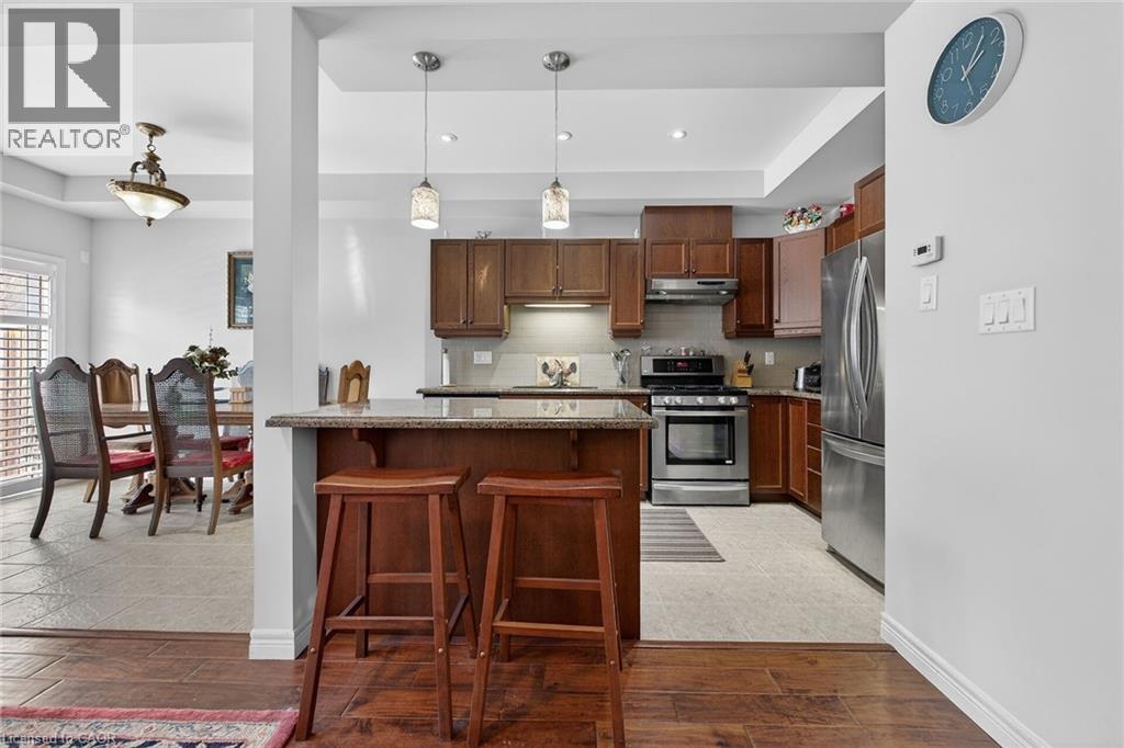 Welcome to this beautifully maintained 3 bedroom, 2.5 bath freehold townhome in the heart of Binrook, offering the perfect blend of Style, comfort, and convenience. Featuring 9-foot ceilings and engineered hardwood flooring throughout the main level, this home delivers an elegant open-concept layout ideal for modern living. The spacious Kitchen and dining area are accented with ceramic flooring,creating a seamless space for everyday life and entertaining. Upstairs, you'll find three generously sized bedrooms, including a bright and inviting primary retreat complete, with its own ensuite bath. Thoughtfully designed with both function and flow in mind. Step outside to your impressive 300 sqft. concrete patio, offering ample room for outdoor dining, summer barbecues, or relaxing evenings. Located just minutes from schools, parks, sharing, and everyday amenities, this home offers unbeatable convenience. This is a wonderful opportunity to own a stylish, move-in-ready hone is one of Binbrooks most sought-after communities! (id:64974)