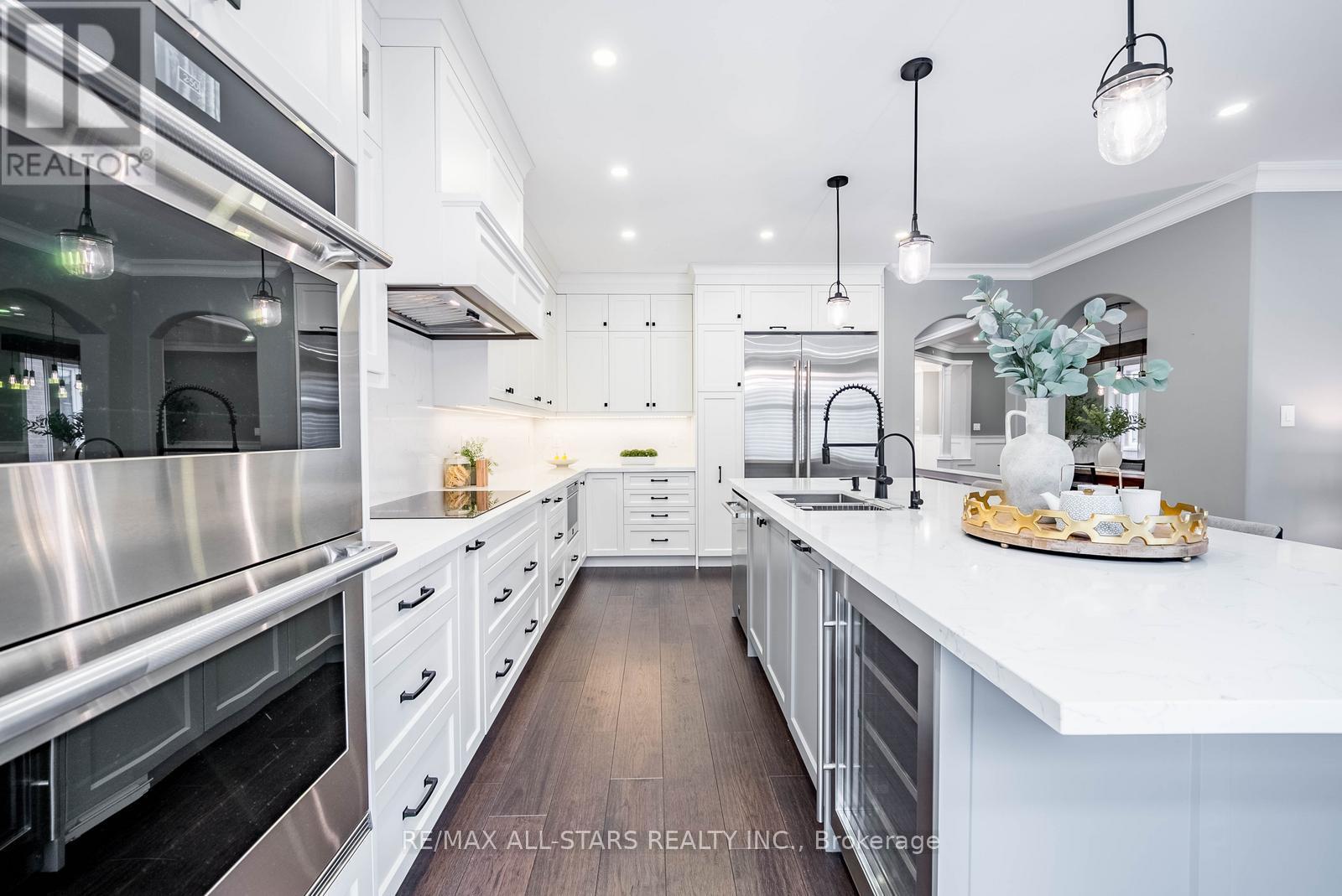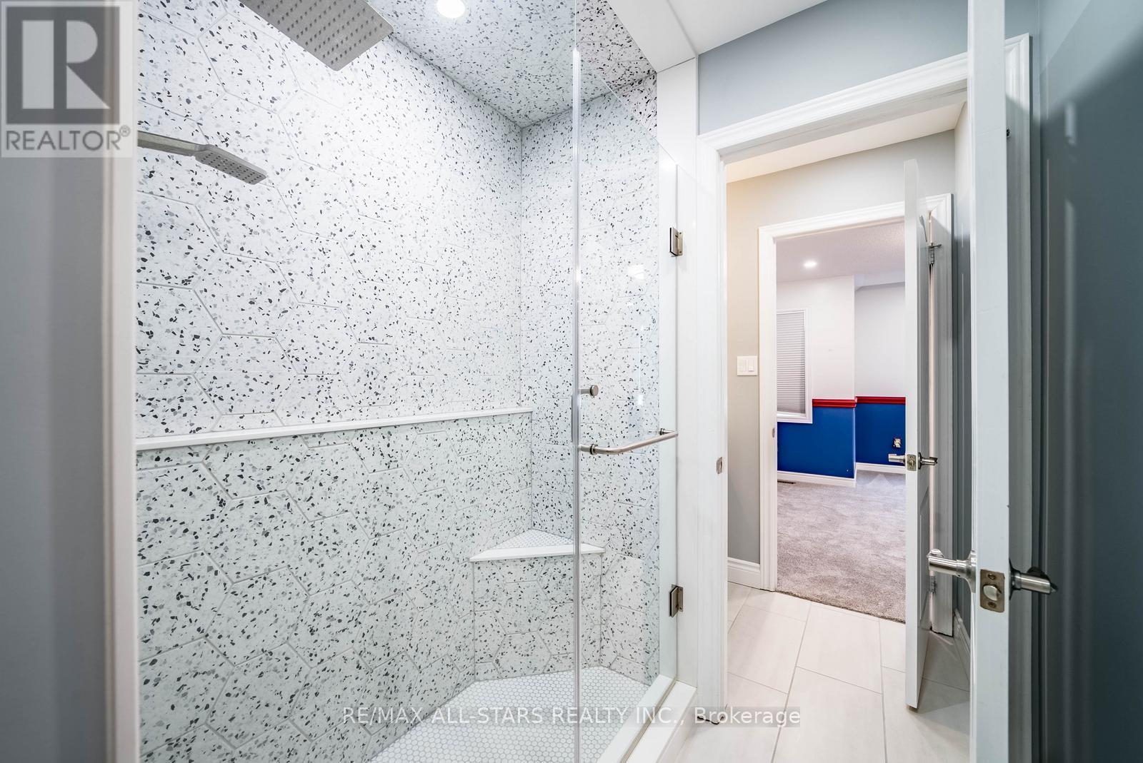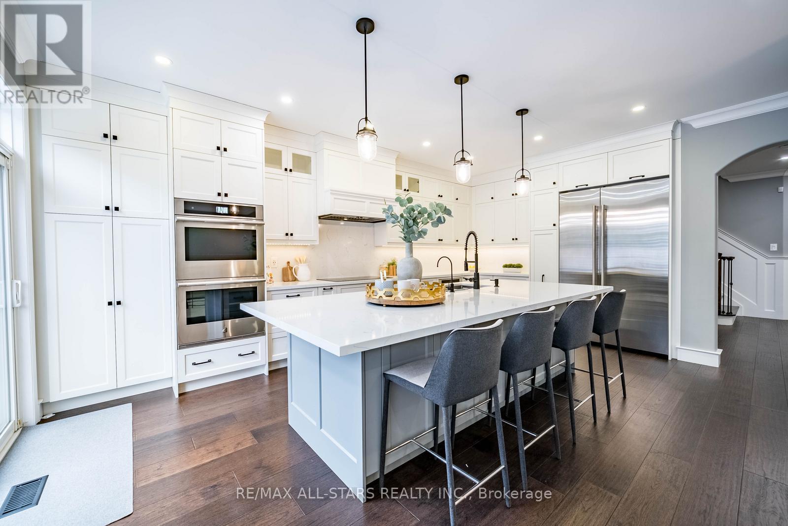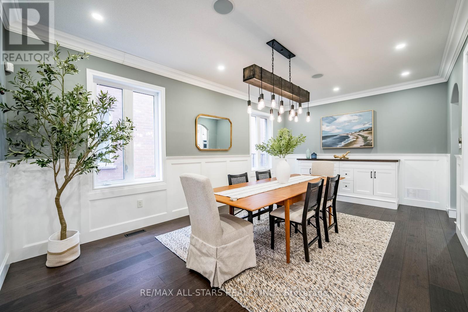 Move-in ready and beautifully renovated, this exceptional four-bedroom detached home offers stylish upgrades and a functional layout designed for modern family living. The welcoming foyer features custom wainscotting with a built-in bench, shelves, and hooks, along with a convenient powder room. Just off the entry, the formal dining room showcases large windows, high ceilings, and a custom built-in cabinet, creating a bright and versatile space for entertaining or relaxing. At the heart of the home is the stunning kitchen, renovated in 2023 and equipped with high-end JennAir appliances, quartz countertops, and a custom backsplash, seamlessly flowing into the inviting living area. The main floor also features a convenient laundry area with direct access to the garage. Upstairs, the spacious primary suite offers a vaulted ceiling, walk-in closet, and a beautifully renovated spa-inspired ensuite with a soaker tub, glass shower, heated floors, and a heated towel rack. Three additional bedrooms share an updated four-piece bathroom, and brand-new carpeting adds warmth throughout the level.The fully finished basement provides incredible flexibility with two additional bedrooms and a large open space ideal for a media room, playroom, gym, or extended living area, along with ample storage and a cantina.Set on a beautifully maintained property and ideally located close to shopping, grocery stores, major highways, and excellent schools including Barbara Reid Public School, Stouffville District Secondary School, St. Brigid, and St. Katharine Drexel, this home offers comfort, style, and convenience in one exceptional package. Main Floor Reno(2023), Primary Ensuite, Jack and Jill (2023), Upstairs Carpet(2022) Roof(2021), Backyard Landscaping(2022), Front Yard Landscaping (2021). (id:64974)