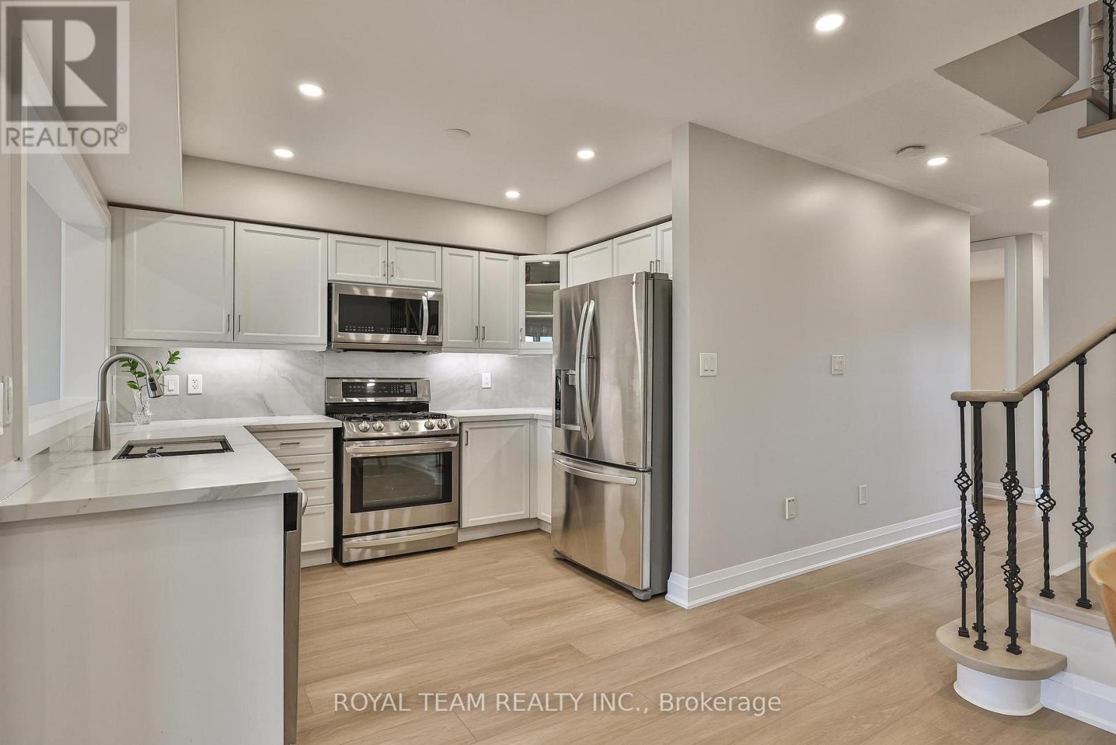 Introducing this beautifully upgraded freehold townhome offering nearly 2,000 sq ft of living space with no condo fees, rarely offered in this prime pocket! This sun-filled home has been extensively renovated throughout and is truly move-in ready. Featuring brand new flooring across the home, a fully redone staircase, a modern upgraded kitchen, and tastefully renovated bathroom, every detail has been thoughtfully updated. Fresh paint, updated lighting, new outlets, switches, and trim further enhance the clean, contemporary feel. The functional, open-concept layout is filled with natural light from large windows and offers no wasted space. The walk-out basement provides convenient interior access from the garage-no need to step outside in bad weather. Situated on a quiet premium court with minimal traffic, this home is just steps to Vaughan Mills Shopping Centre and Canada's Wonderland, and offers easy access to public transit with a direct bus to the TTC subway and GO station. Minutes to Highway 400 and the Vaughan Hospital, with excellent schools, parks, and everyday amenities nearby-perfect for families. A true turnkey property with top-to-bottom upgrades-this is a must see! (id:64974)