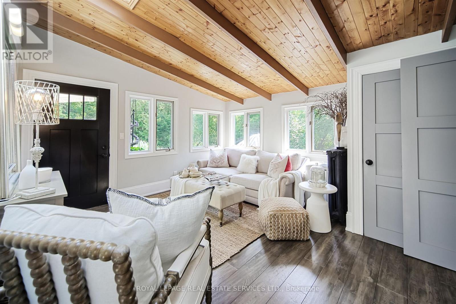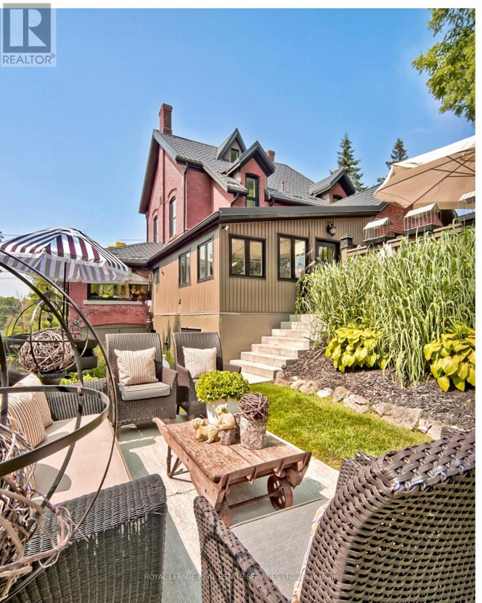Renovated MIXED-USE Gem on Main St. Campbellville! Circa 1880 building blends timeless historic charm with thoughtful modern updates, offer mixed-use zoning in the heart of picturesque Campbellville -directly across from a Conservation Area. All four levels above grade, providing an abundance of natural light and layout flexibility. Currently separate residential units ideal for multi-gen living, the property also offers excellent potential for professional offices, live-work setups or other permitted commercial uses. Street Level: Features a dedicated entrance off Main Street, with two large rooms and large street facing windows, direct access to storage garage, 3-piece bath plus easy access to the main floor. Main Floor: Showcases 10' ceilings, 8' doorways, windows on all sides, rich hardwood flooring. A renovated chefs kitchen with quartz counters, full-height cabinetry, Wolf gas stove, side-by-side fridge/freezer, stainless steel dishwasher and lg pantry. A vaulted-ceiling family room opens to a private terrace and backyard. Also includes a bright living room, gas fireplace, large dining room, two bedrooms, a stylish 4-piece bath and a laundry room with quartz counters. Second Floor: With separate entrance, features original pine floors, full kitchen, living room, spacious bedroom and large closet. Plus Loft: Open-concept with tin-clad dormer ceilings, pine floors, privacy door, and stunning north/south views.Mature landscaping, private terraces, pergola, fire pit, workshop, and garage/storage space. Private driveway fits 2+ vehicles.A rare opportunity for investors, professionals, or multi-generational families to own a versatile property in a vibrant community. Campbellville is a haven for outdoor enthusiasts with easy access to Hilton Falls, Kelso, and top cycling routes including Limehouse Loop and Escarpment View.Zoning allows for a variety of residential and commercial uses verify with the Town of Milton for permitted options. (id:64974)