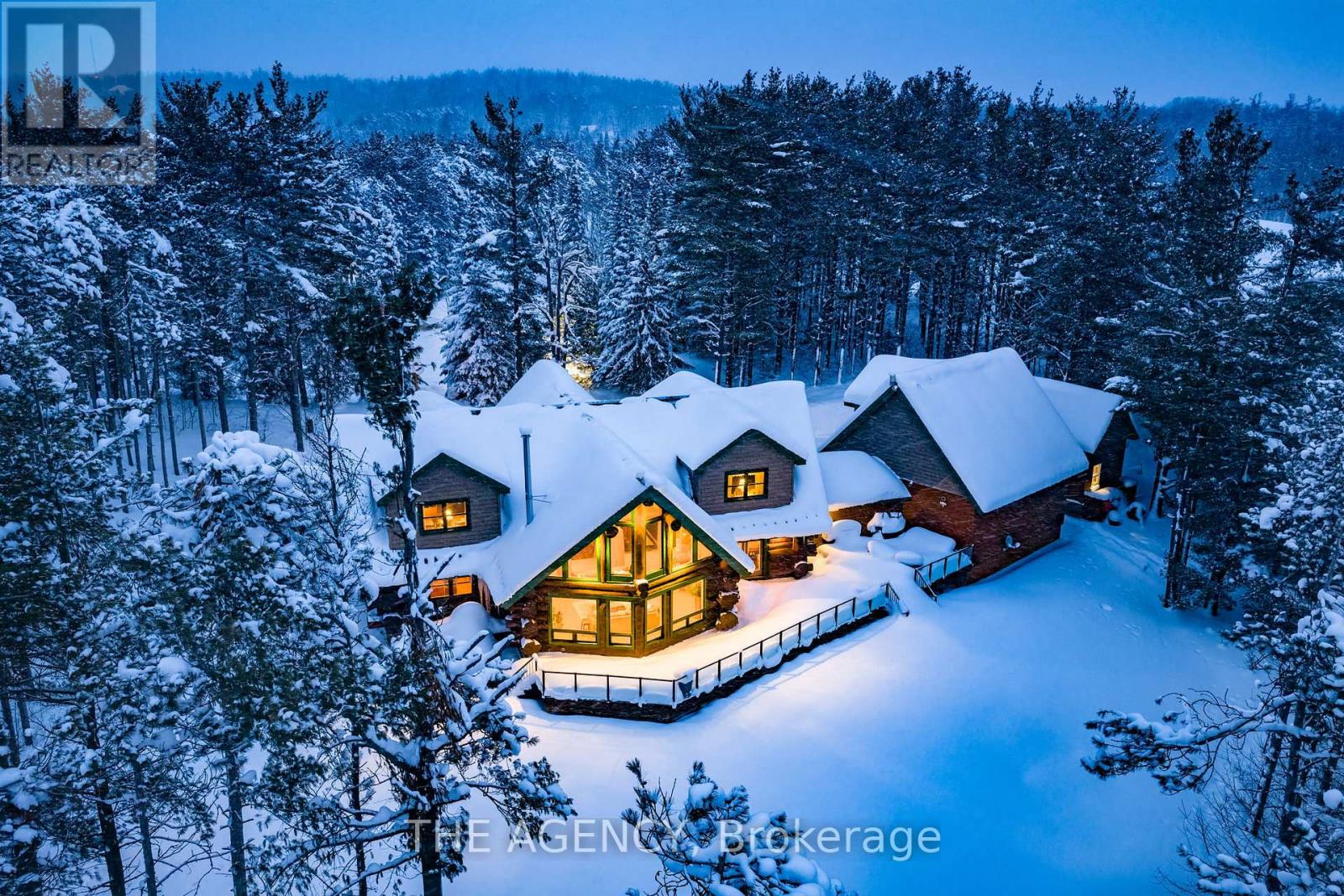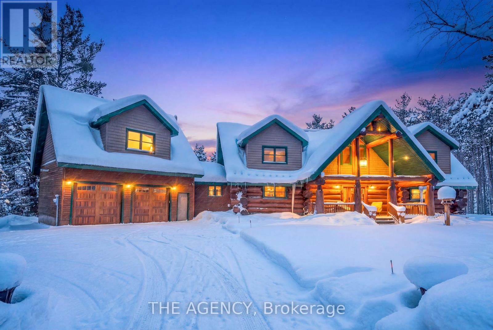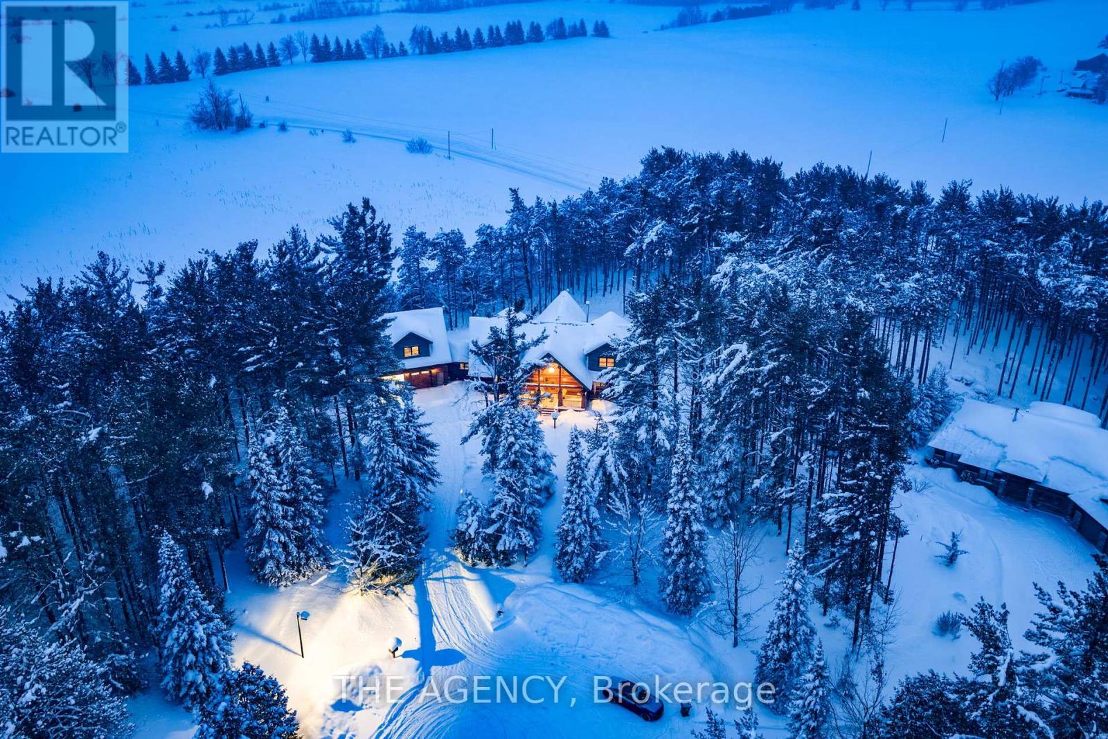 Set apart by timeless craftsmanship and natural beauty, this one-of-a-kind custom-built log home is privately situated at the end of a quiet cul-de-sac on 2.1 acres of mature, tree-lined grounds. This exceptionally unique residence boasts nearly 6,000 SF of refined living space that blends rustic elegance with modern comfort. Designed for both grand entertaining and everyday living, the home features 6 bedrooms and 4.5 bathrooms, complemented by an energy-efficient geothermal system and the low-maintenance beauty of hand-peeled Western Red Cedar. The stunning great room showcases soaring vaulted ceilings and a dramatic stone fireplace. This space flows seamlessly into a chef-inspired kitchen with granite countertops, stainless steel appliances, alongside a welcoming dining area ideal for intimate meals or large gatherings. The main-level primary suite features a private retreat complete with a walk-in closet and spa-like ensuite. Additional highlights include an upper-level den with scenic treetop views, beautifully appointed ensuite bedrooms for family and guests, and a radiant-heated lower level perfect for year-round entertaining or relaxation. An attached heated garage with smart openers is enhanced further by an impressive 650 SF loft making it ideal for a home office, studio, creative space or additional storage. Embrace the sights and sounds of the outdoors on the new 1,100 SF deck which spans the entire rear side of the home. The well-appointed grounds showcase professionally landscaped armour stone walkways and gardens as well as a detached 3rd garage. Delivering the perfect balance of privacy and convenience, this year-round retreat is located just a short drive from Barrie and only one hour from Toronto. With easy access to nearby lakes, trails, Horseshoe Valley Ski Resort, Vetta Spa, and other seasonal recreation destinations, this extraordinary property delivers an unparalleled lifestyle of comfort, beauty, and tranquility. (id:64974)