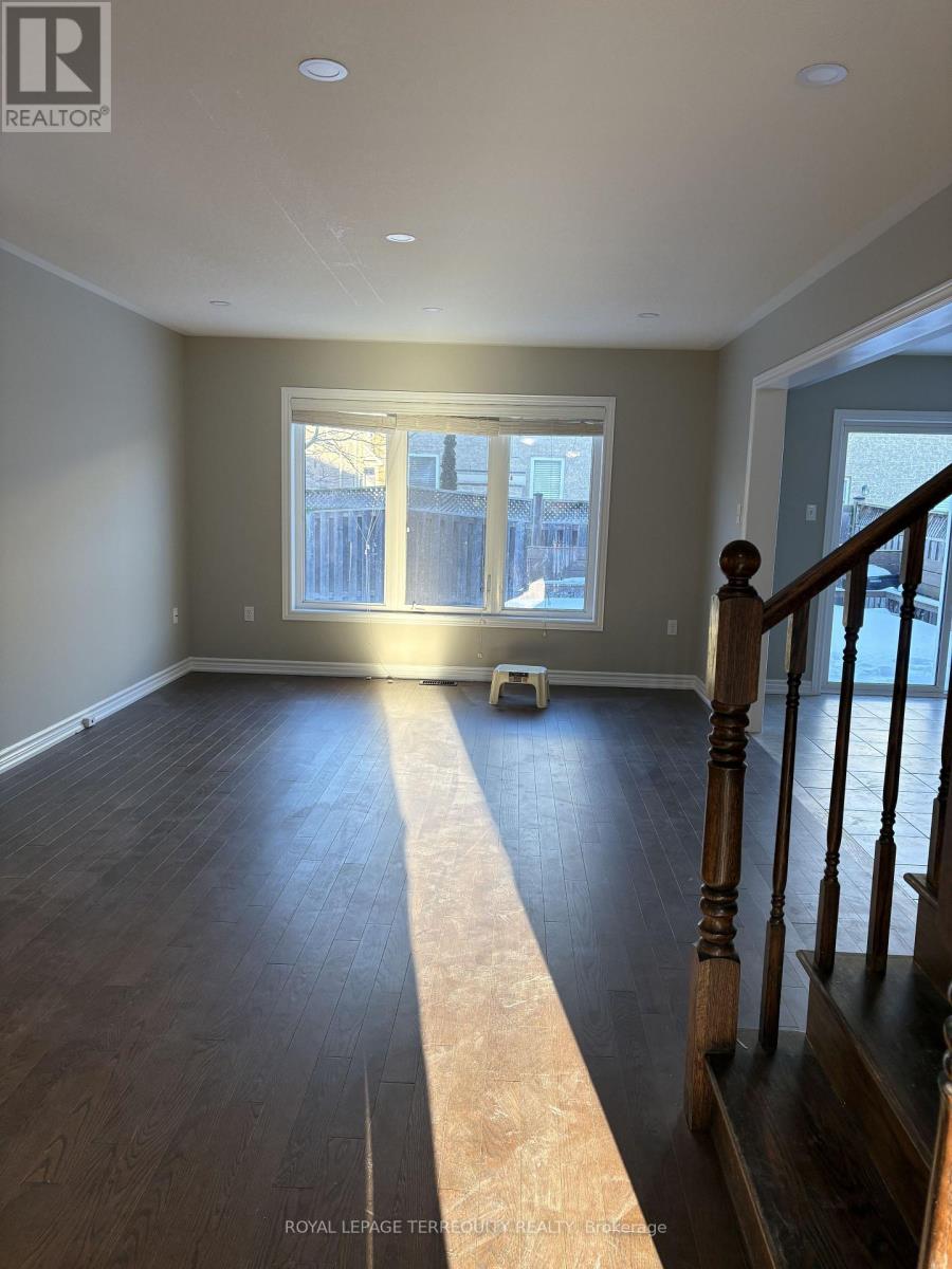 Well-maintained Ballantry home offering over 1,700 sq. ft. of living space, featuring 3 bedrooms and 2.5 bathrooms. The main floor includes a spacious family room combined with the dining area, along with a formal living room showcasing beautiful west-facing sunset views. The large kitchen is equipped with stainless steel appliances, a breakfast bar, and a separate breakfast area with a walkout to a generous deck - perfect for entertaining. The kitchen also provides direct access to the garage for added convenience. The basement is unfinished, offering ample storage space or room for additional use as needed. Recent upgrades include new hardwood flooring on the main floor and upgraded luxury vinyl plank flooring throughout the upper-level bedrooms and hallway. Freshly painted and move-in ready. This freehold end-unit townhome is located in the highly desirable Wismer community, known for its excellent schools, including Bur Oak Secondary School, Wismer Public School, and Fred Varley Public School. Ideally situated within walking distance to the GO Station , parks, and everyday amenities such as Home Depot, Shoppers Drug Mart, banks, and much more. (id:64974)