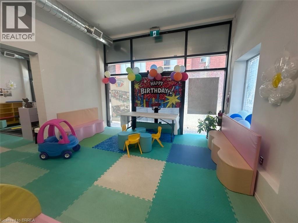 Newly renovated building, top to bottom, nestled in Brantford’s revitalized downtown core. Location offers high foot traffic, ample street parking, and easy access to bus lines. Close to the newly built YMCA, Laurier University, Brantford Public Library, Harmony Square, and other downtown amenities. The area continues to see major revitalization with new housing, student growth, and strong foot traffic. This lease takeover offers two prime main-level commercial units with finished lower levels. Ideal for a retail, service, or recreational business. Previously operating as Kiddie Landz, a children’s indoor play facility, the space offers excellent potential for someone looking to re-open the business or repurpose the area for another use. Note, business and equipment not included with the lease. Separate business sale listing available; Unit #1: 1,208 sq. ft. main level + 1,308 sq. ft. finished basement. Unit #2: 1,116 sq. ft. main level + 1,116 sq. ft. finished basement. Total leasable area: approximately 4,748 sq. ft. The business (contents, equipment) is available for purchase separately. Rent is $12.66 Net + $3.79 TMI per sq ft (+ HST), equivalent to $4,545.91 (base rent) + $1,361.46 (TMI) per month +utilities. (id:64974)