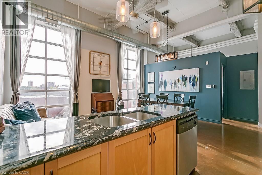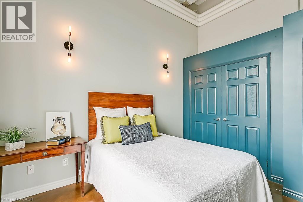 Welcome to the iconic Annex Lofts, one of Hamilton’s most sought after boutique condo buildings. This impressive 2 bedroom, 1 bathroom loft delivers true urban living with soaring 14 ft ceilings, polished concrete floors, exposed ductwork, and striking industrial character throughout. The open concept kitchen and living area is flooded with natural light through oversized windows, creating a bright and inviting space that is perfect for everyday living or entertaining. The primary bedroom offers ample closet space and city views, while the generous second bedroom with a large closet works beautifully as a guest room or home office. A 4 piece bathroom and convenient in suite laundry complete the interior, and the unit includes a private owned parking space directly in front of the building, a rare and valuable feature for downtown living. Perfectly positioned just steps from James Street North, King William, and Hamilton’s thriving food, arts, and entertainment scene, with easy access to transit, GO Station, shopping, hospitals, and downtown amenities. Whether you are a young professional, urban enthusiast, or savvy investor, this loft delivers on both lifestyle and location in one of the city’s most vibrant neighbourhoods. (id:64974)