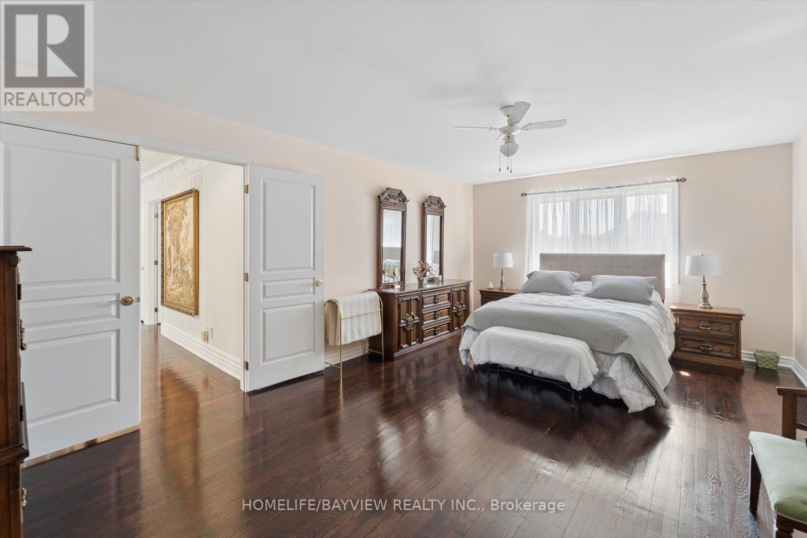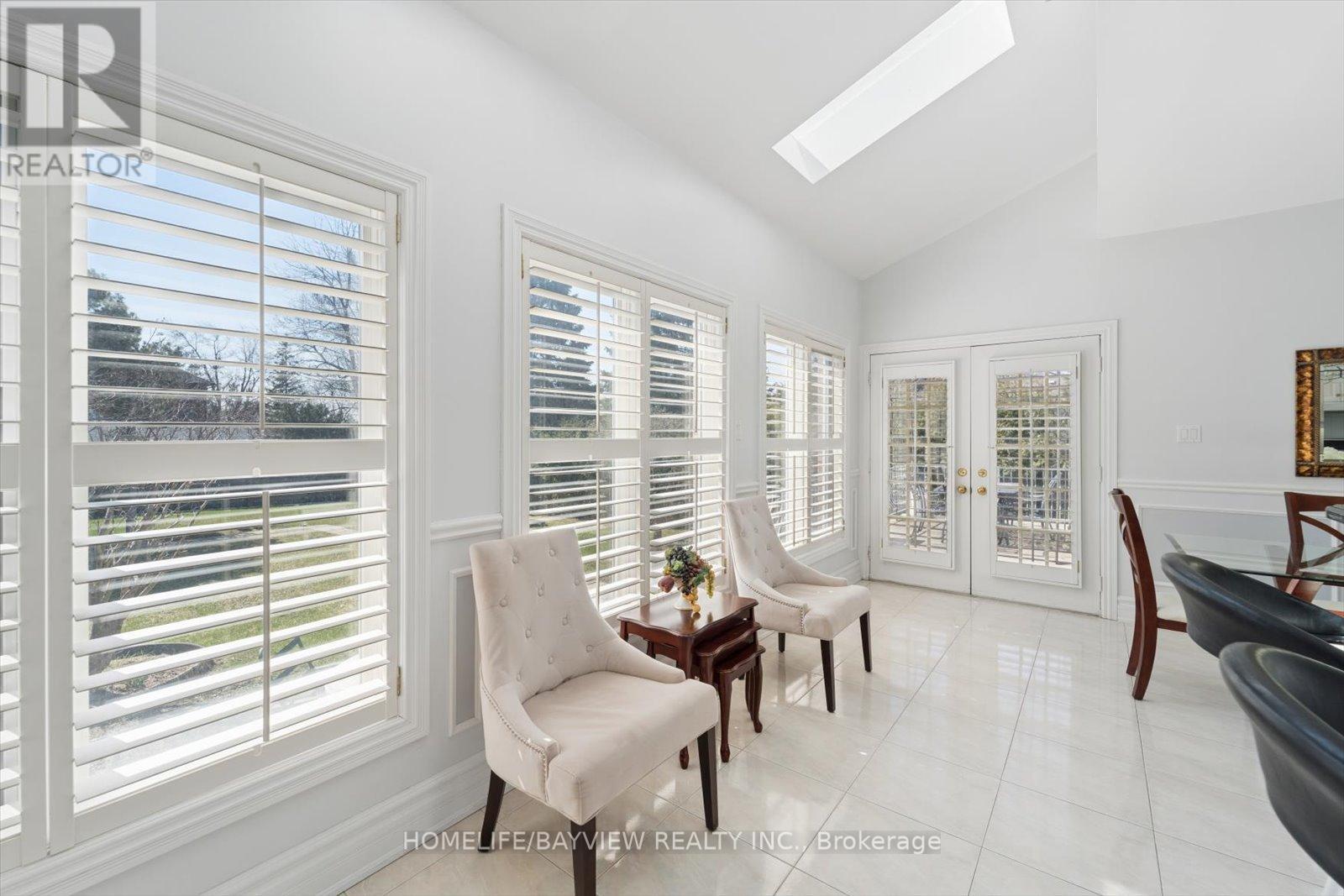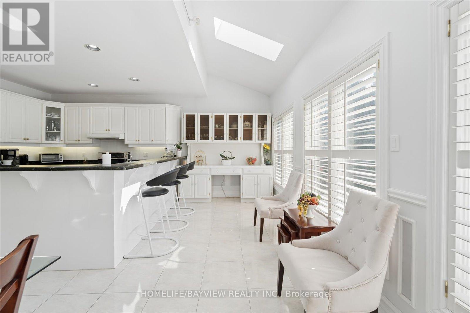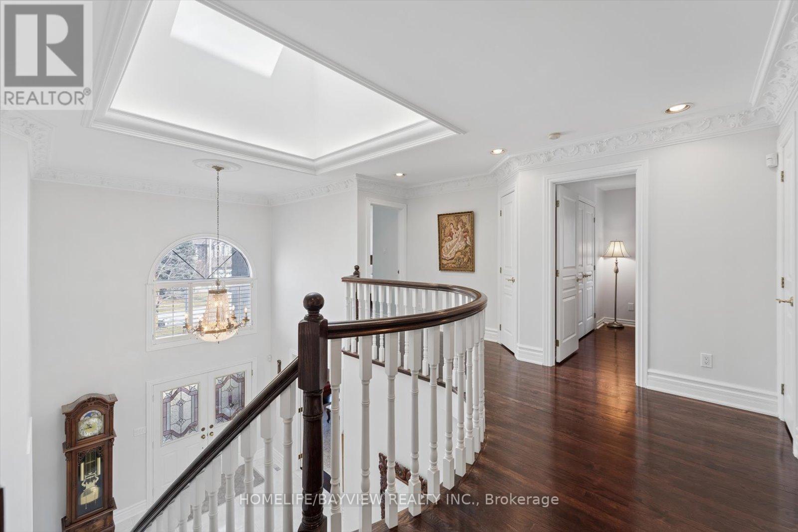 Rare opportunity to own a custom estate home on one of North Richvale's most private dead-end streets with no through-traffic. A builder's own home, this property offers superior structural integrity and excellent bones throughout, situated on an extraordinary 191-foot deep lot. The grand foyer features a large skylight that creates a bright, open feel the moment you walk in, with elegant crown moulding and high-quality hardwood and ceramic tile extending across the main level. The functional layout includes a dedicated den, a convenient main-floor laundry room, and a rare, dedicated walk-in closet near the front entrance for extra storage. The living and dining rooms are separated by elegant French doors, with additional French doors providing a subtle partition for the kitchen without losing the home's airy flow. The kitchen is a standout feature, bathed in natural light from dual skylights and finished with classic wainscotting, granite countertops, and California shutters. It offers a seamless walk-out to a large patio overlooking the massive backyard-a perfect canvas for a pool or professional landscaping. Upstairs, the home is designed for family privacy with four spacious bedrooms, including a primary suite with a 6-piece ensuite, a second bedroom with its own private 4-piece ensuite, and two additional bedrooms sharing a semi-ensuite. Located within close proximity to top-rated schools and just a 13-minute walk to Hillcrest Mall, this property combines a premium location with the lasting quality of custom construction, offering incredible potential for those looking to customize a high-end estate. (id:64974)