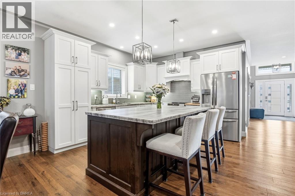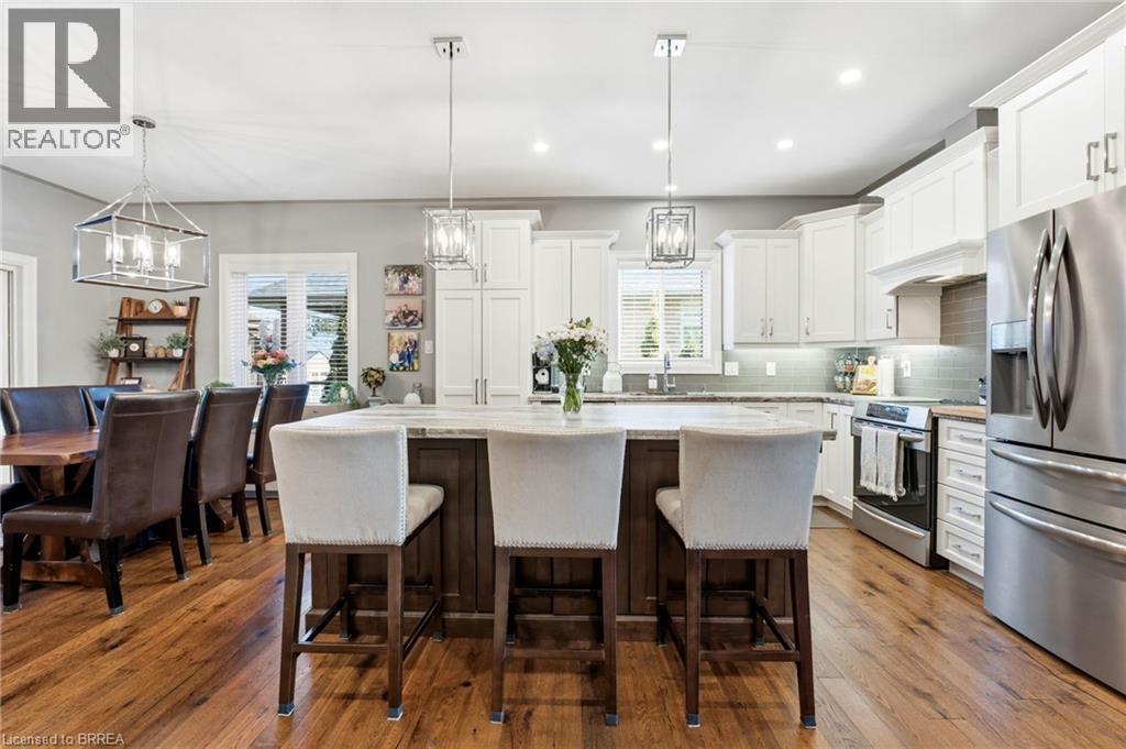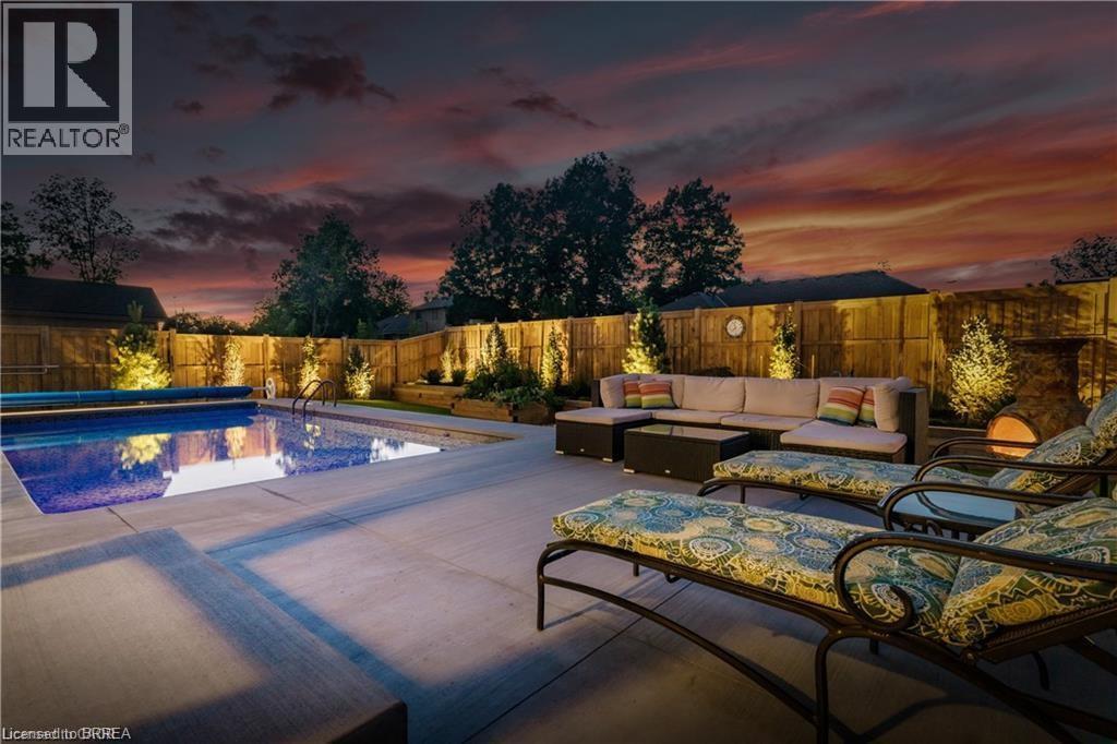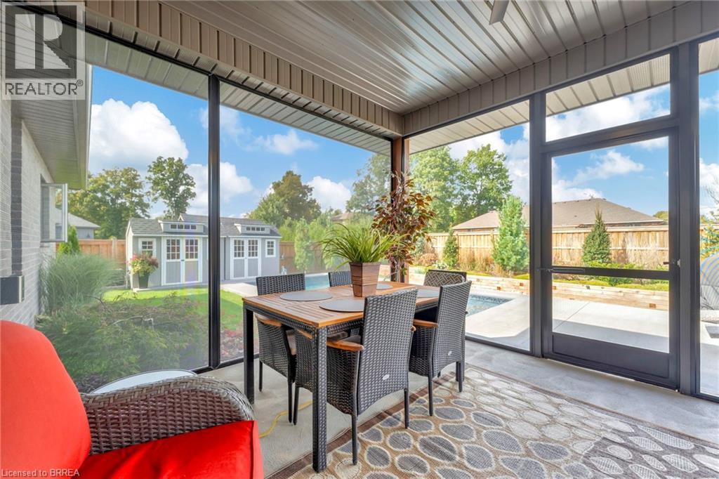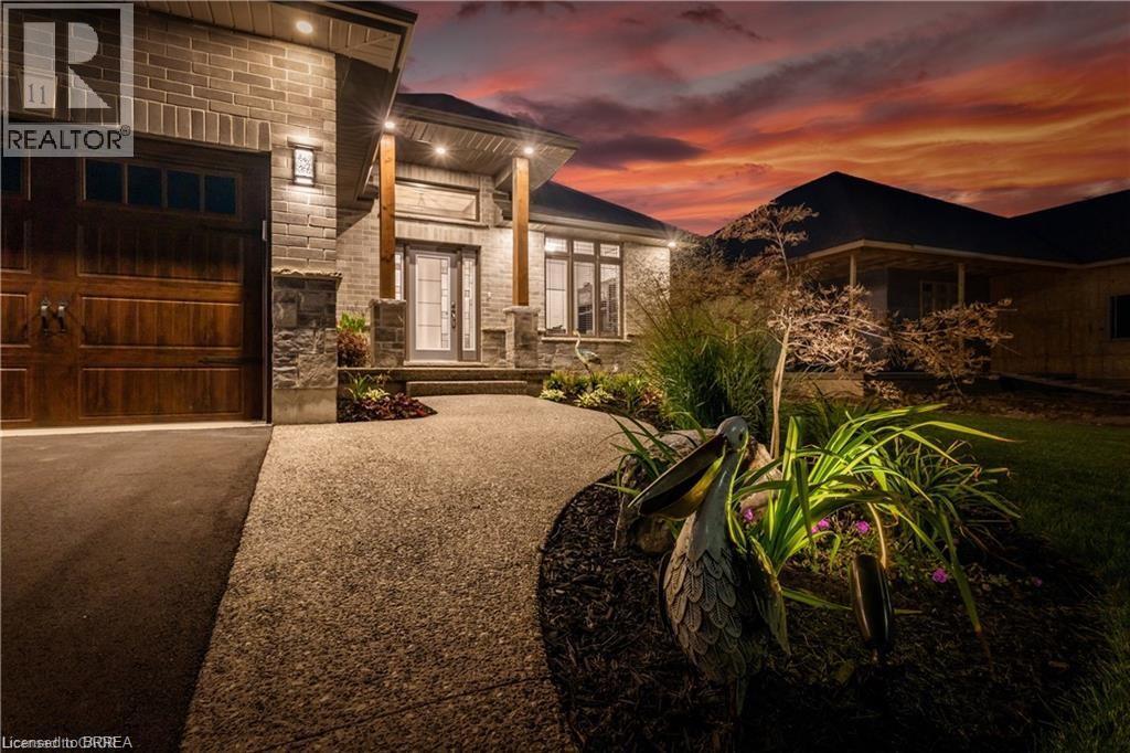 Welcome home to 11 Sycamore Dr., Port Dover. Executive bungalow with all the bells and whistles, including a heated salt water pool and screened in sunroom! Built in 2020 this 3+1 bed 3 bath home offers a seamless blend of luxury, comfort, and effortless living just minutes from the beach. Thoughtfully designed with over $222,000 in builder upgrades and more than $200,000 in additional homeowner enhancements, this home showcases impeccable attention to detail throughout. Recent upgrades include new concrete pad and sidewalk (from garage man door to driveway), additional storage shed, new winter pool cover (2025), and now municipal water is connected (2025). The bright, open-concept main floor features premium hardwood flooring, 9-foot California knockdown ceilings with elegant painted accents, and a modern, on-trend palette complemented by craftsman-style doors, trim, and baseboards. At the heart of the home is a stunning great room, complete with a gourmet kitchen boasting a large centre island, deBoer cabinetry, and Frigidaire Gallery appliances, flowing into a spacious living area anchored by a cozy gas fireplace. The primary suite offers a peaceful retreat with a walk-in closet and a luxurious ensuite featuring a custom double vanity and glass shower, while a second bedroom, versatile office or third bedroom, full bath, and convenient laundry with garage access complete the main level. The finished lower level expands your living space with a generous family room and home theatre area, a fourth bedroom, and an additional full bath, plus ample unfinished space ready for your personal touches—ideal for a gym, workshop, or wine cellar. Outdoors, enjoy a beautifully landscaped backyard oasis highlighted by a heated saltwater pool and a covered, screened-in porch perfect for year-round entertaining and relaxation—delivering the ultimate cottage-style lifestyle without ever leaving home. (id:64974)
