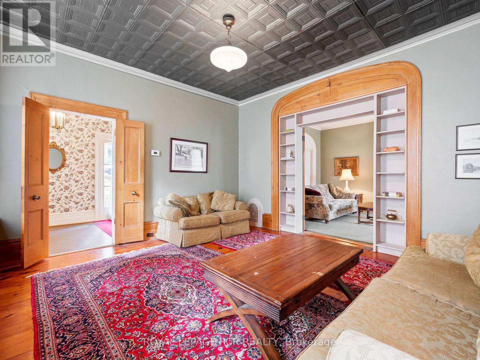 Admired for over 140 years, this sprawling & stately home is a must see. A unique property with endless possibility located in the heart of town. Timeless, quality construction & details thru out including original doors, trim, floors & staircases, spacious principal rooms & ceiling height, multiple walkouts from the main level to mature and private lot- 164 ft. x 187 ft., approximately .70 acre with the house sited in centre of lot. Enjoy a grand foyer & front hall, dedicated library, formal living room with original fireplace and walkout to covered side porch. Enjoy entertaining in an expansive dining room with 2nd original fireplace or retreat to read a book in the cozy den. The kitchen offers lots of space for preparing meals & a large breakfast area with glass walkout door to side patio. The rear main floor laundry room offers a private 2 piece powder room and walkout to yard. The elegant front staircase leads to an open landing area and primary bedroom with walk-in closet & 3 piece ensuite bath, as well as main bath with whirlpool tub & additional bedrooms. The 2nd or rear staircase leads to a charming suite with bright & spacious living/dining room, kitchen, 4th bedroom and full bath - an ideal space for guests or extended family & can be closed off from the rest of the 2nd floor space. Outside you find lots of parking area, an enormous yard with mature trees and rear storage/driveshed. Rare opportunity for a property of this size in a downtown Orangeville location. (id:64974)