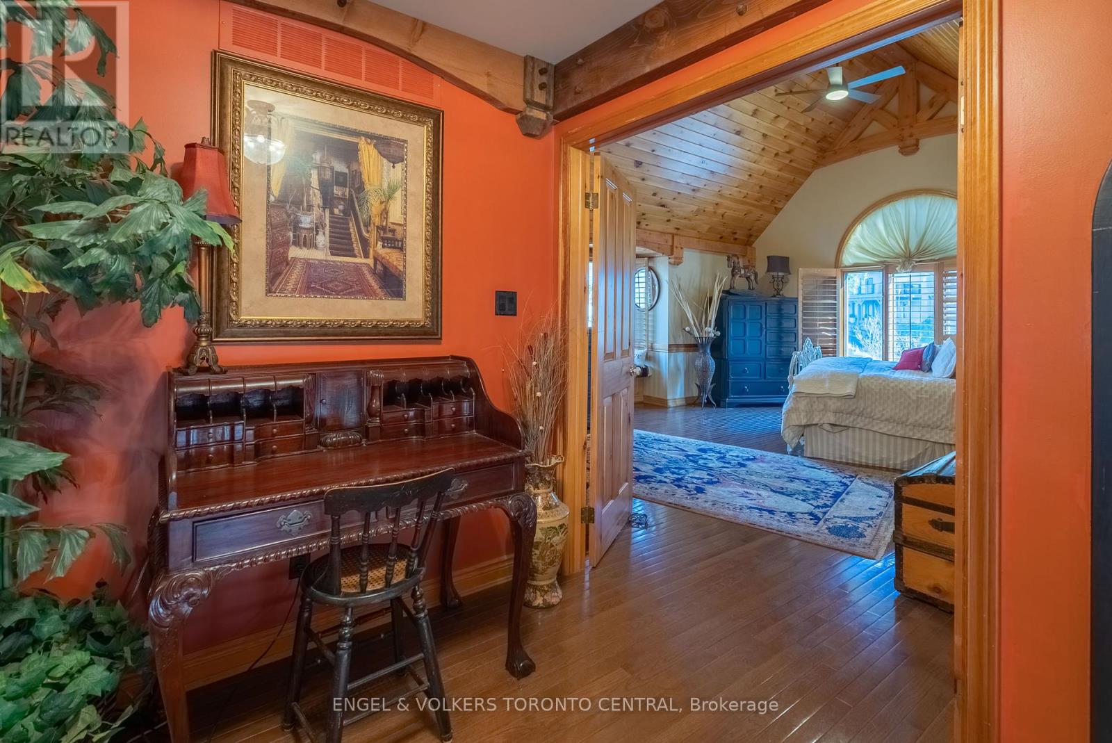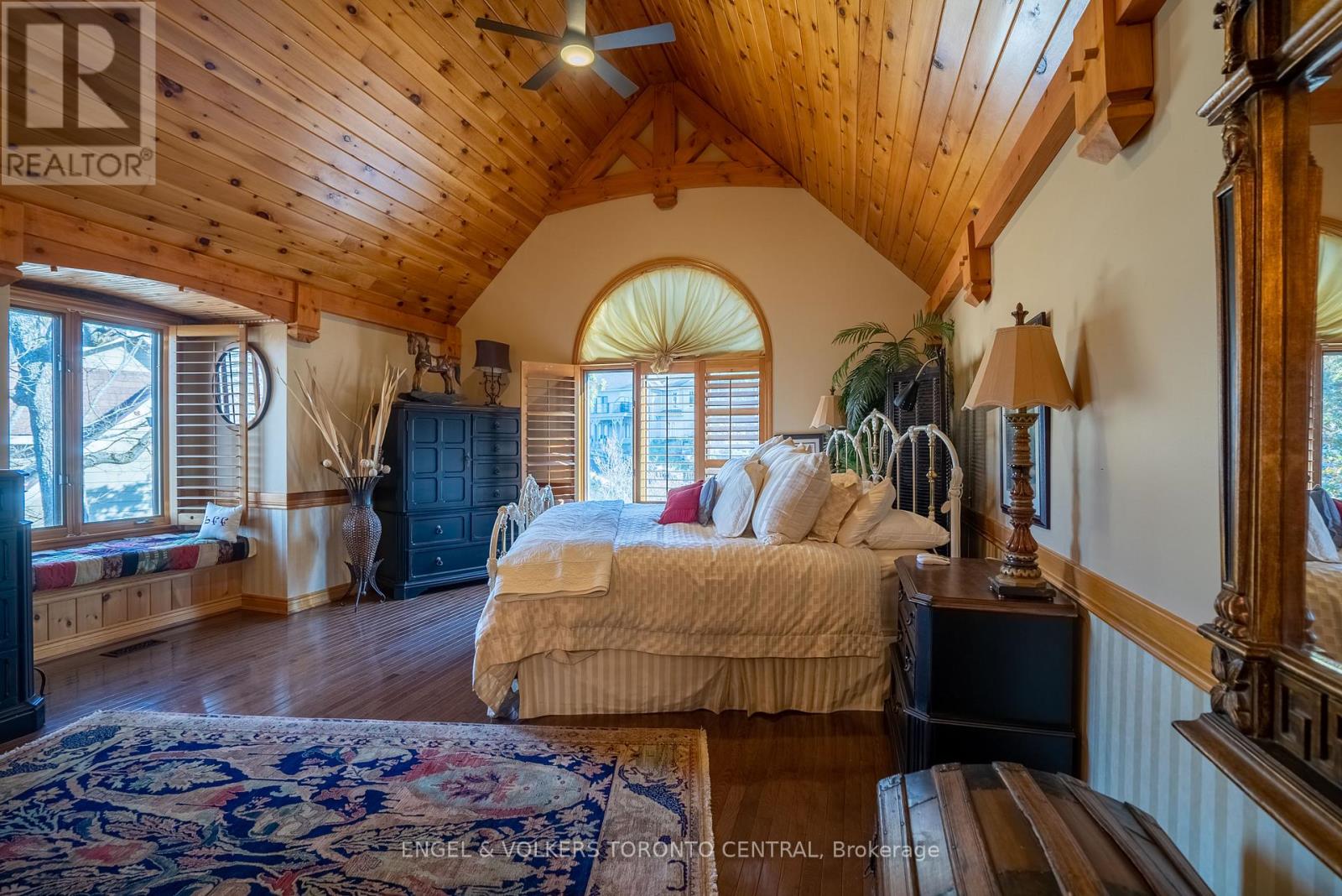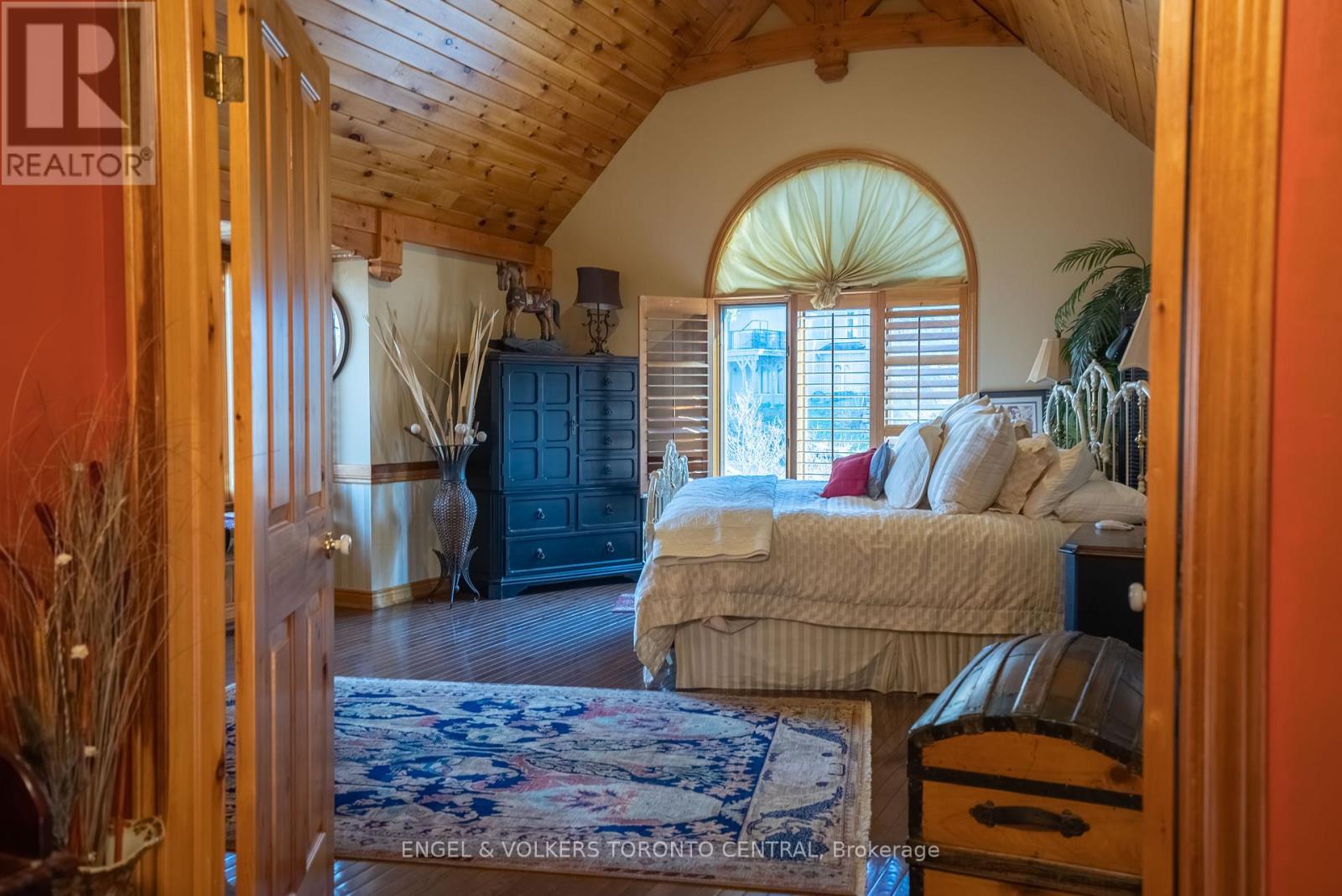 Stunning Executive Chalet Style, located in the Prestigious Highlands of Horseshoe ~ Post & Beam Open Concept Bungaloft With 4 Bedrooms And A Walk-Out Lower Level. Master Bedroom With Privacy In The Loft With Beautiful Ensuite Bathroom Overlooking The Hills And Valley, 2 Walk In Closets, And Additional Storage Rooms. Main Level With Office/Bedroom, Full Bath, Mud Room Laundry + Garage Access. Lower Level Stunning Open Concept Family Room With Fireplace, 2 Walk-Out Patio Doors, Kitchenette/Bar, Wine Cellar, Sauna/Pantry Room, 2 Bedrooms, Huge Walk In Hall Closet + Full Bathroom. Over 4000 Sq Ft Of Living Space! Double Car Garage + Outdoor Shed. Spectacular Views And Breathtaking Sunsets! Fully Furnished + Utilities Included! (id:64974)