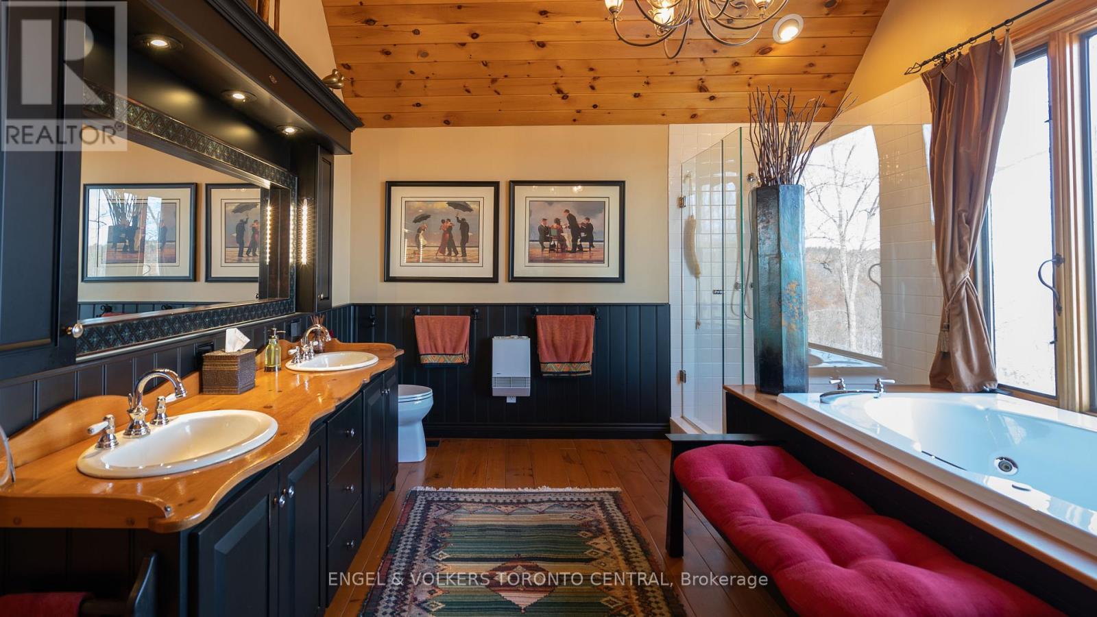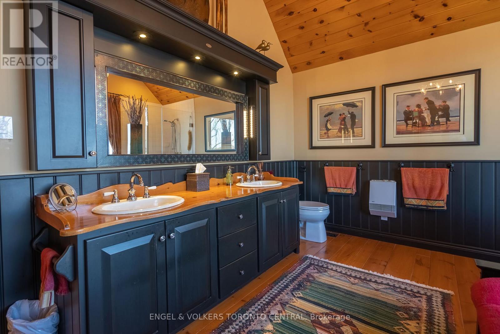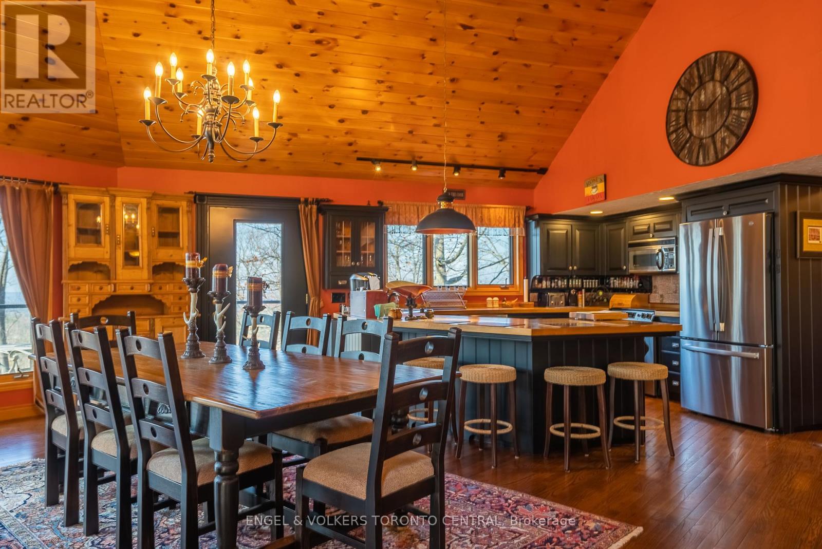 Stunning Executive Chalet Style, located in the Prestigious Highlands of Horseshoe ~ Post & Beam Open Concept Bungaloft With 4 Bedrooms And A Walk-Out Lower Level. Master Bedroom With Privacy In The Loft With Beautiful Ensuite Bathroom Overlooking The Hills And Valley, 2 Walk In Closets, And Additional Storage Rooms. Main Level With Office/Bedroom, Full Bath, Mud Room Laundry + Garage Access. Lower Level Stunning Open Concept Family Room With Fireplace, 2 Walk-Out Patio Doors, Kitchenette/Bar, Wine Cellar, Sauna/Pantry Room, 2 Bedrooms, Huge Walk In Hall Closet + Full Bathroom. Over 4000 Sq Ft Of Living Space! Double Car Garage + Outdoor Shed. Spectacular Views And Breathtaking Sunsets! Fully Furnished + Utilities Included! (id:64974)