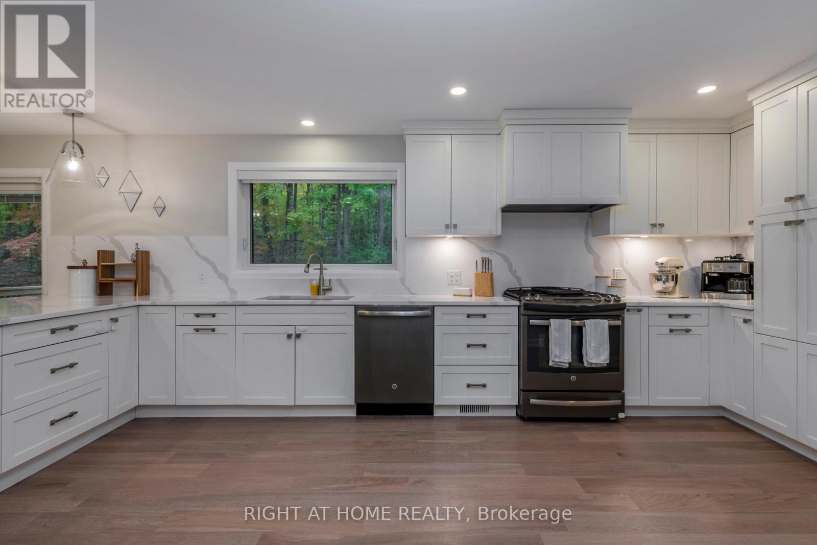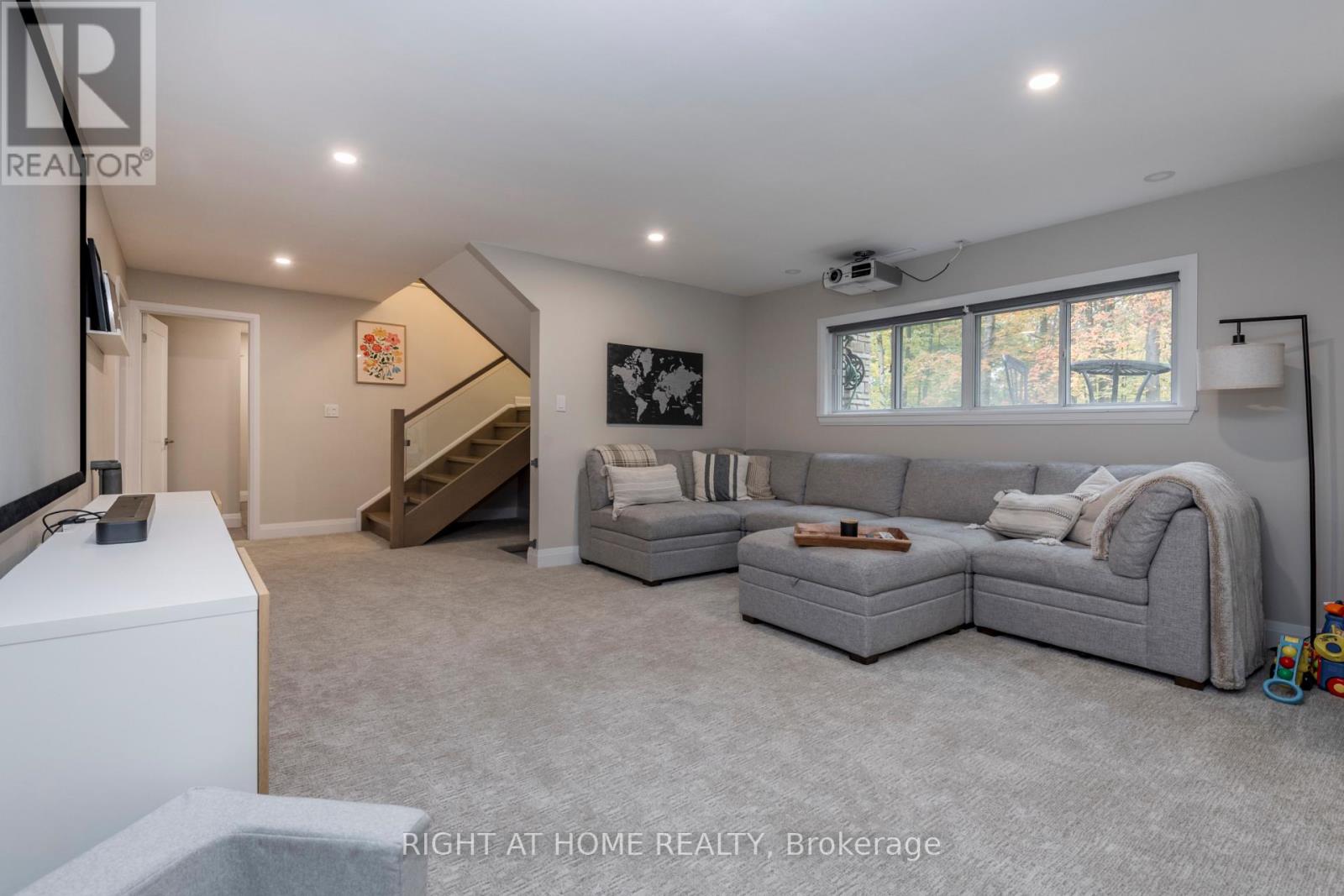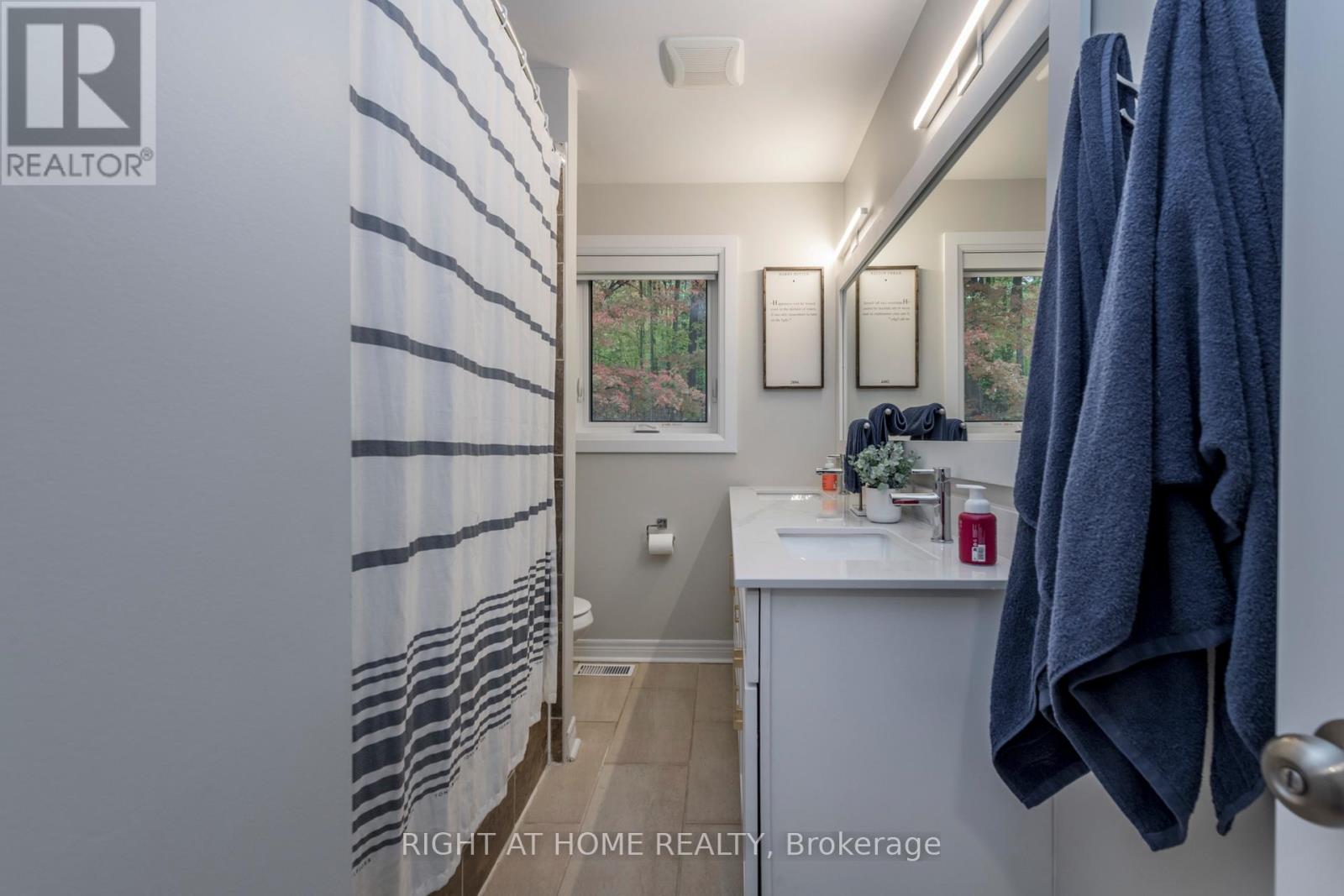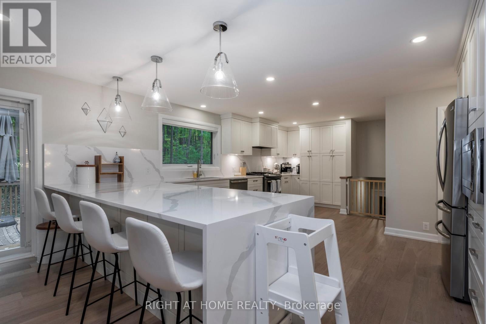 Welcome to this exceptional, one-of-a-kind home in the highly sought-after community of Simcoe Estates. Situated on a private, mature lot spanning over two acres, this residence offers the perfect blend of luxury and tranquility. Step inside to a naturally bright, open-conceptliving space. Gleaming hardwood floors, recessed pot lights, and a stunning glass railing onthe oak staircase create a sophisticated, modern atmosphere. It boasts custom storage units, a beautiful waterfall-edge quartz counter and backsplash, and a cozy gas fireplace that seamlessly connects to the living room. From the living area, walk out to a magnificent three-tiered deck, ideal for enjoying the surrounding natural beauty. After a long day, retreat to the spa-like primary bathroom, complete with heated floors, a large soaker tub, and a refreshing rain shower. (id:64974)