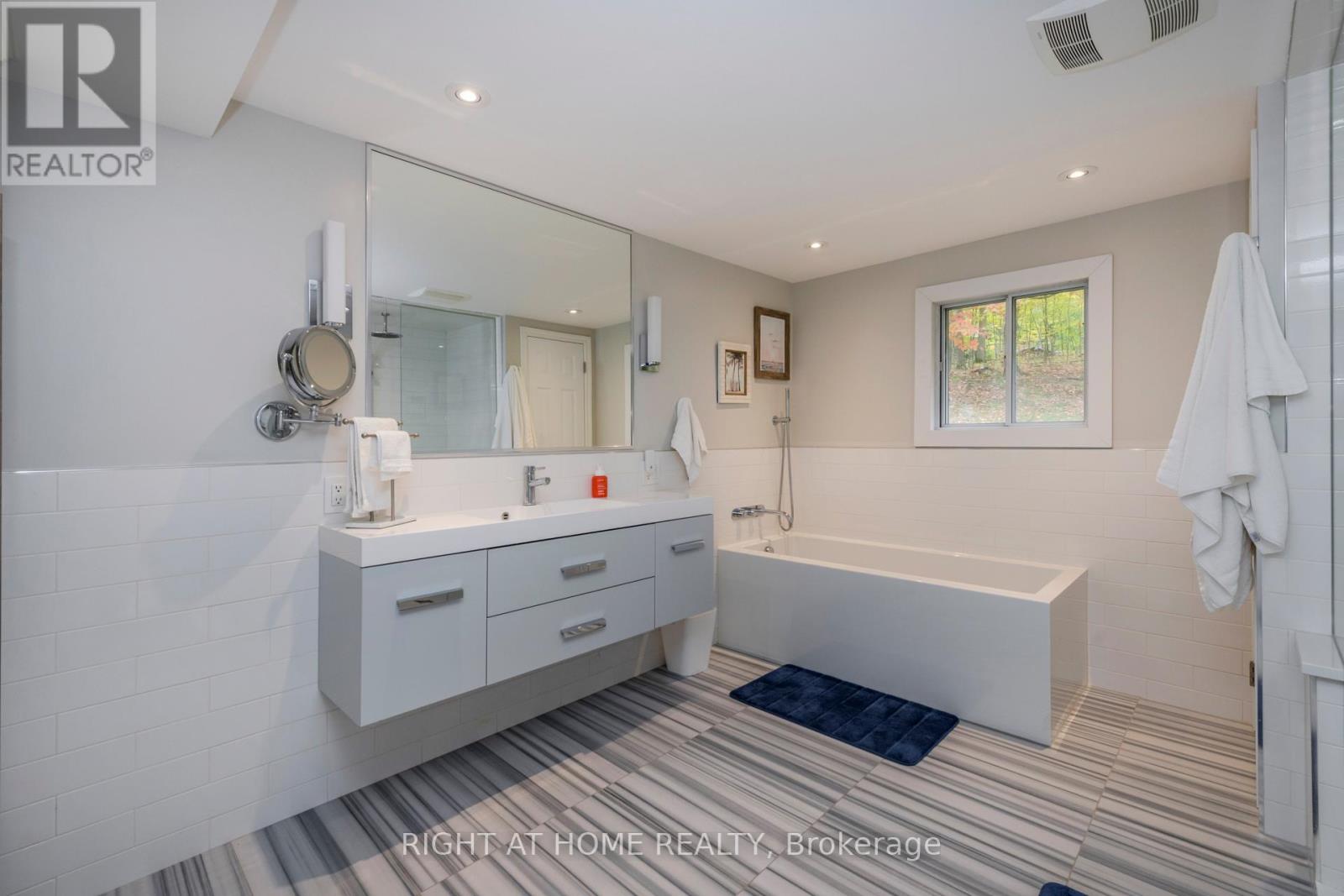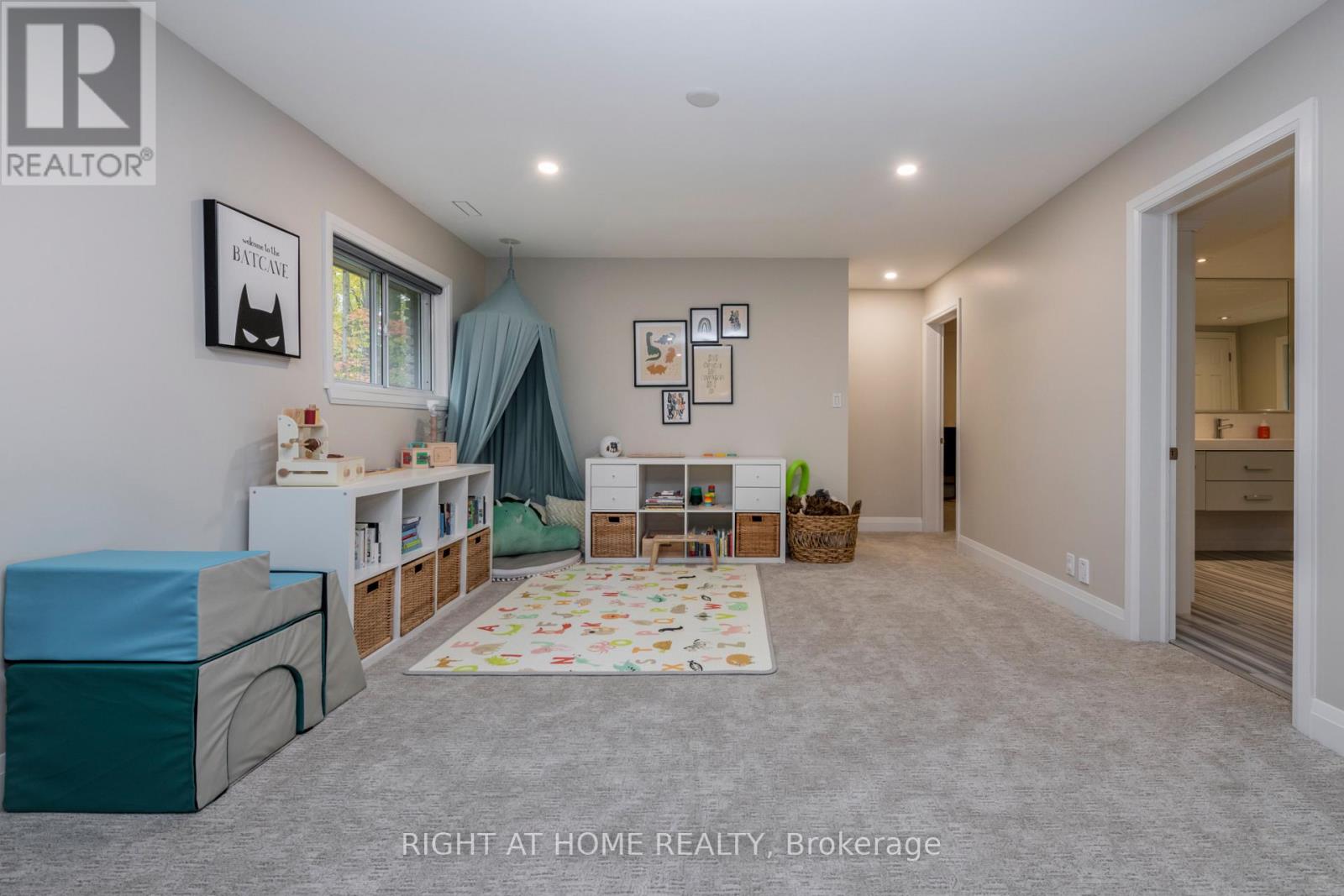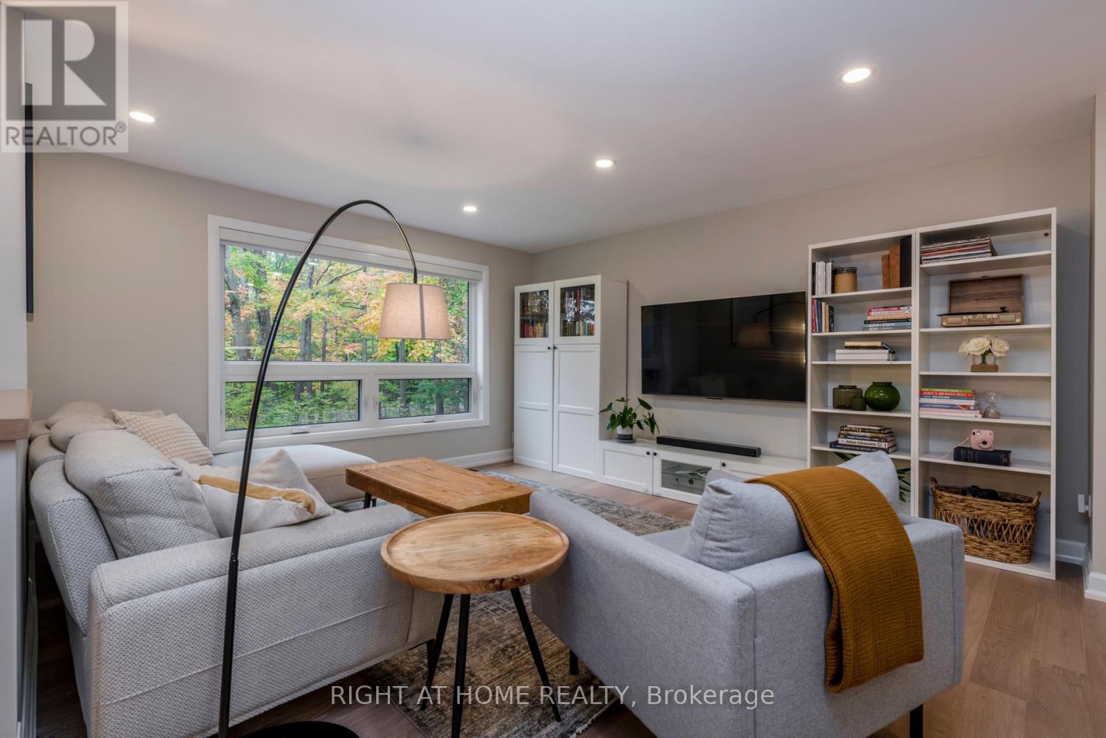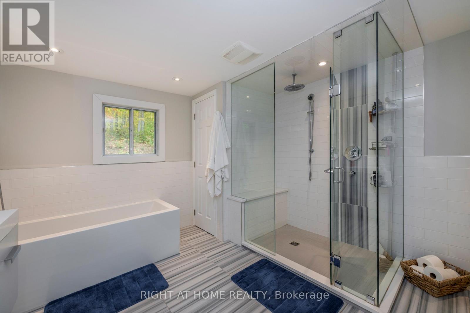Welcome to this exceptional, one-of-a-kind home in the highly sought-after community of Simcoe Estates. Situated on a private, mature lot spanning over two acres, this residence offers the perfect blend of luxury and tranquility. Step inside to a naturally bright, open-conceptliving space. Gleaming hardwood floors, recessed pot lights, and a stunning glass railing onthe oak staircase create a sophisticated, modern atmosphere. It boasts custom storage units, a beautiful waterfall-edge quartz counter and backsplash, and a cozy gas fireplace that seamlessly connects to the living room. From the living area, walk out to a magnificent three-tiered deck, ideal for enjoying the surrounding natural beauty. After a long day, retreat to the spa-like primary bathroom, complete with heated floors, a large soaker tub, and a refreshing rain shower. (id:64974)