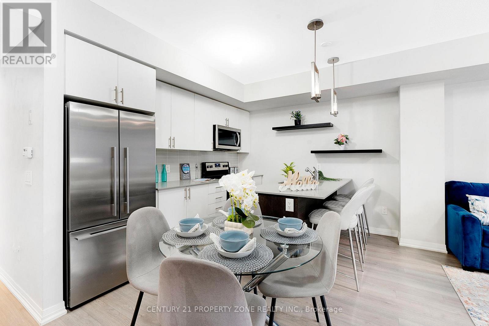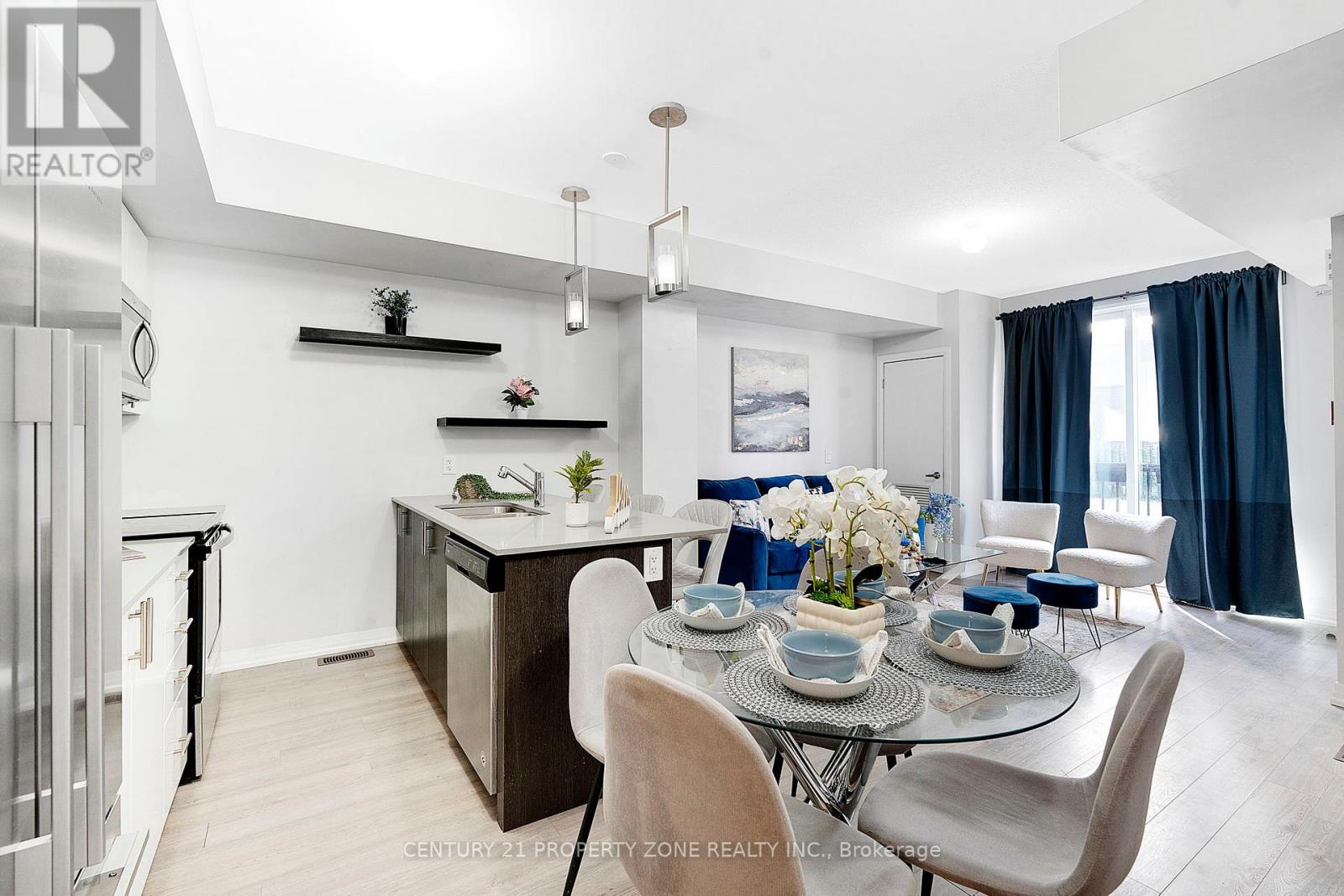 Stylish 2-Bedroom, 3-Washroom Main-Level Stacked Townhome in the Heart of Milton. Welcome to this beautifully upgraded, move-in-ready main-level stacked townhome located in one of Milton's most sought-after and vibrant communities. Thoughtfully designed for modern living, this spacious 2-bedroom, 3-washroom home offers an exceptional blend of comfort, style, and everyday convenience. Step inside to find 9-foot smooth ceilings, upgraded laminate flooring, elegant trims, and tasteful mouldings that create a bright and sophisticated ambiance throughout. The contemporary kitchen is both functional and eye-catching, featuring quartz countertops, a designer backsplash, stainless steel appliances, and an oversized breakfast bar-ideal for casual dining and entertaining. The spa-inspired bathroom boasts a luxurious glass-enclosed super shower, creating a relaxing retreat. Additional highlights include modern lighting, ample storage, and all electrical light fixtures, window blinds, curtains, and rods. Enjoy an unbeatable, walkable lifestyle-just seconds to minutes from grocery stores, restaurants, cafés, gyms, the central library, community swimming pool, parks, walking trails, and arts and entertainment. Located across the street from an elementary school and daycare, and just minutes to downtown Milton, Milton GO Station, and Highway 401, this home offers outstanding connectivity and convenience. A rare and valuable bonus includes two secure underground parking spaces. Set in a quiet neighbourhood with friendly neighbours, this residence delivers comfort, functionality, and location in one complete package. (id:64974)