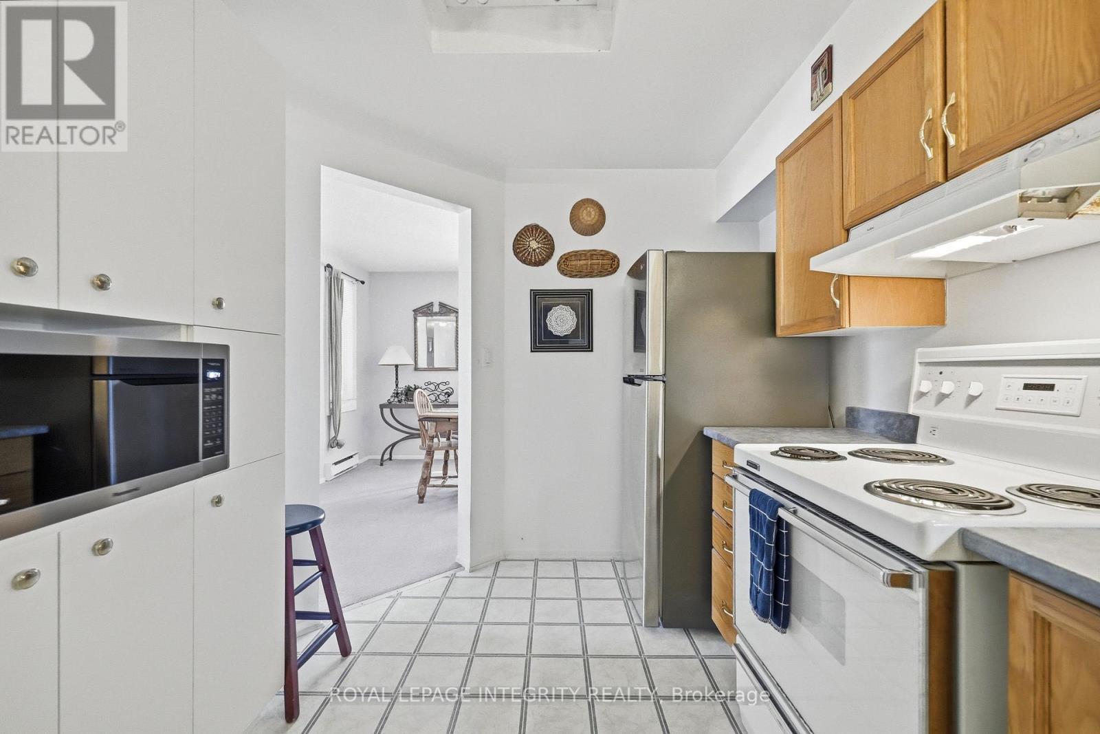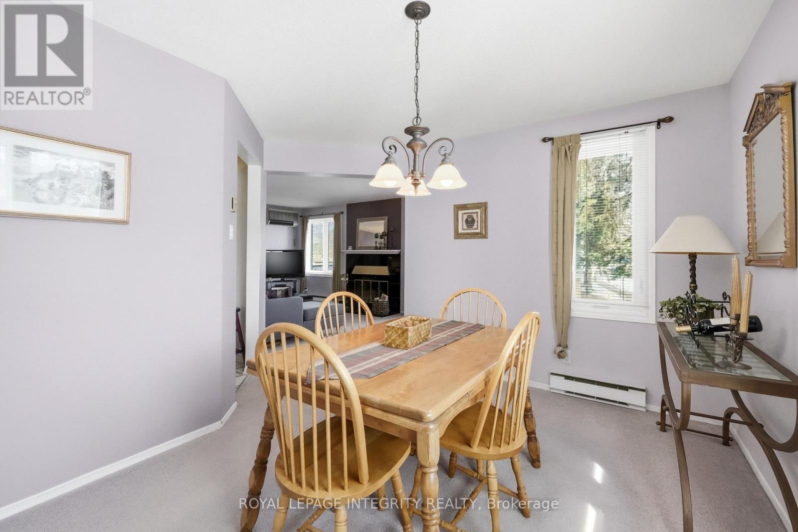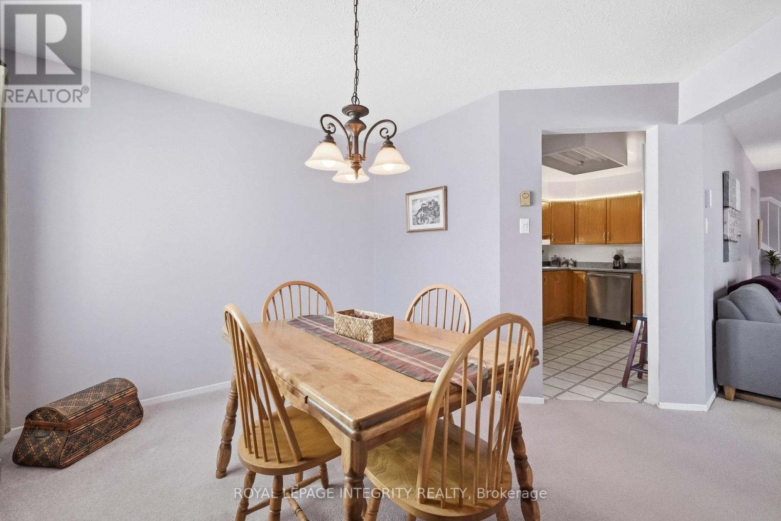 Welcome to 545 Canteval Terrace, Unit 110 in Club Citadelle! This beautifully maintained 3-bedroom, 2-bathroom corner unit condo offers 1,350 sq. ft. of living space plus a basement, shows true pride of ownership, and is ready to welcome its next owners. Complete with 2 parking spots, this home is located in a sought-after complex featuring a seasonal outdoor pool, fitness centre, party room, tennis court, and sauna, as well as beautifully landscaped grounds and walking paths. The inviting exterior terrace features interlock, a sitting area, a garden shed, and lovely greenery. Inside, you are greeted by a welcoming foyer with a large closet before entering the bright and spacious living room, anchored by a cozy wood-burning fireplace and patio doors leading to the terrace. The kitchen offers a functional layout with ample cabinetry and counter space, a newer stainless steel refrigerator and dishwasher, and a full wall of pantry storage, all seamlessly opening into the dedicated dining area with added windows thanks to this desirable end-unit location. Completing the main floor is a convenient partial bathroom and a generously sized storage closet. Upstairs, you'll find the spacious primary bedroom with a walk-in closet and cheater access to the 4-piece bathroom, complete with a dual vanity and shower/tub combination. Two additional generously sized bedrooms and a large linen closet complete the upper level. The basement adds valuable bonus space, perfect for a recreation room, hobby room, or home office, and also features a massive storage room with laundry area, a rare and practical convenience for condo living. Ideally located in the heart of Orléans, this sought-after condo is just minutes from schools, shops, parks, public transit, restaurants, and quick highway access. If you're looking for a condo with outdoor space, in a great complex, without compromising on size or storage, this is the one for you! (id:64974)